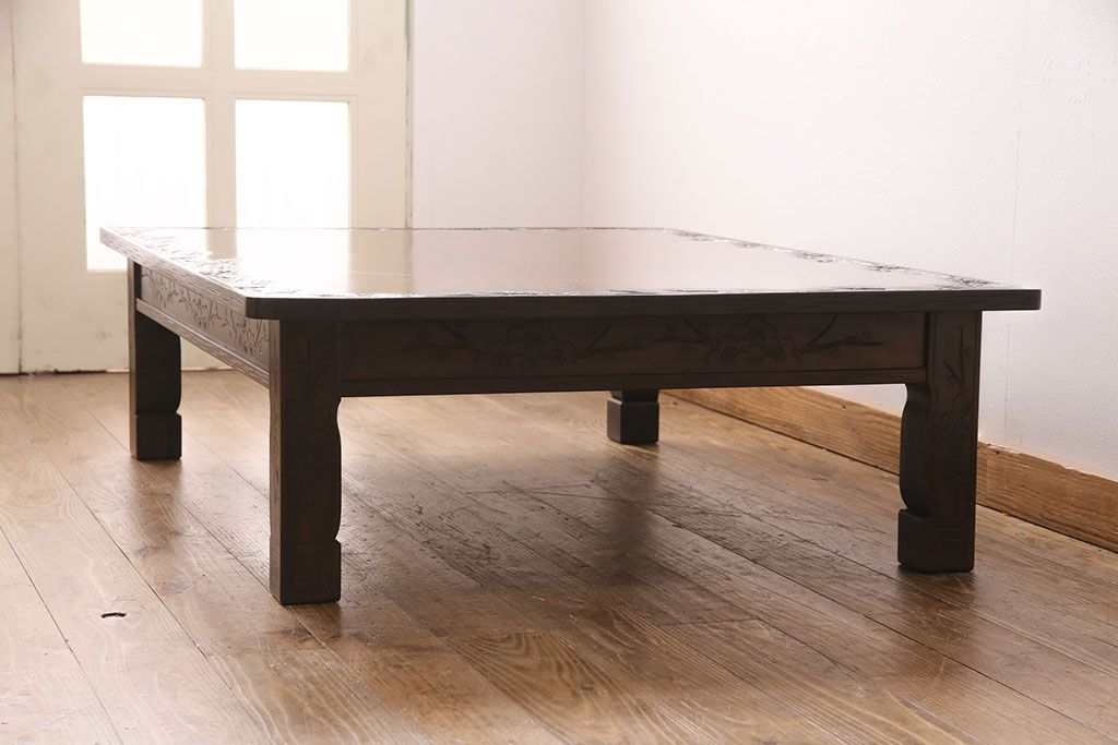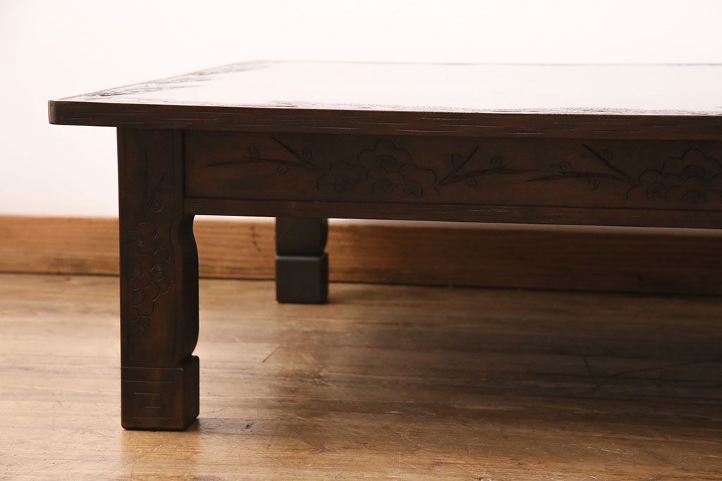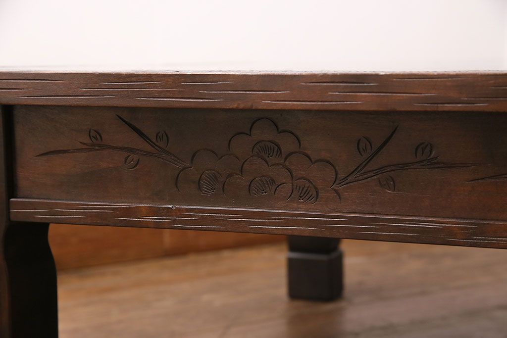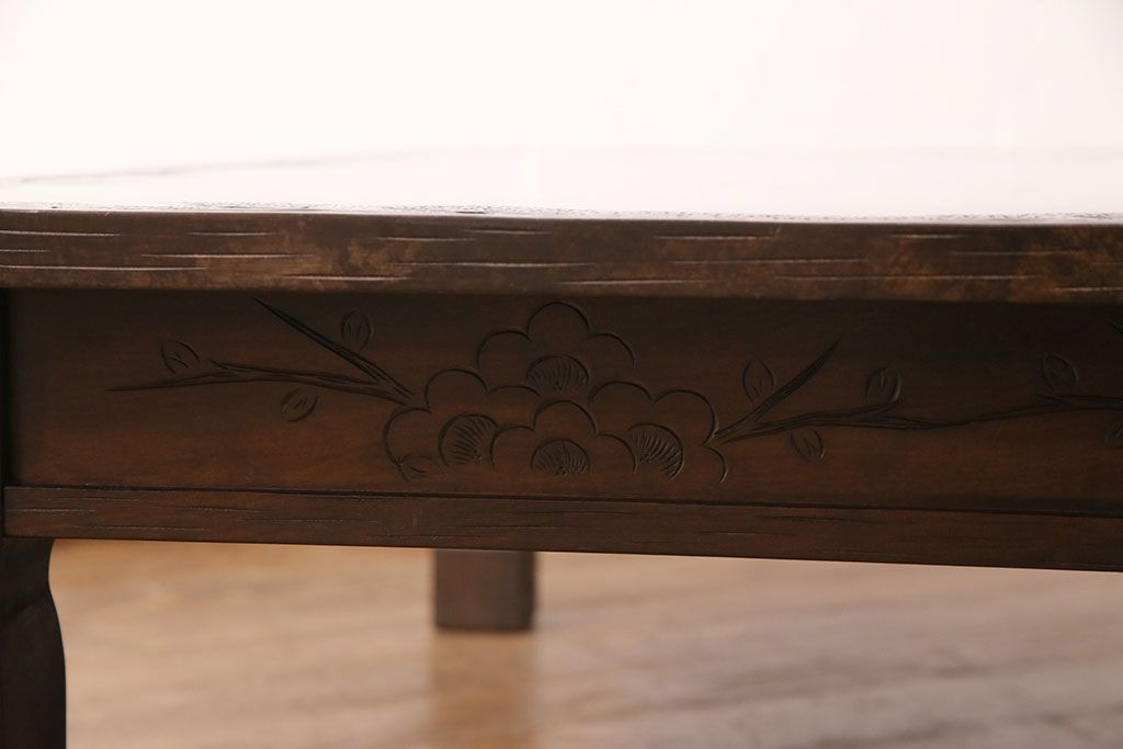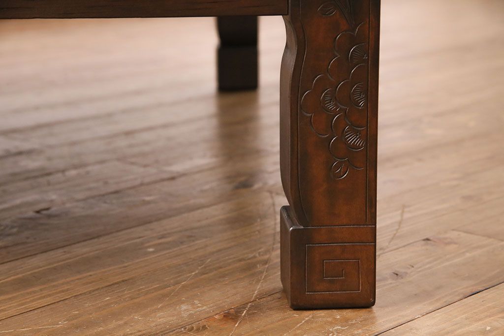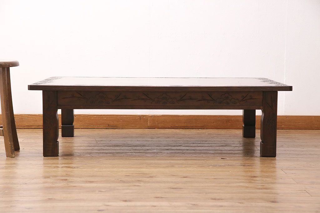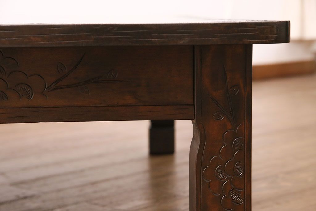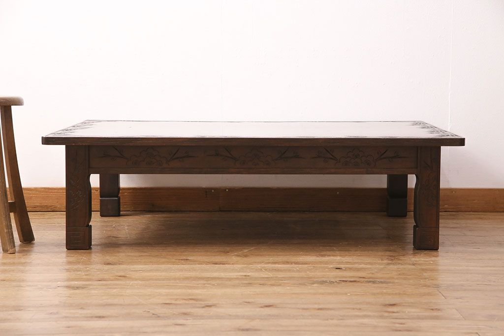 民芸家具 > ビンテージ家具 民芸家具 繊細な桜の彫刻が見事な座卓(ローテーブル)(R-049348)
