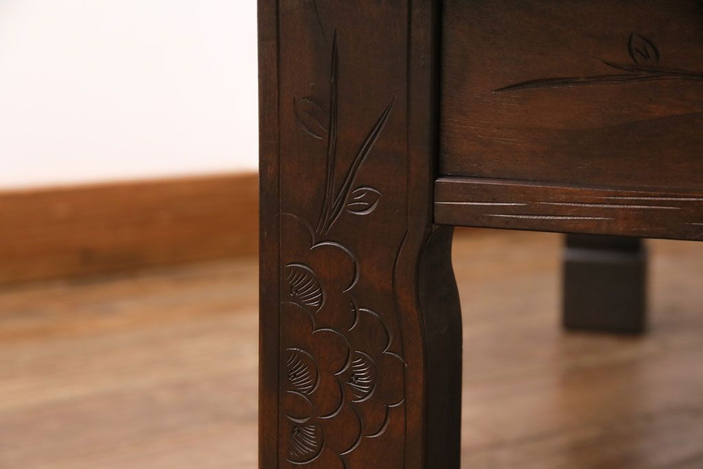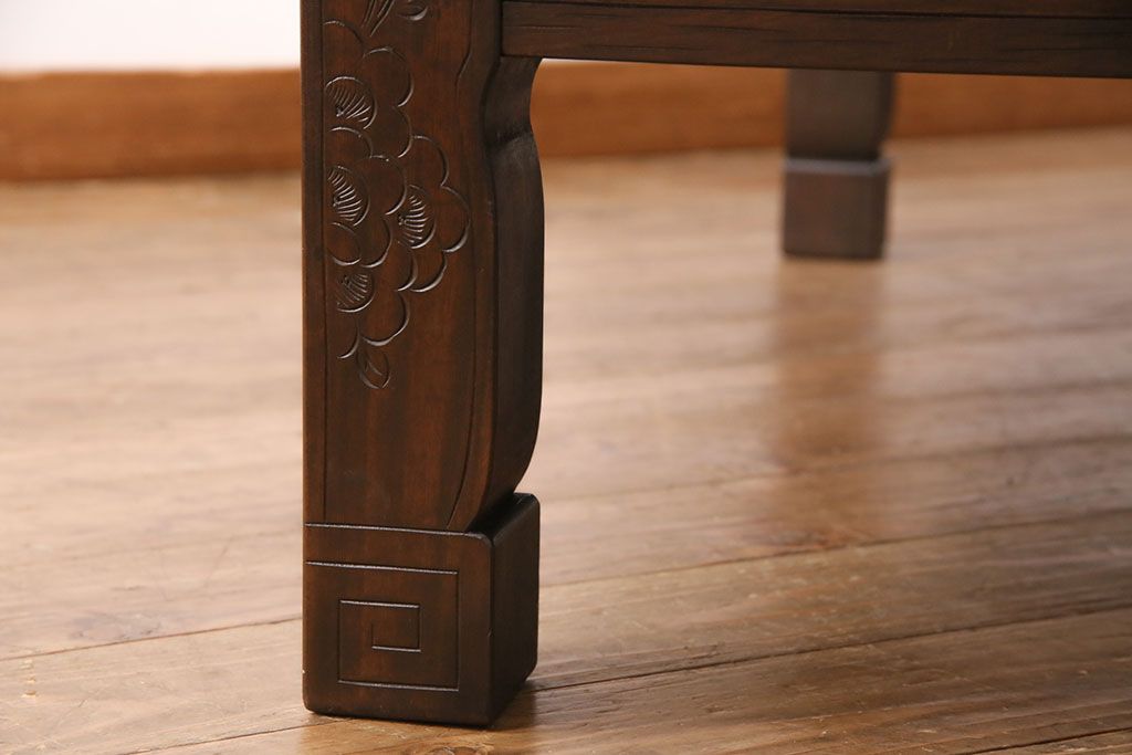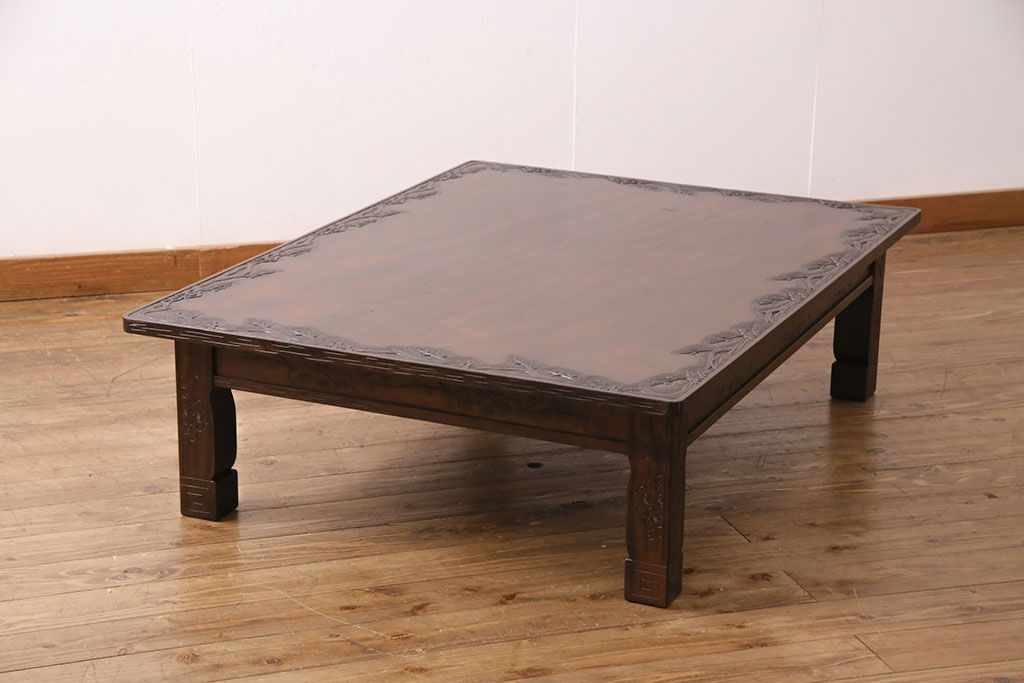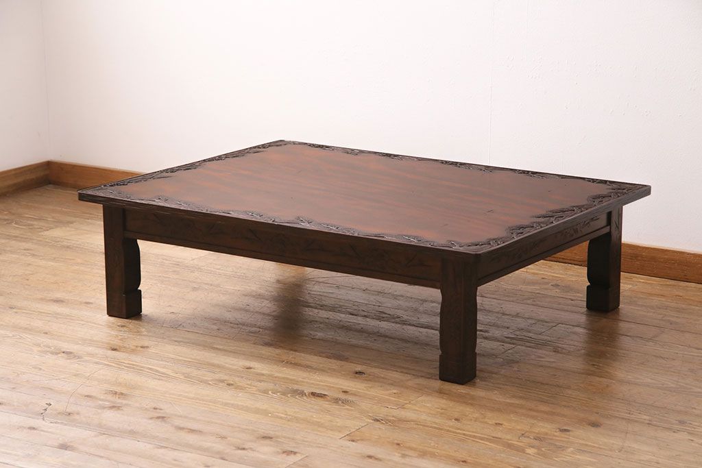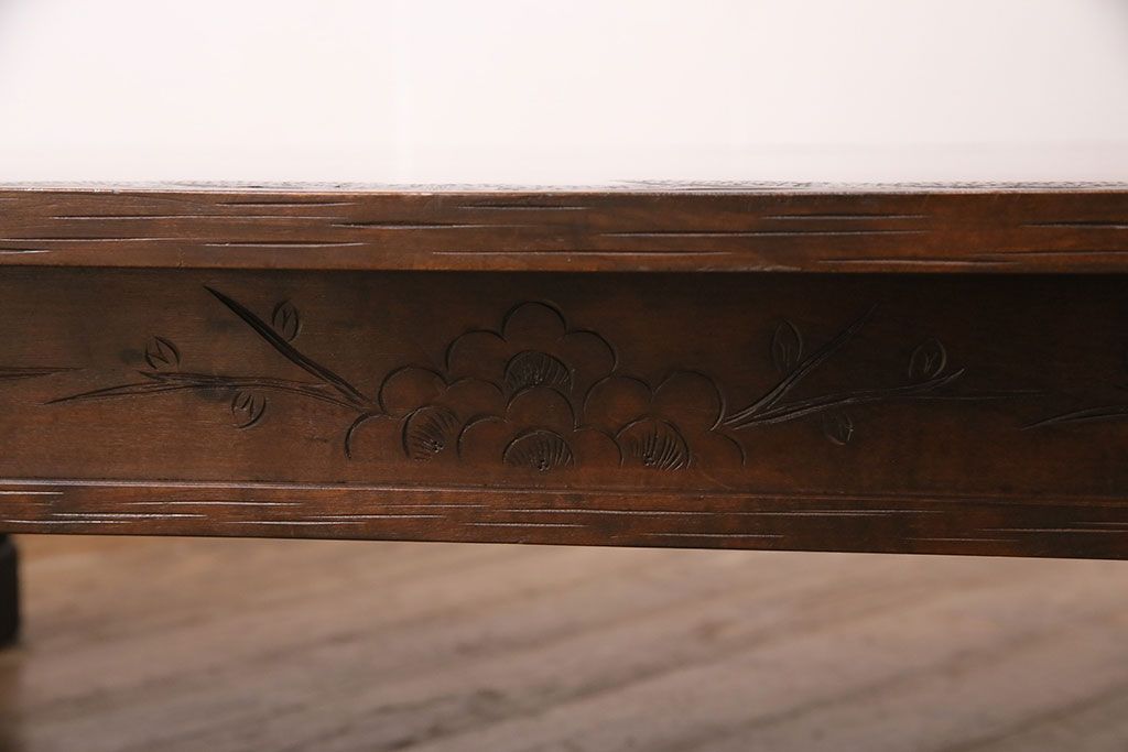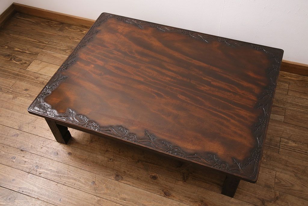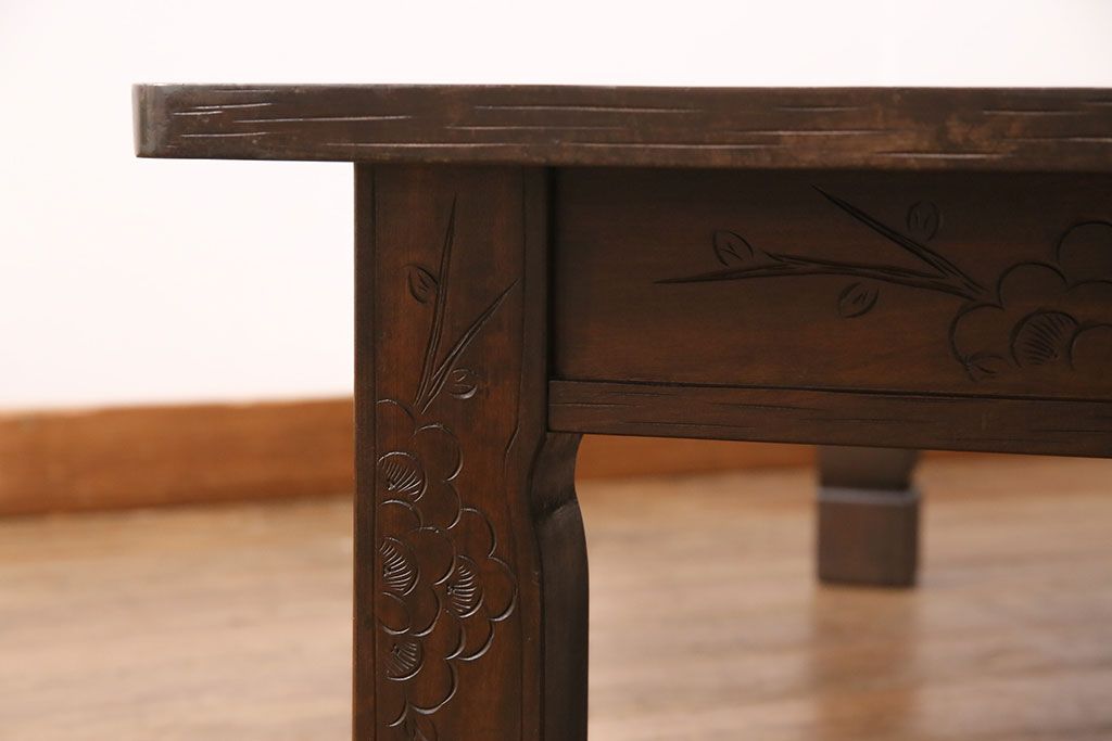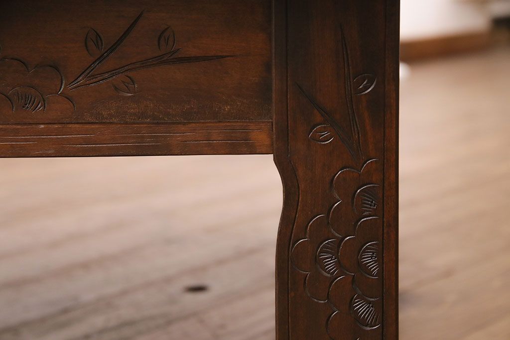 民芸家具 > ビンテージ家具 民芸家具 繊細な桜の彫刻が見事な座卓(ローテーブル)(R-049348)