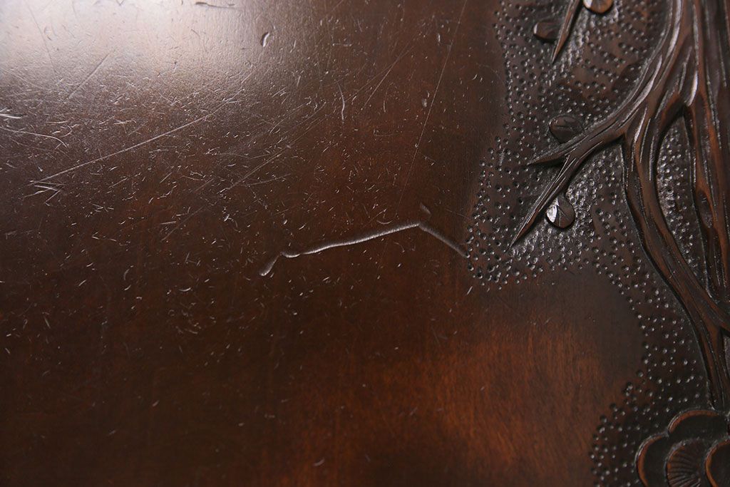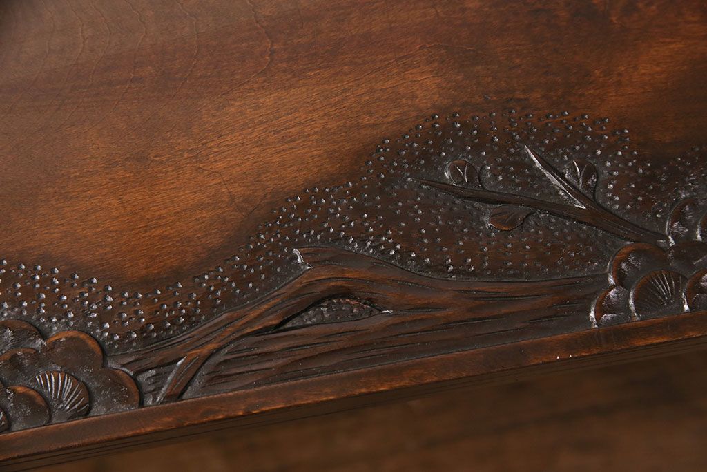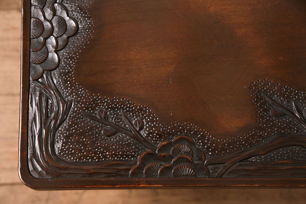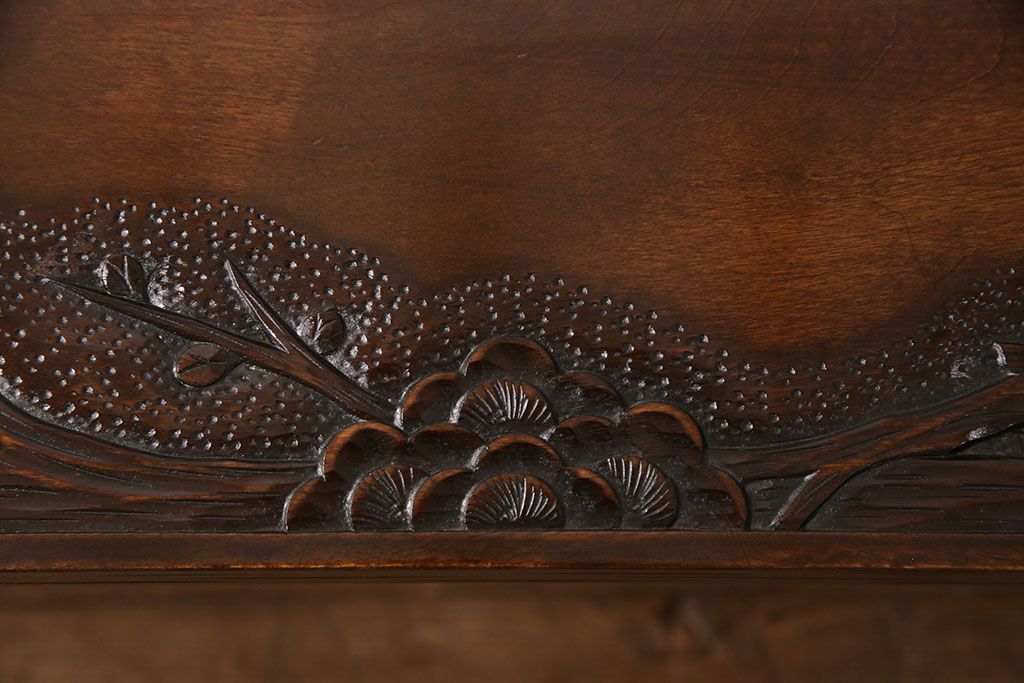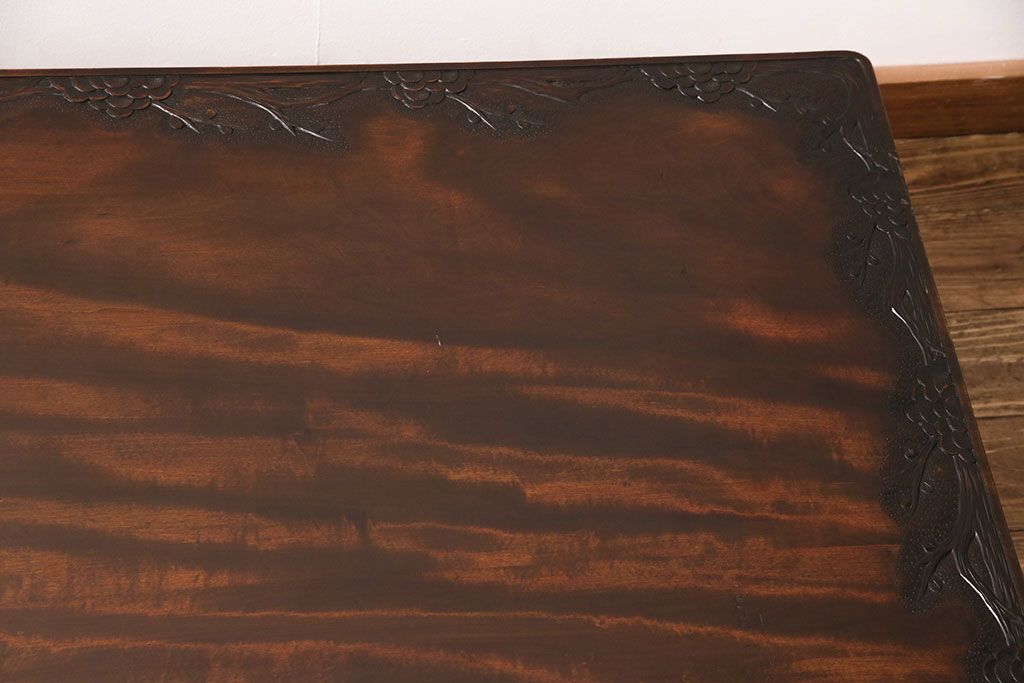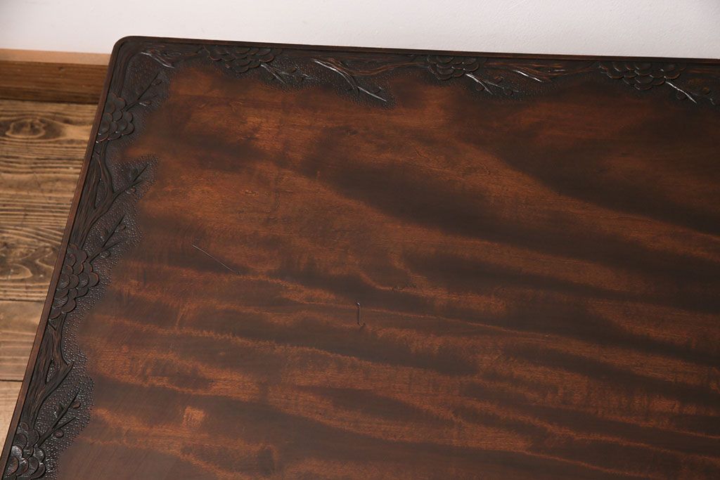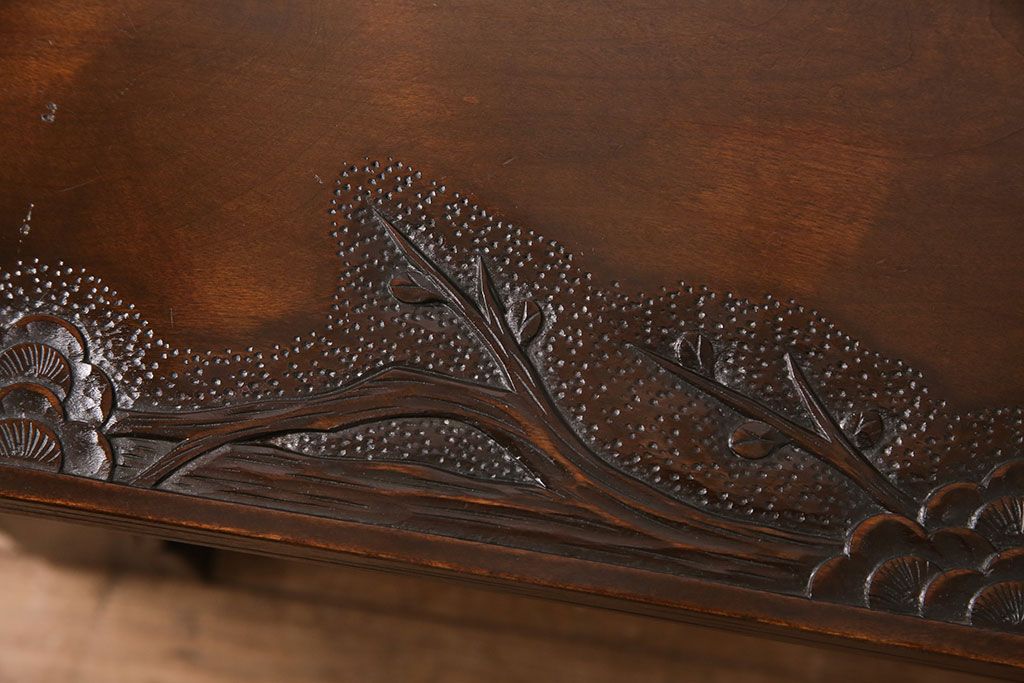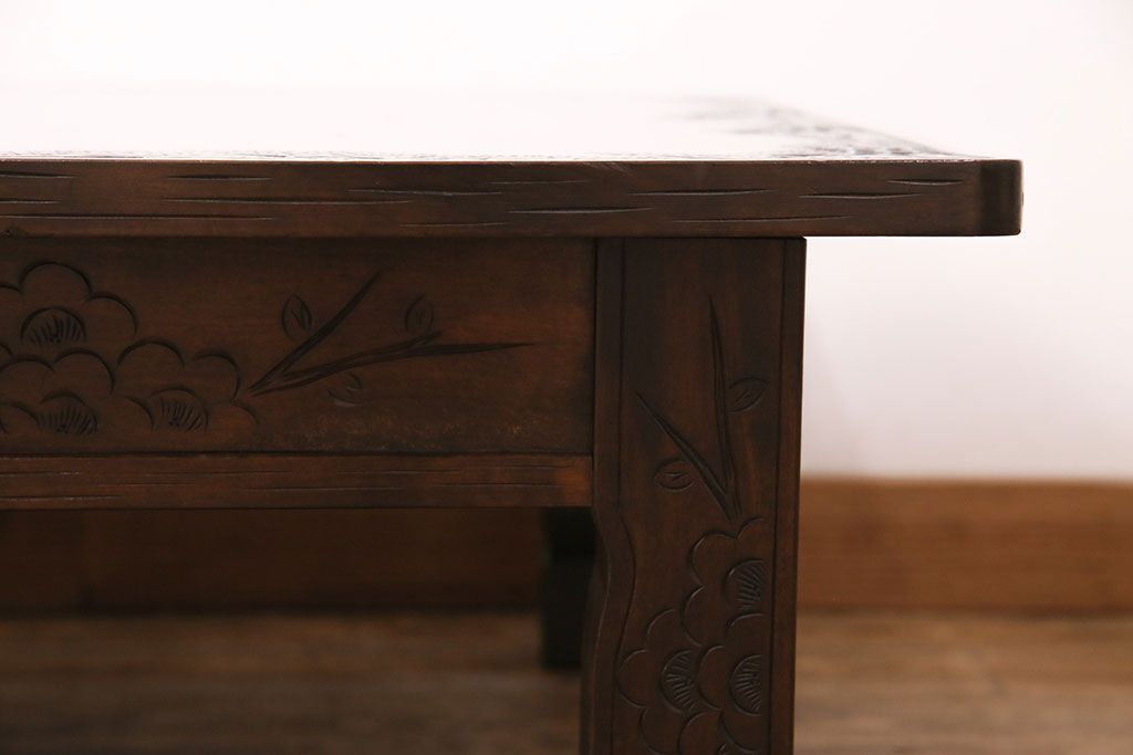 ビンテージ家具 民芸家具 繊細な桜の彫刻が見事な座卓(ローテーブル)(R-049348)