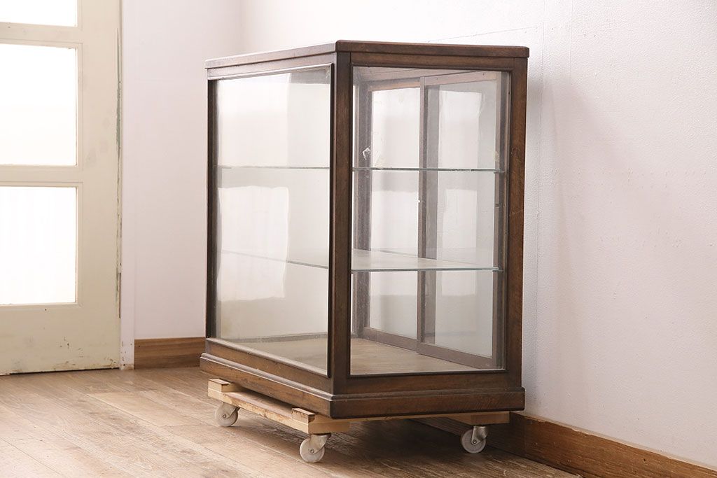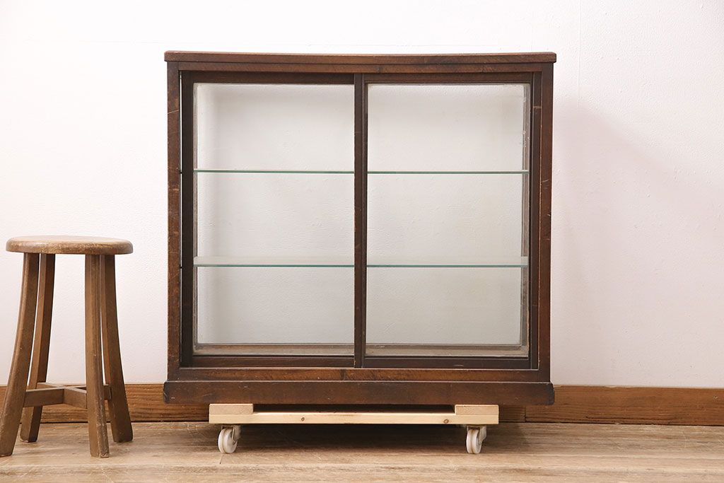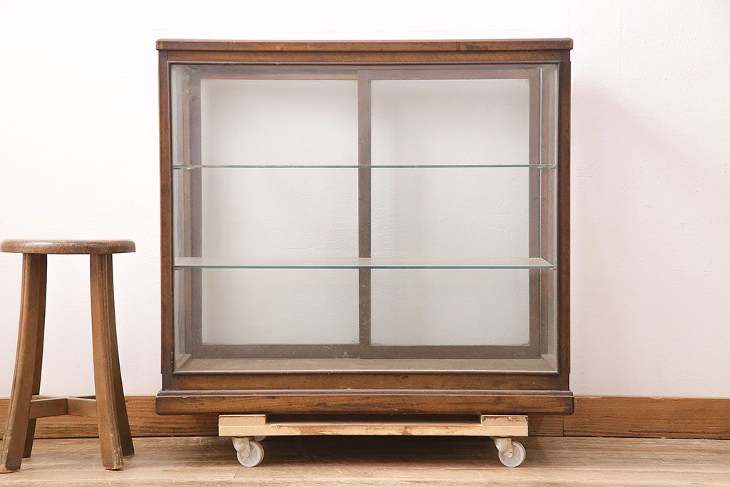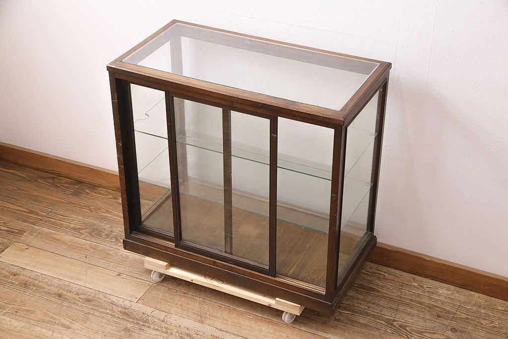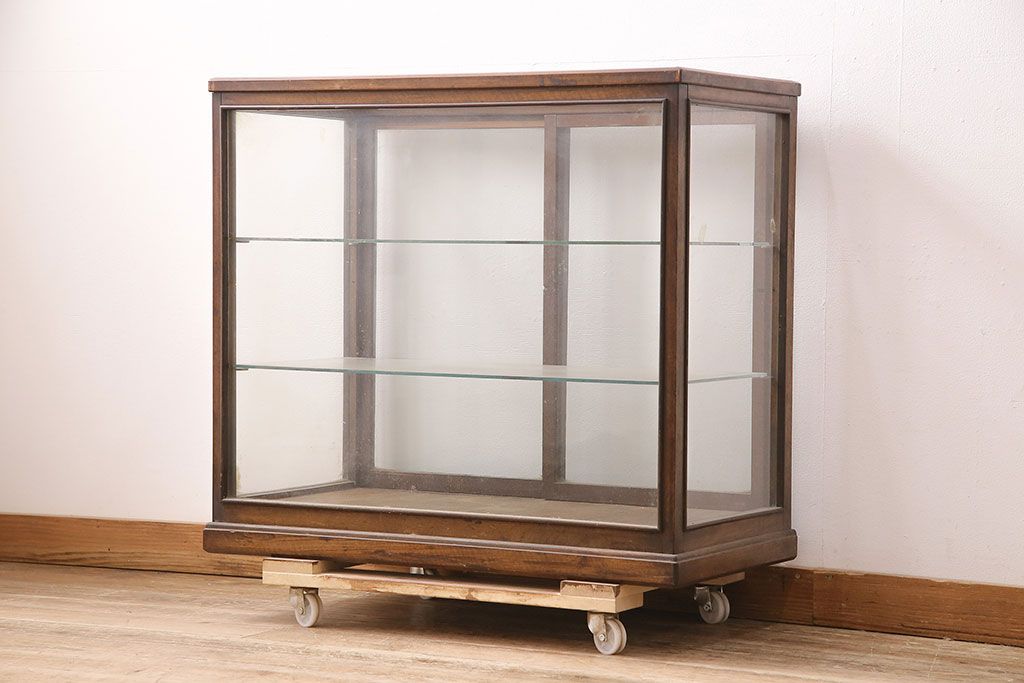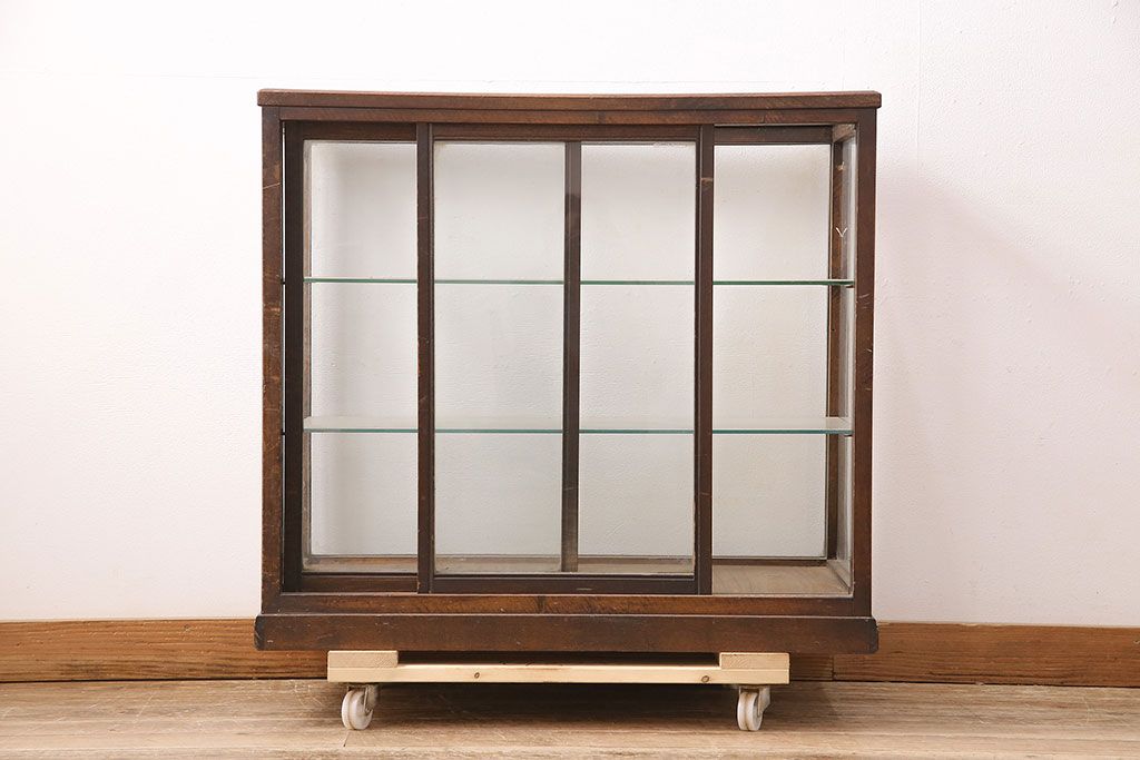 昭和レトロ 使い込まれた味わいが詰まったカバ材製のガラスケース(ショーケース、陳列棚、店舗什器)(R-048654)です。