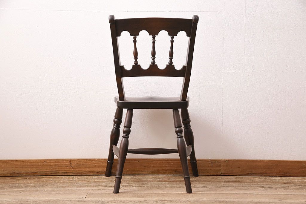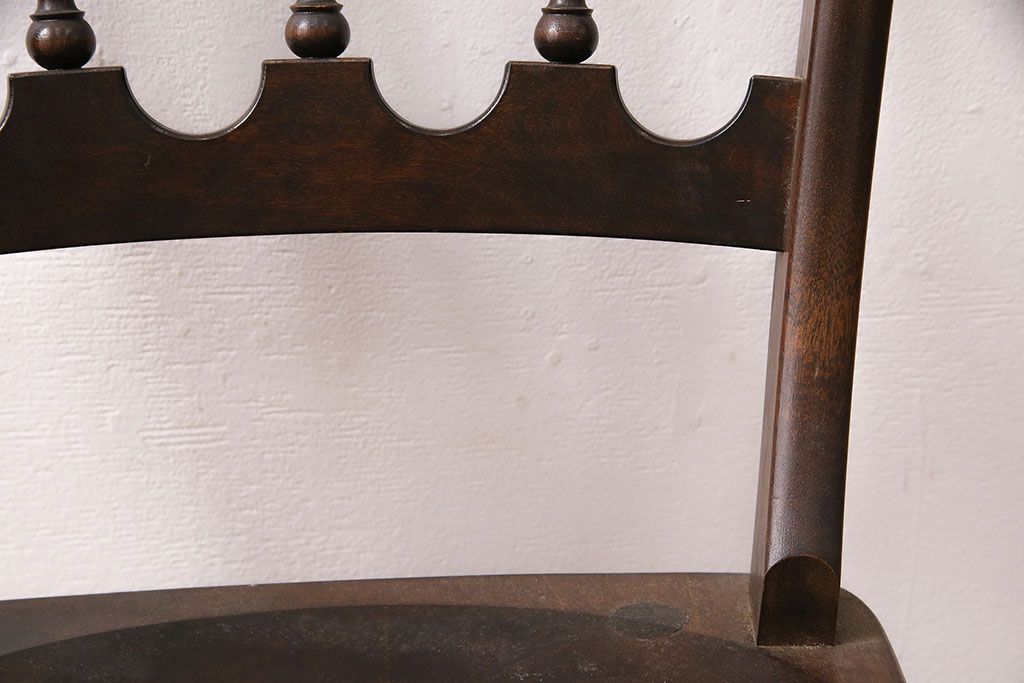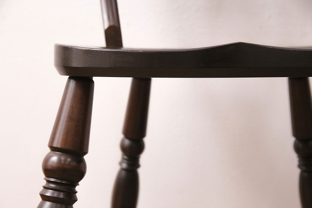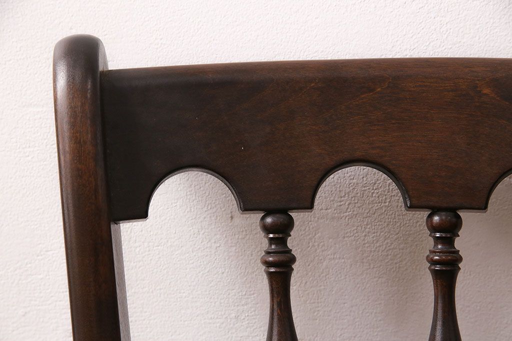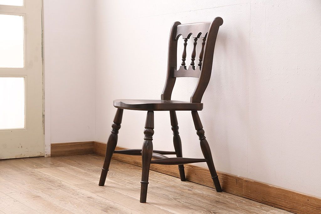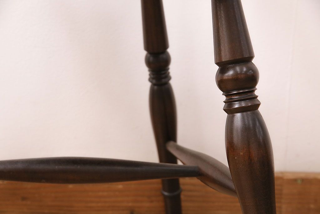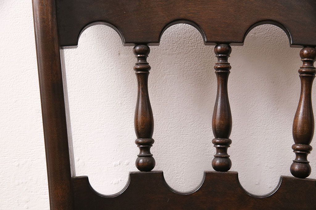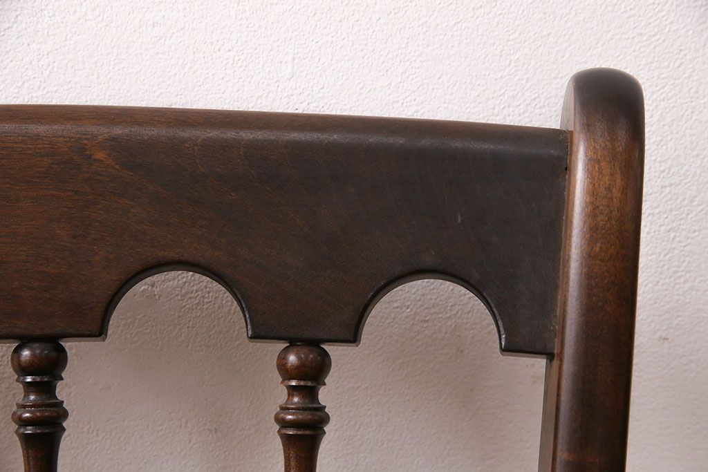背もたれのスポークや脚に施された挽き物加工が