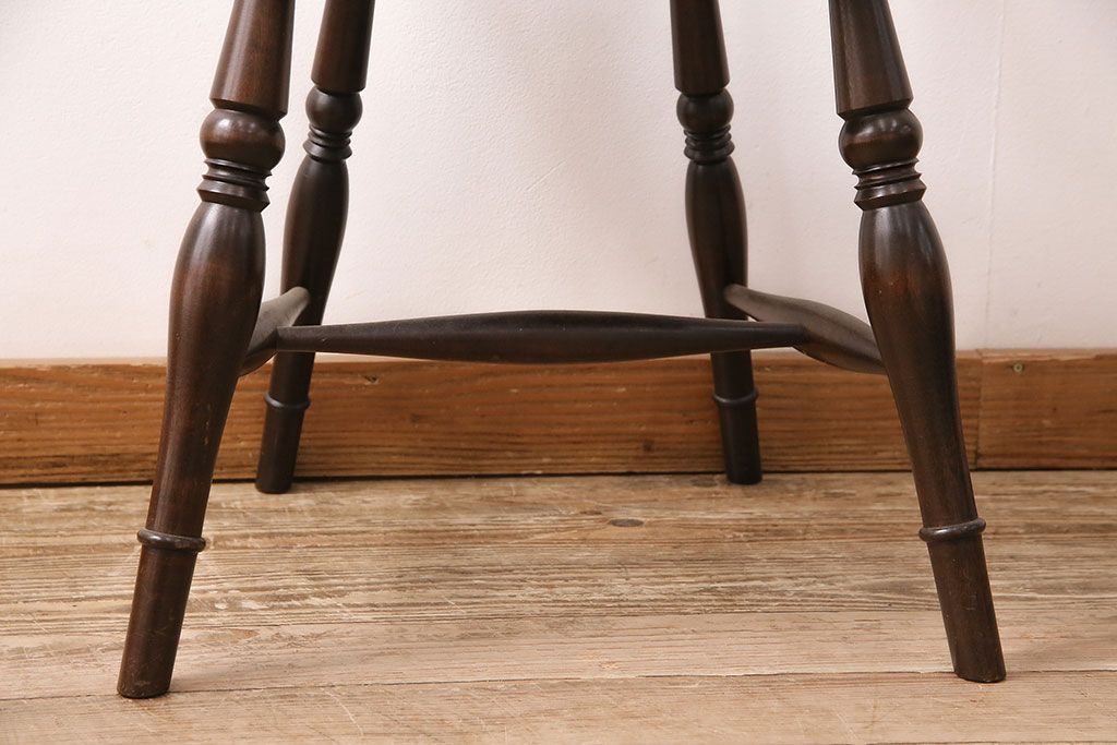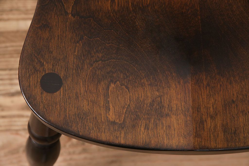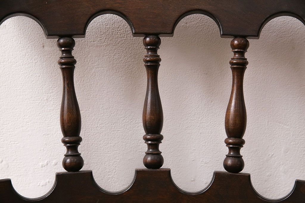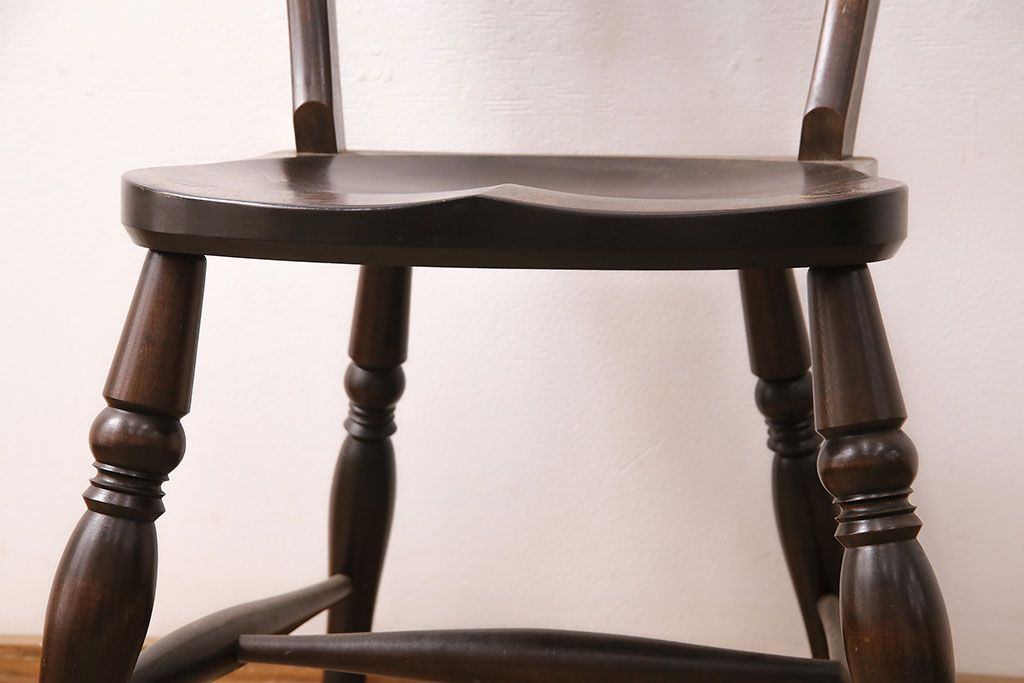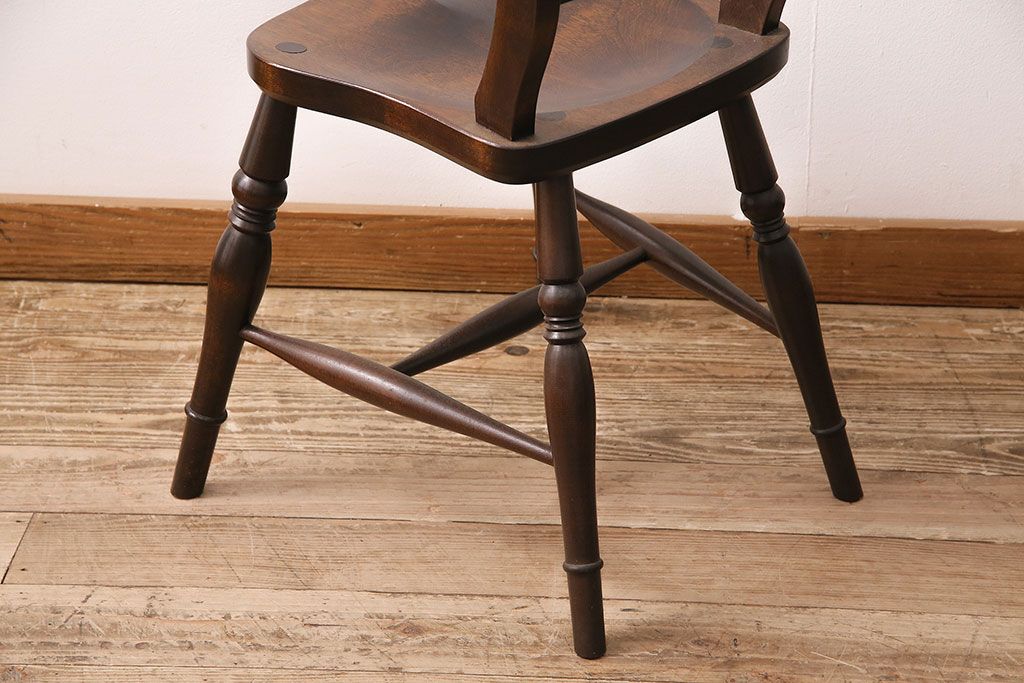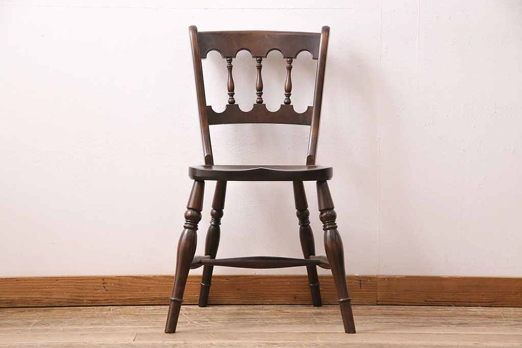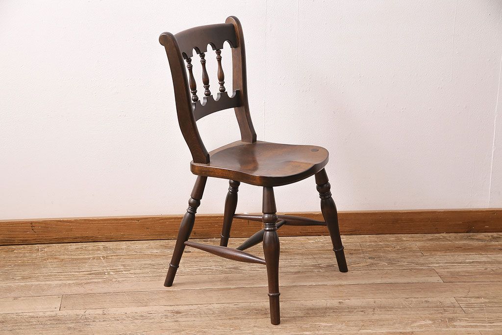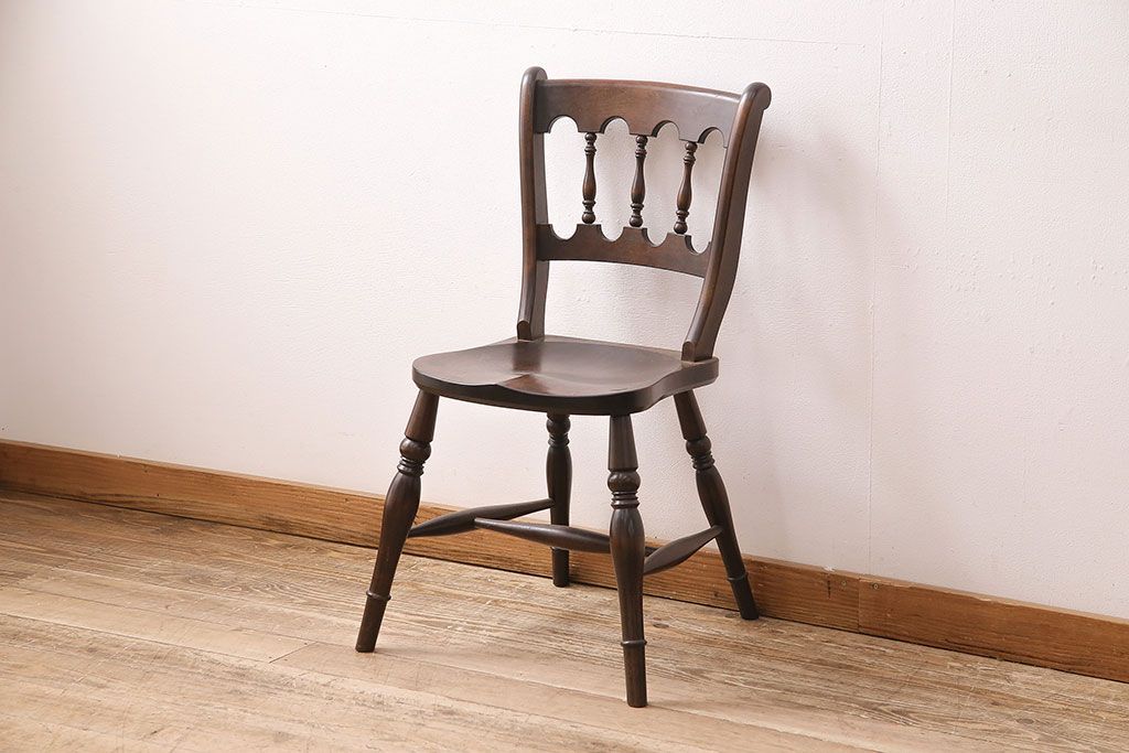 背もたれのスポークや脚に施された挽き物加工が