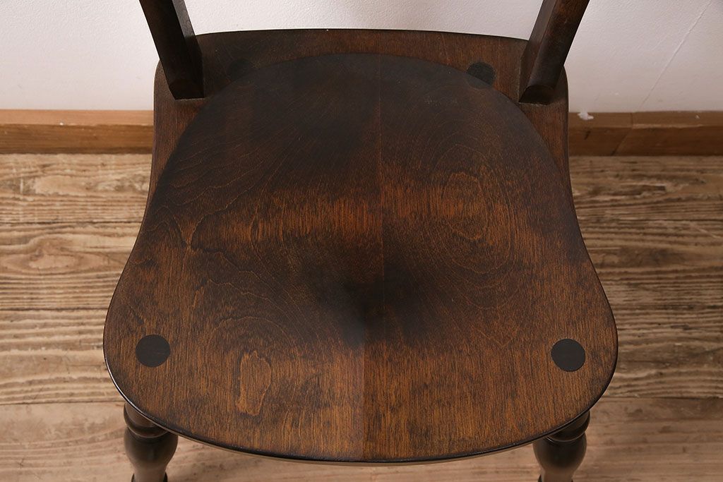 民芸家具 > 中古 松本民芸家具 #49型A 背もたれの美しいデザインが印象的なワイコムチェア(ダイニングチェア、椅子、板座チェア)(R-049010)
