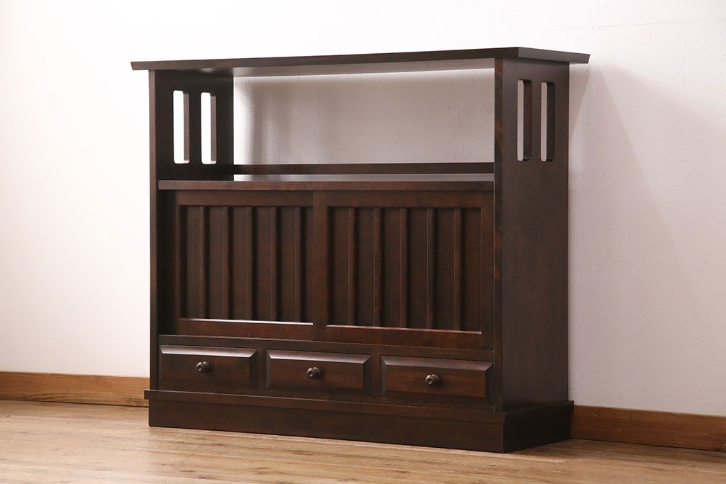 中古 北海道民芸家具 落ち着いた和モダンスタイルのお部屋にぴったりの飾り棚(茶棚、茶タンス)(R-049324)です。