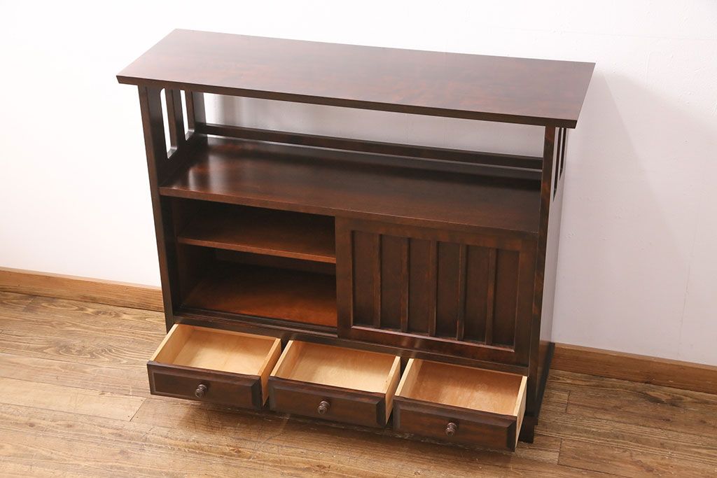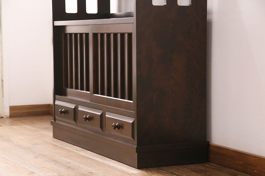 中古 北海道民芸家具 落ち着いた和モダンスタイルのお部屋にぴったりの飾り棚(茶棚、茶タンス)(R-049324)