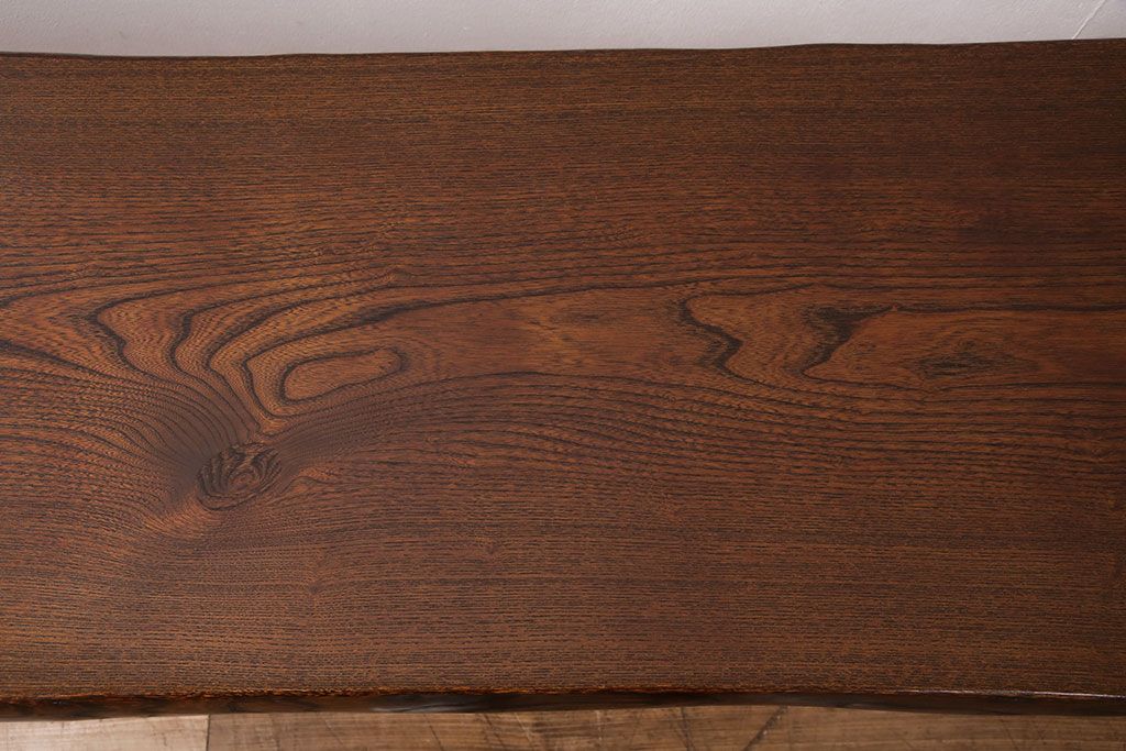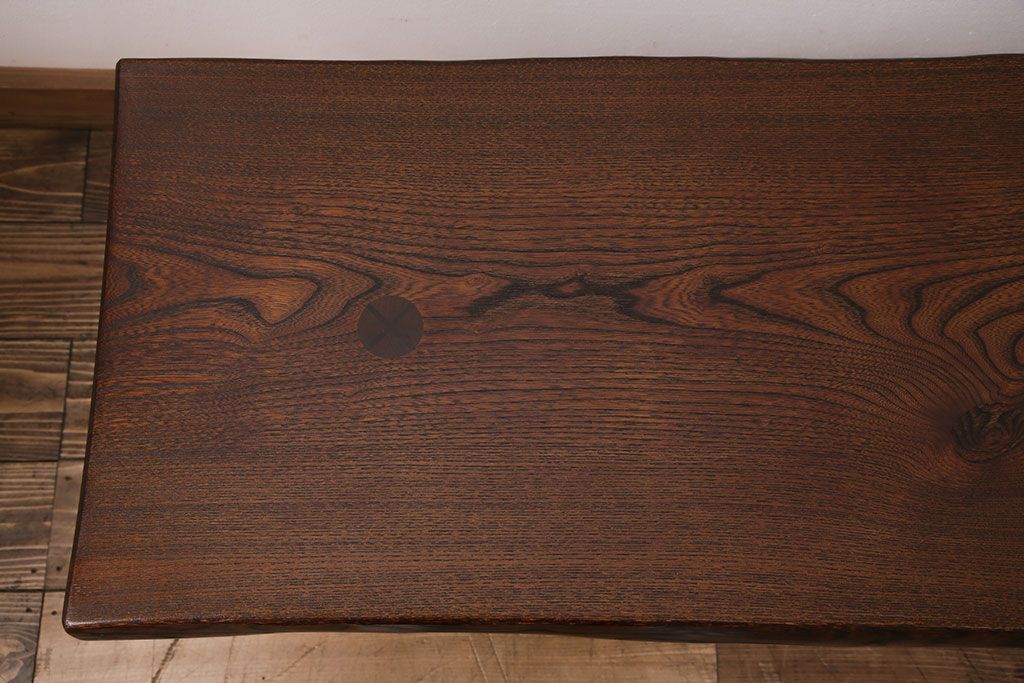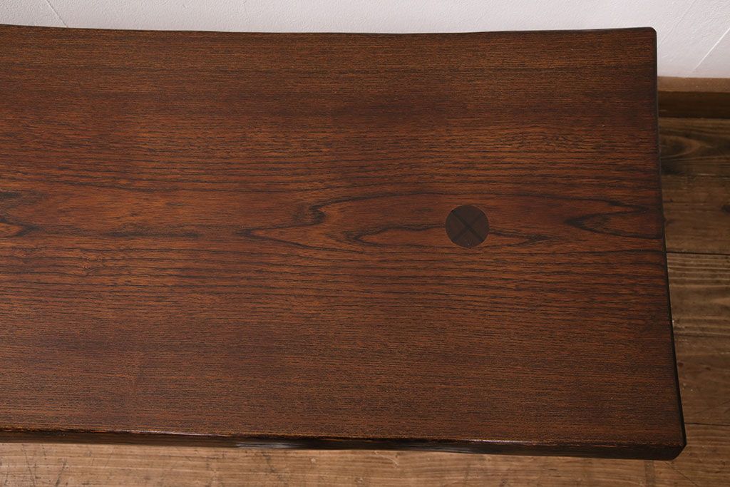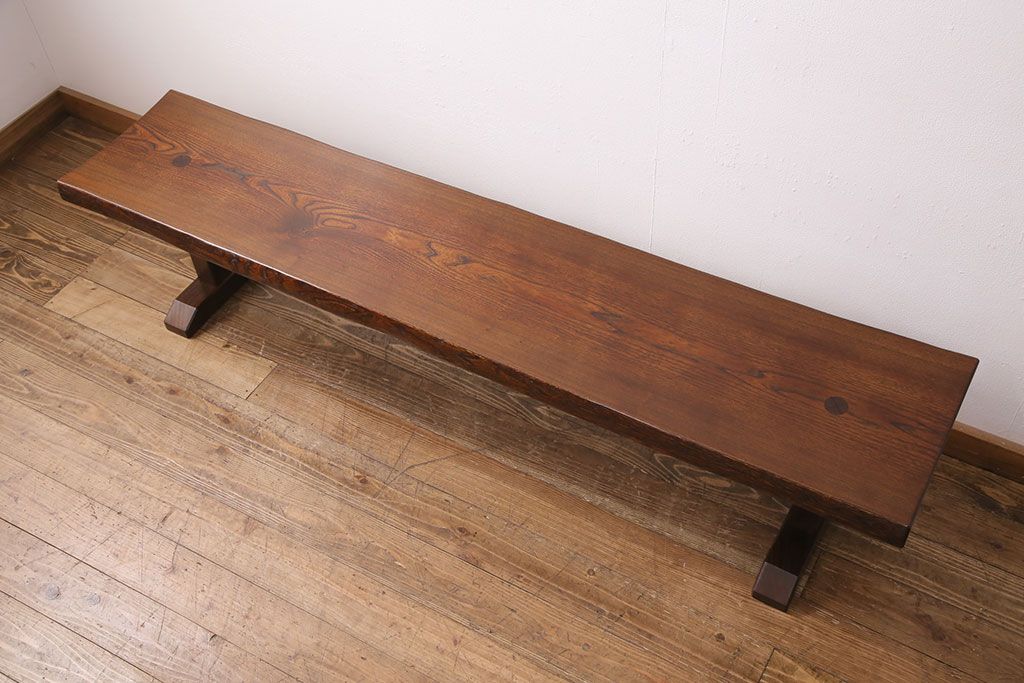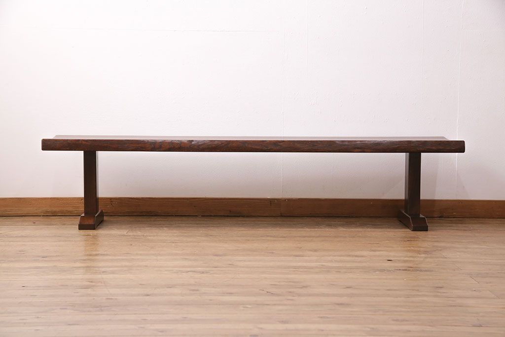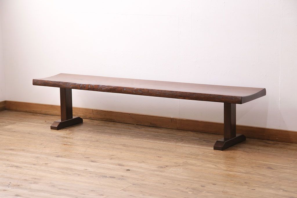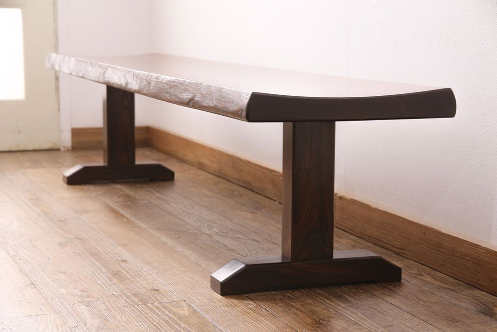 中古 岩手岩泉・純木家具 摺り漆塗り 栗材一枚板を贅沢に使用したベンチ(椅子、イス)(R-049328)です。