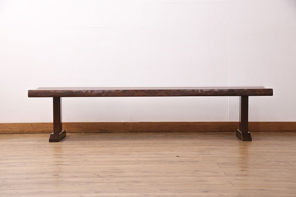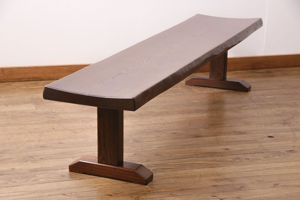 中古 岩手岩泉・純木家具 摺り漆塗り 栗材一枚板を贅沢に使用したベンチ(椅子、イス)(R-049328)