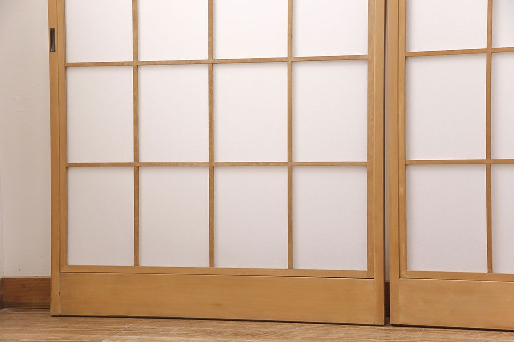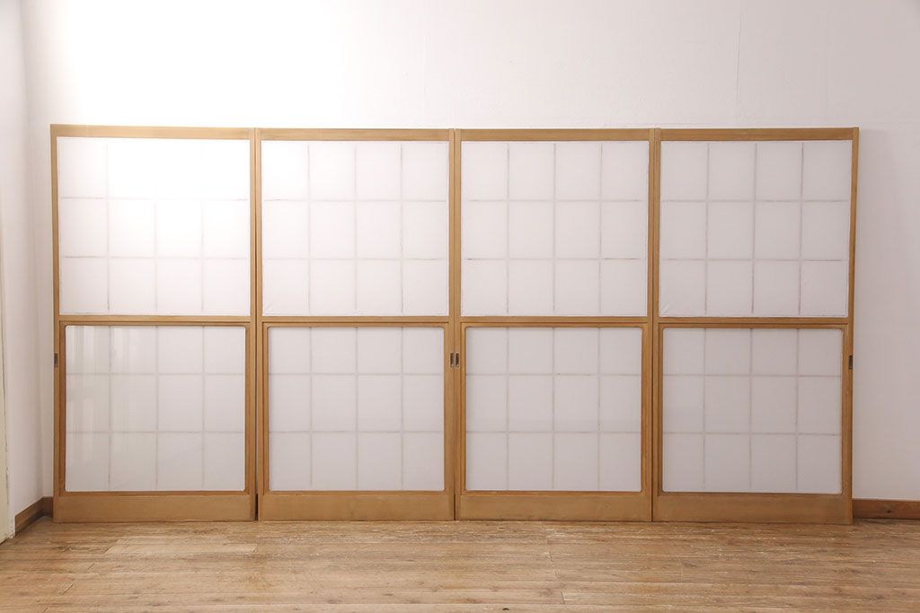 ドア・建具> 障子戸 > アンティーク建具 使い込まれた風合いが趣溢れる雪見障子戸4枚セット(摺り上げ障子戸、引き戸、擦り上げ障子戸、擦上障子戸、建具)(R-049212)