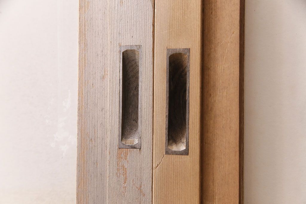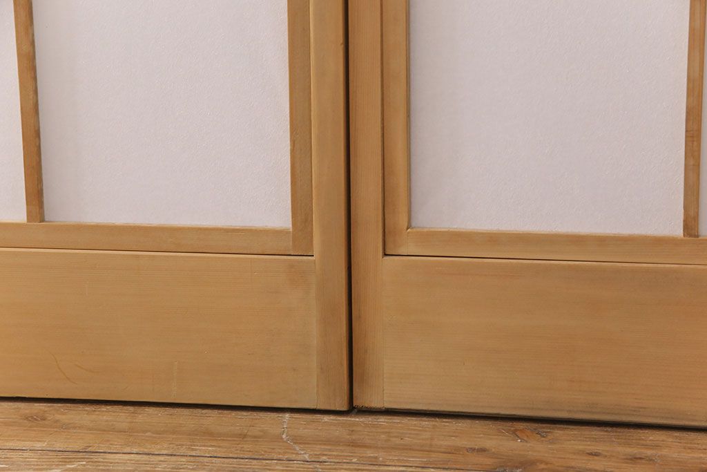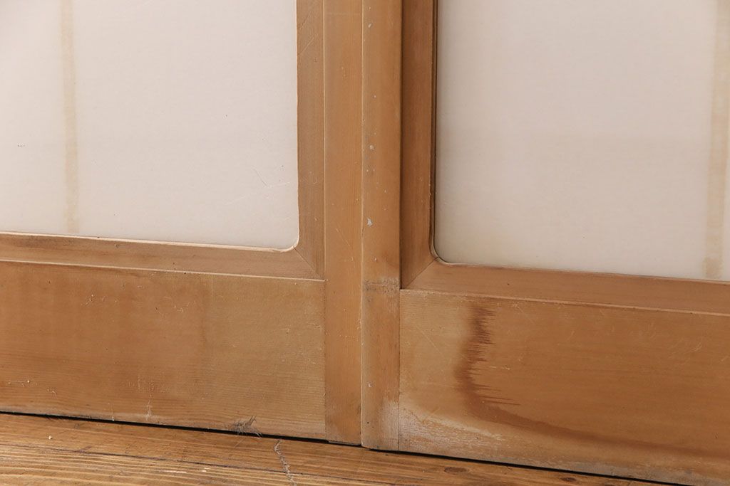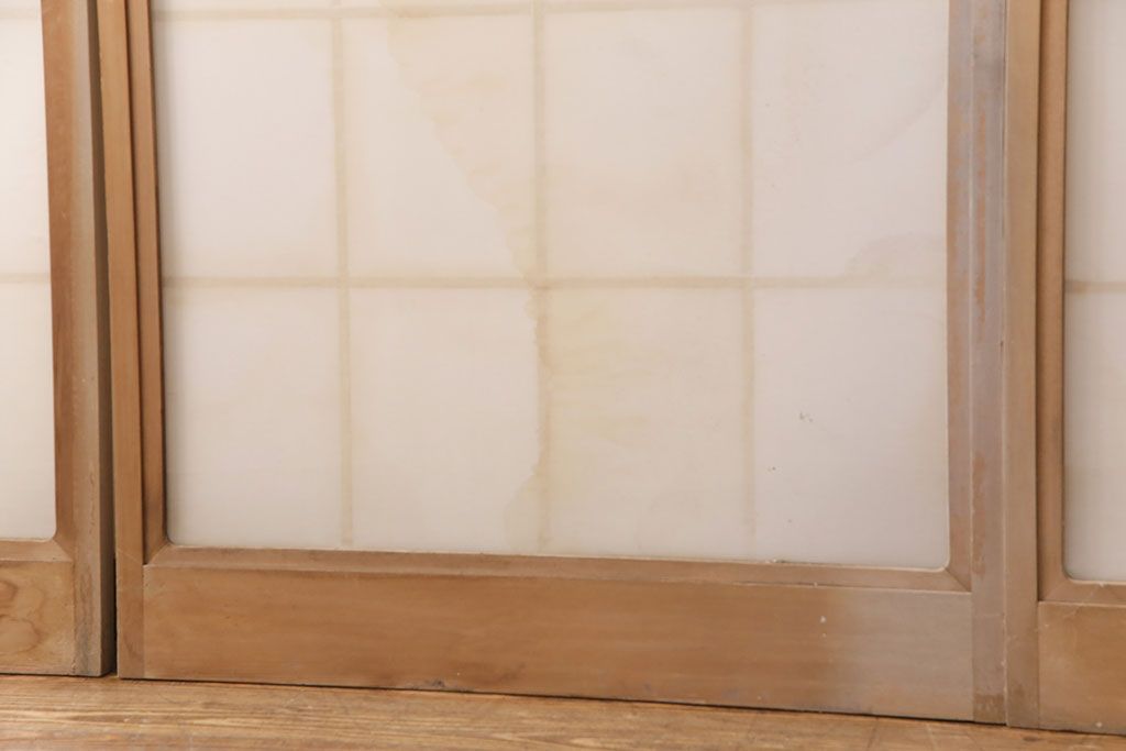 アンティーク建具 使い込まれた風合いが趣溢れる雪見障子戸4枚セット(摺り上げ障子戸、引き戸、擦り上げ障子戸、擦上障子戸、建具)(R-049212)