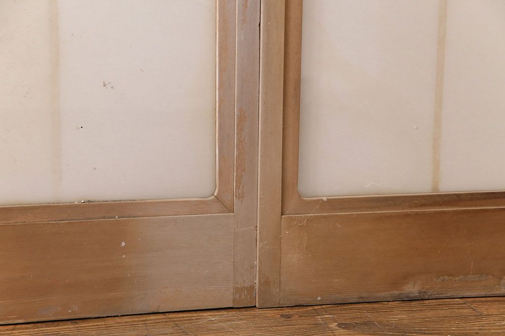 ドア・建具> 4枚〜セット > アンティーク建具 使い込まれた風合いが趣溢れる雪見障子戸4枚セット(摺り上げ障子戸、引き戸、擦り上げ障子戸、擦上障子戸、建具)(R-049212)