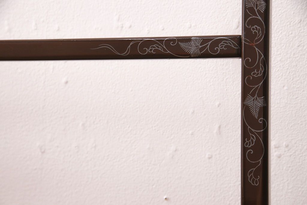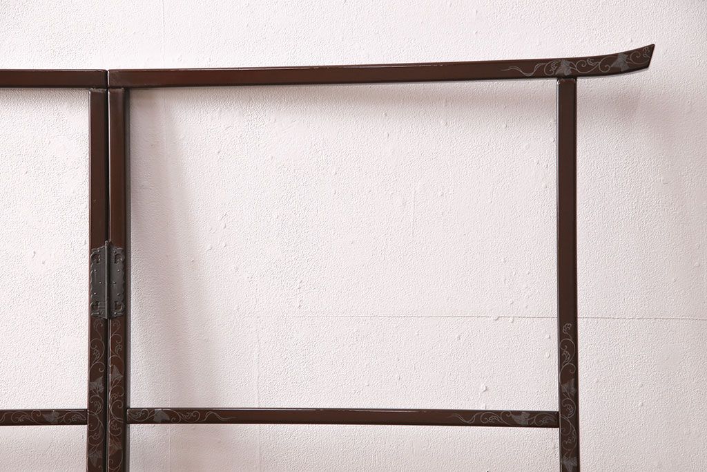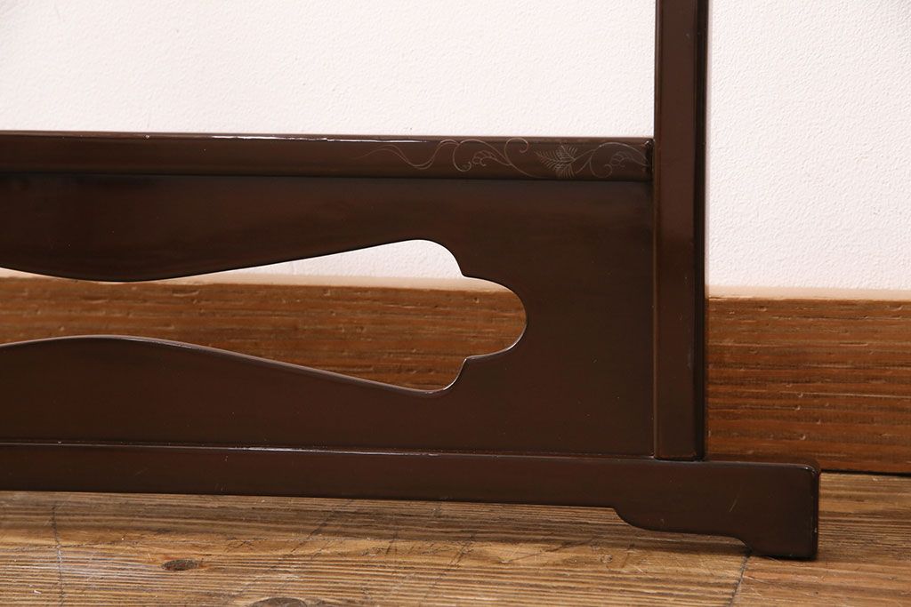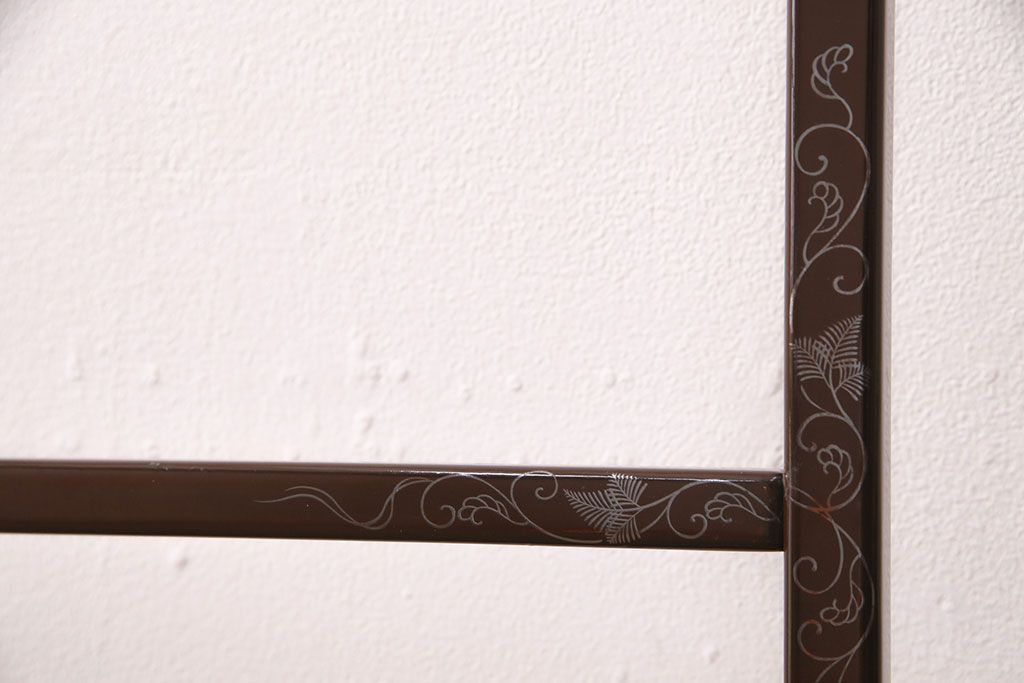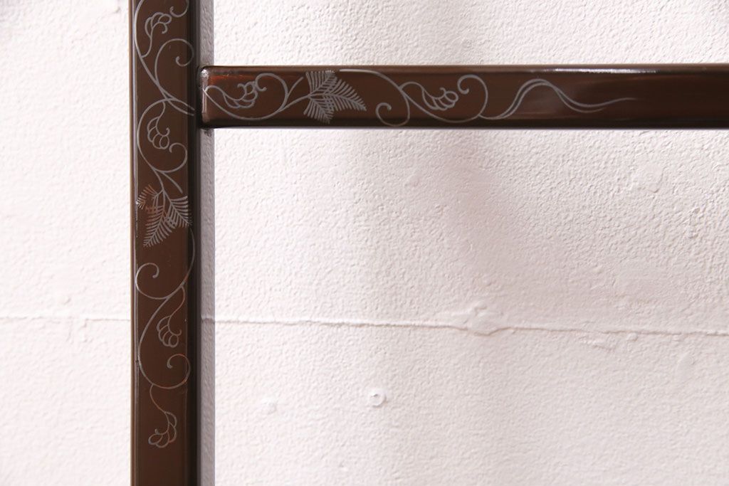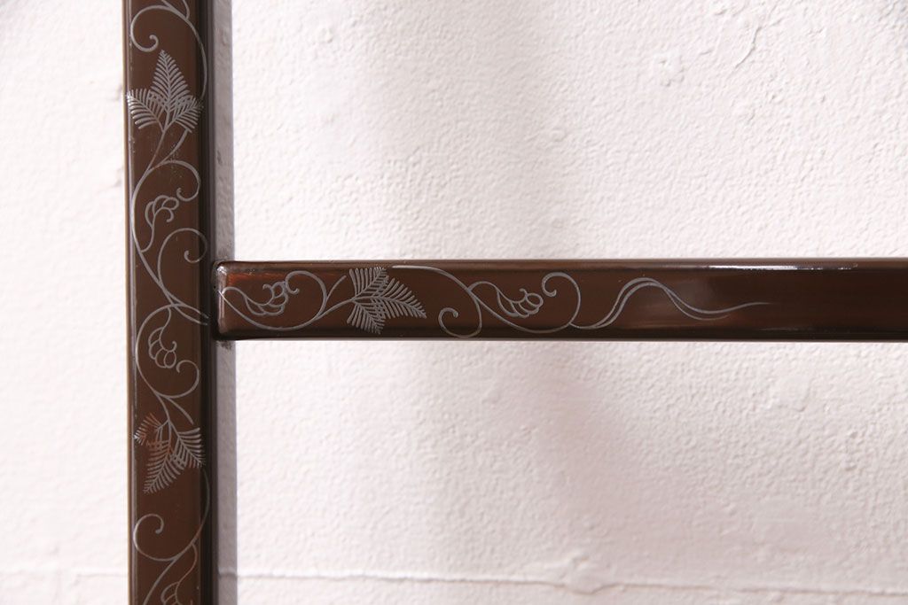 アンティーク雑貨 透かし彫りの意匠が上品な二つ折衣桁(ハンガーラック、着物掛け、衣装掛け、コートハンガー)(R-049354)