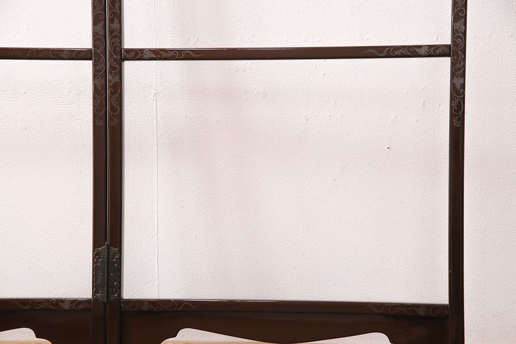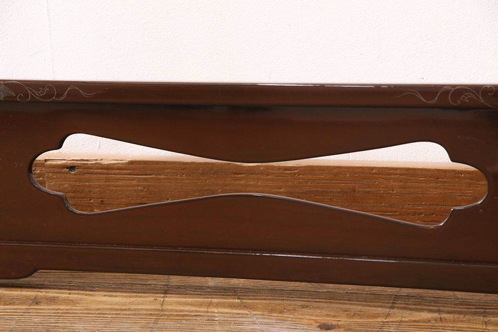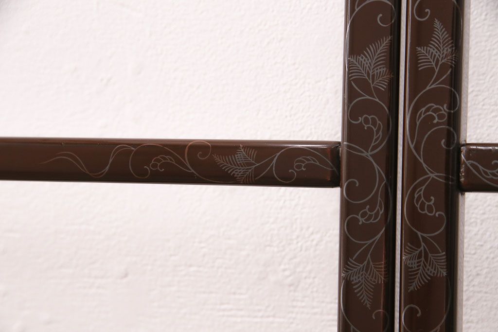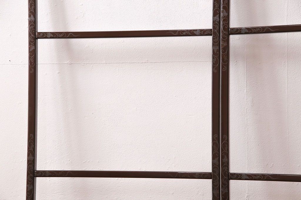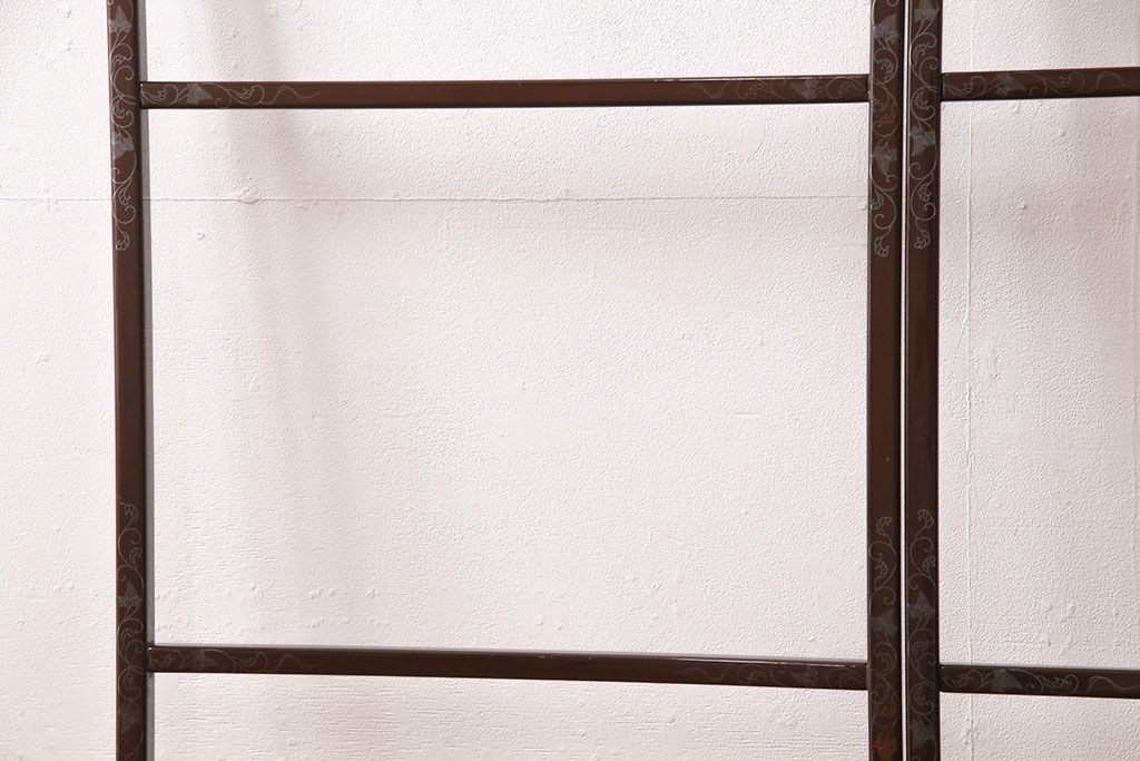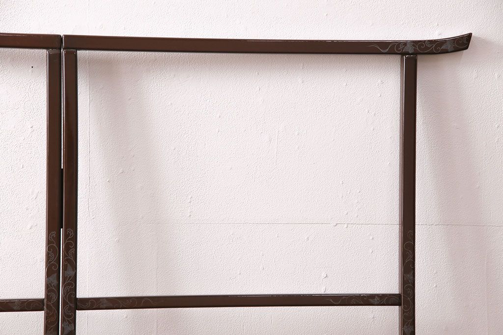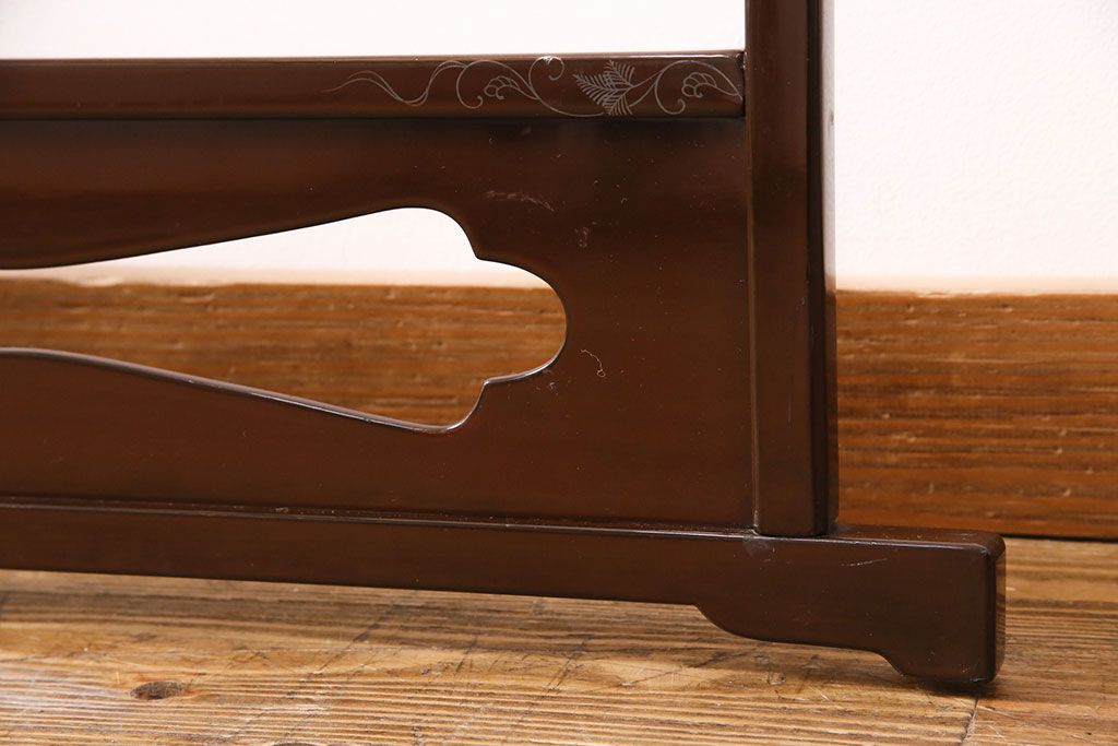 アンティーク雑貨 透かし彫りの意匠が上品な二つ折衣桁(ハンガーラック、着物掛け、衣装掛け、コートハンガー)(R-049354)