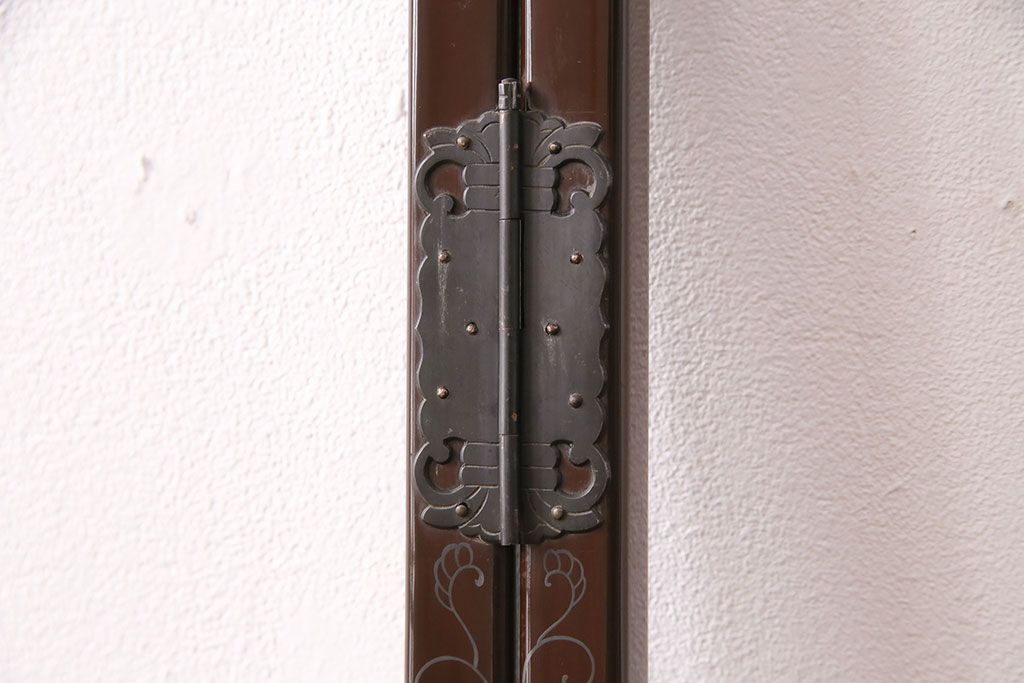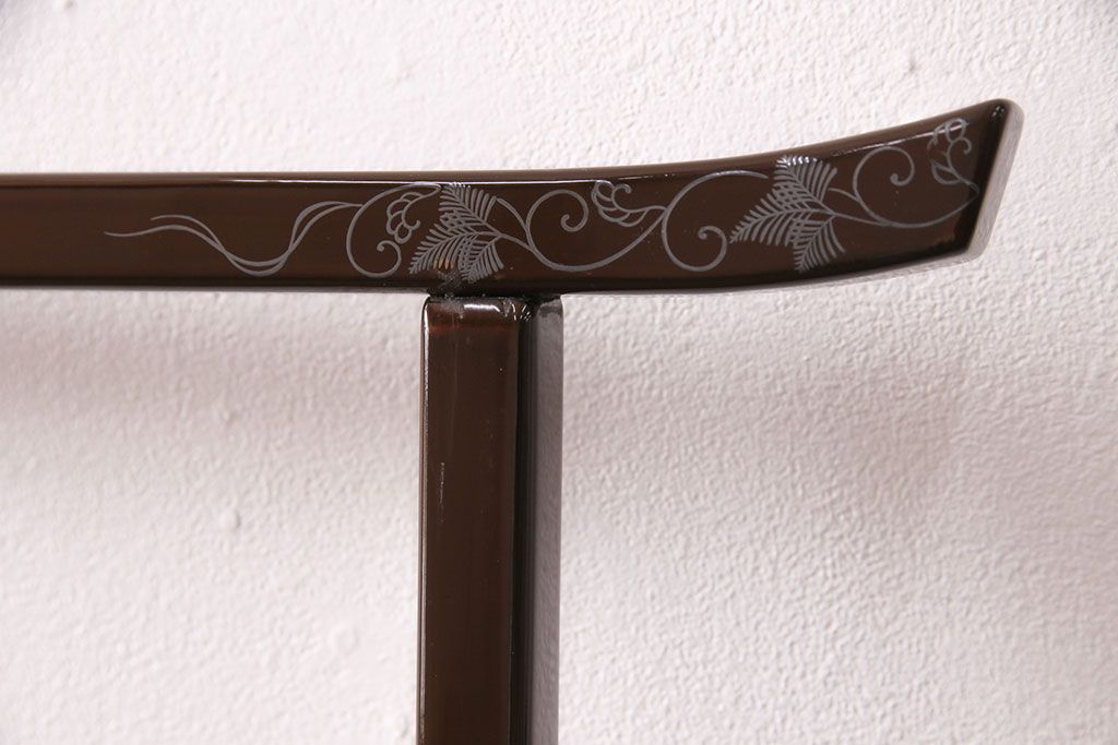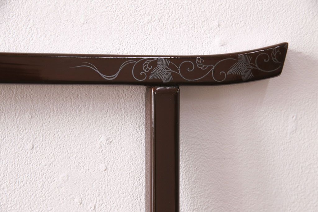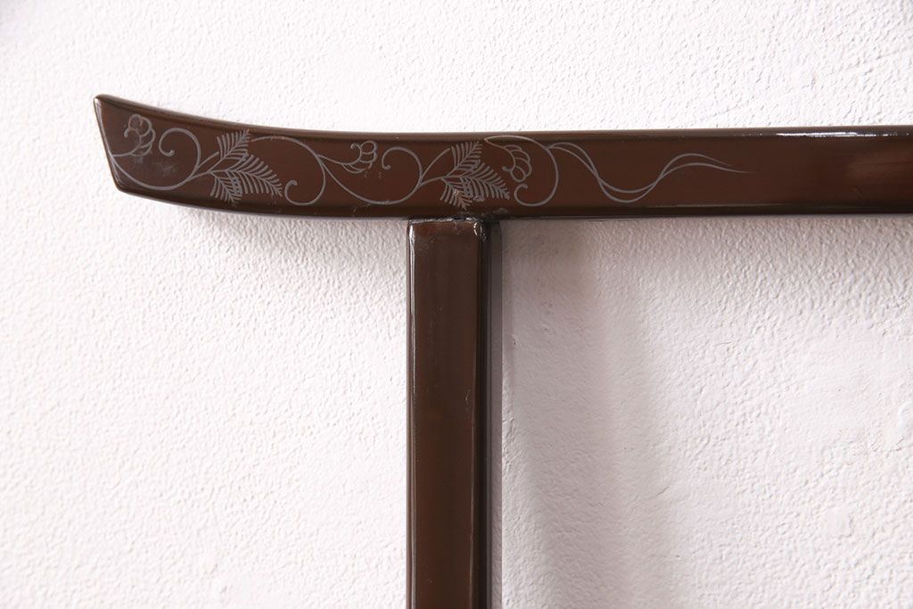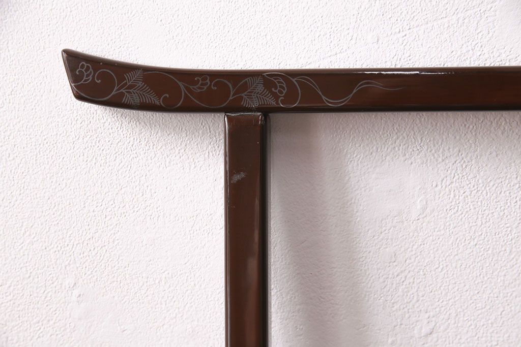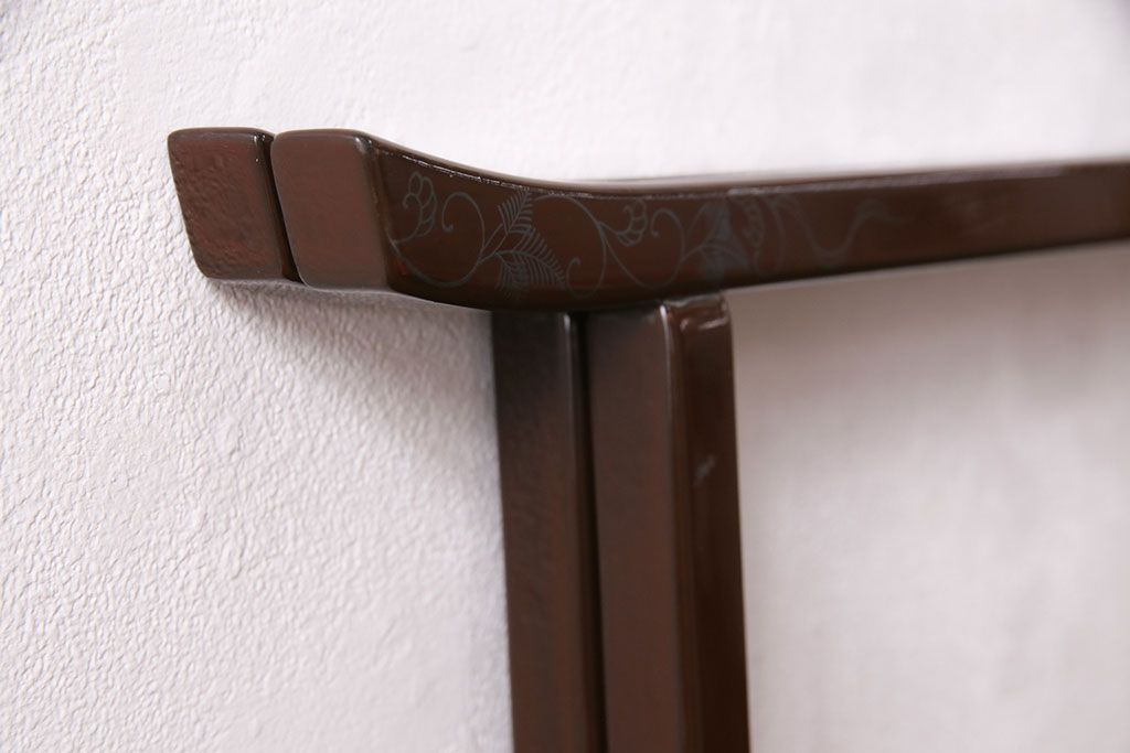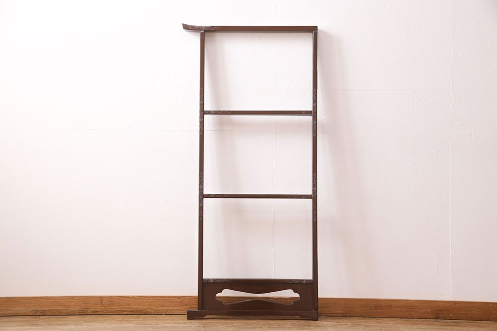 アンティーク雑貨 透かし彫りの意匠が上品な二つ折衣桁(ハンガーラック、着物掛け、衣装掛け、コートハンガー)(R-049354)です。
