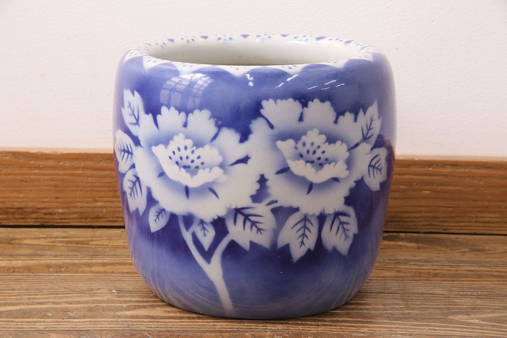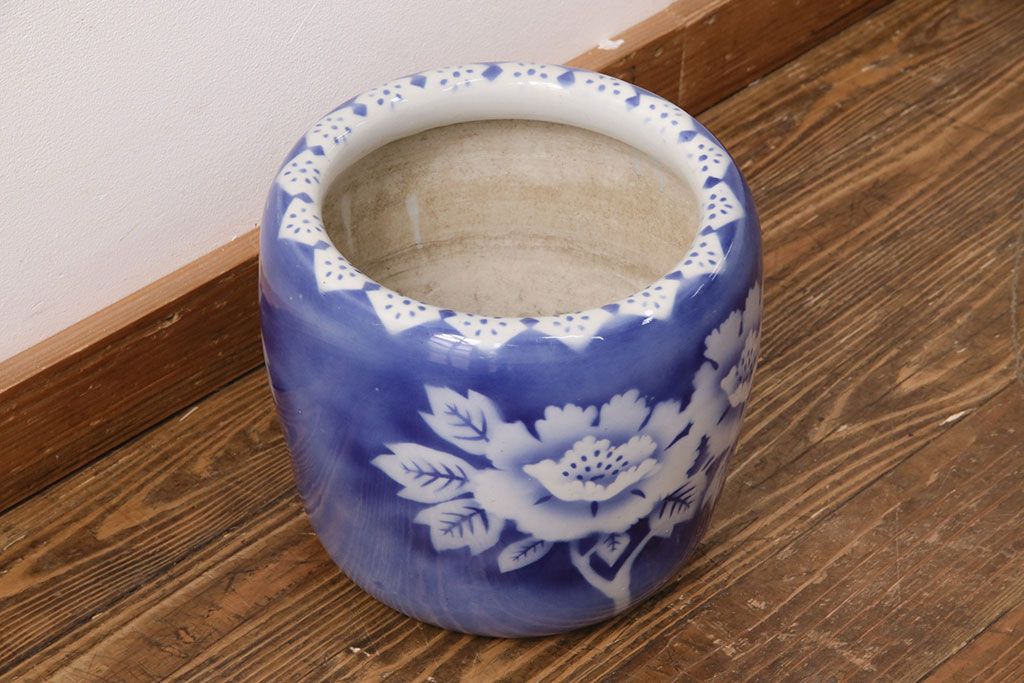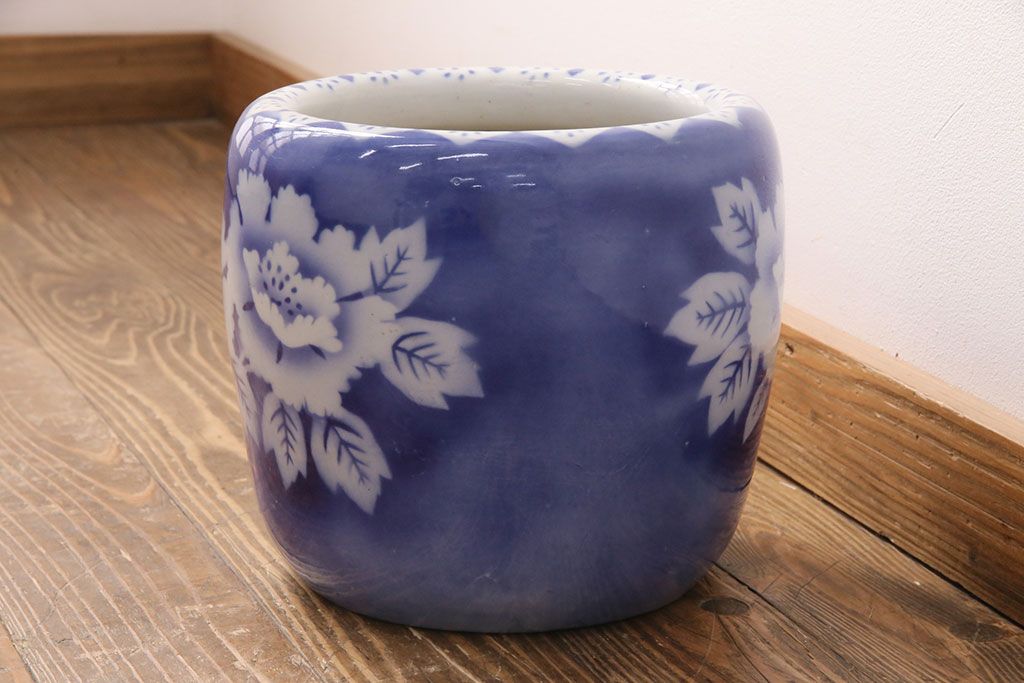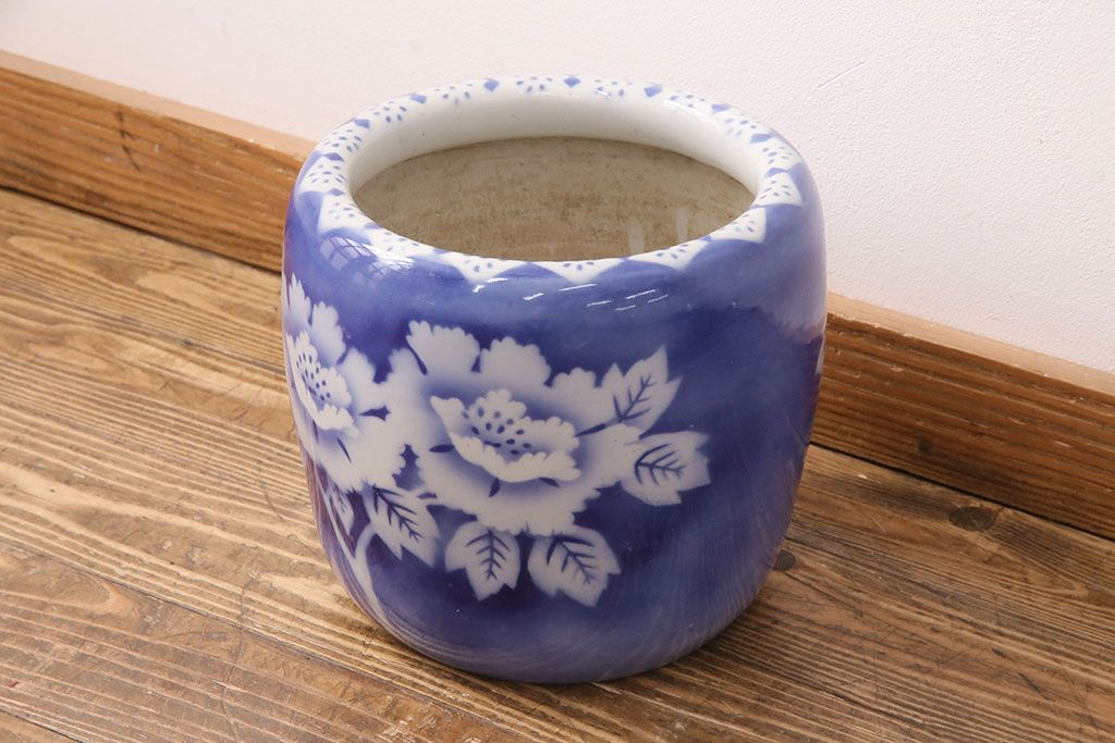 アンティーク雑貨 牡丹の図が優美な雰囲気を盛り上げる瀬戸火鉢(鉢カバー)(R-049357)