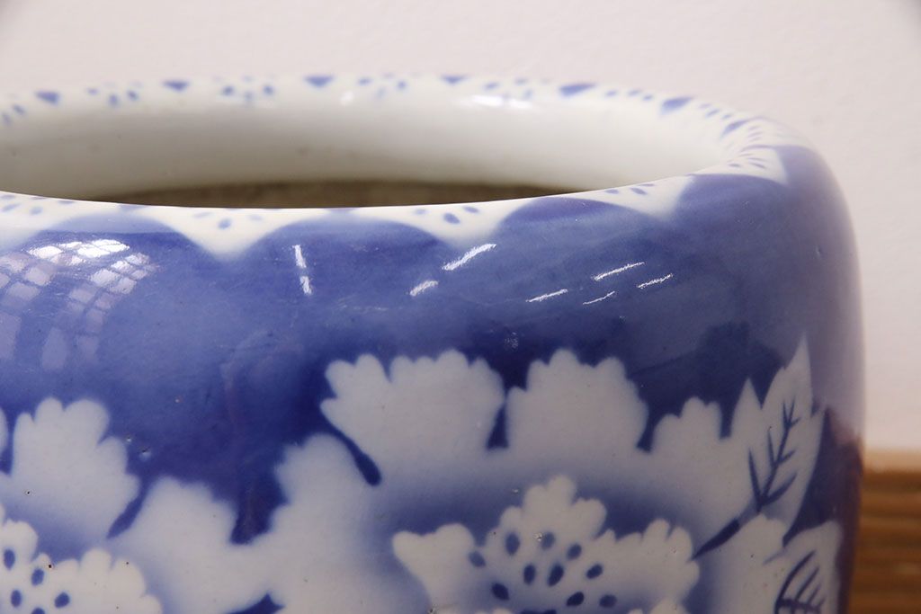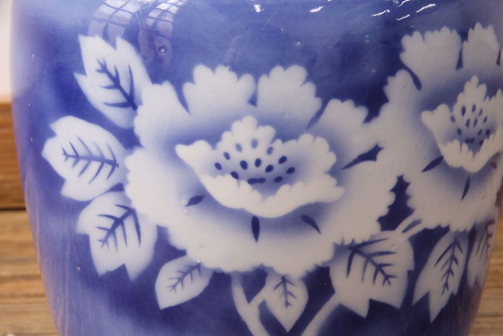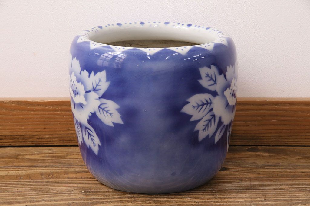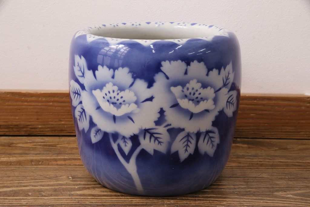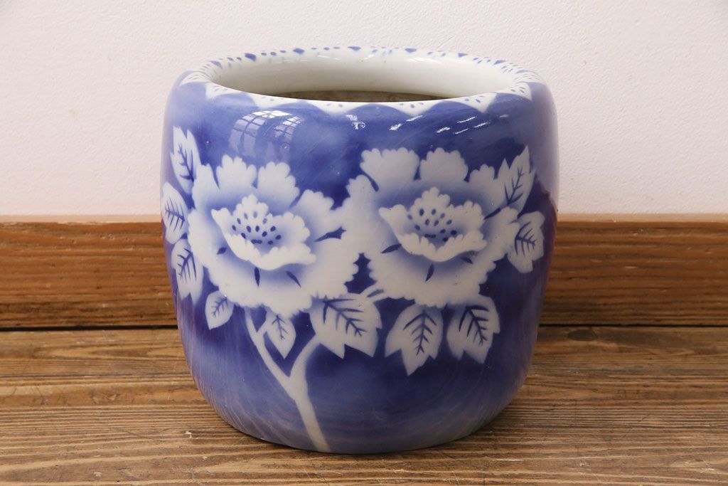 アンティーク雑貨 牡丹の図が優美な雰囲気を盛り上げる瀬戸火鉢(鉢カバー)(R-049357)