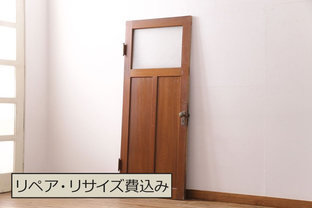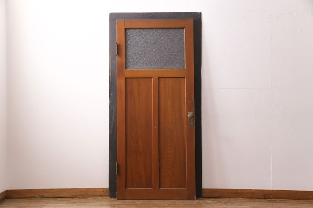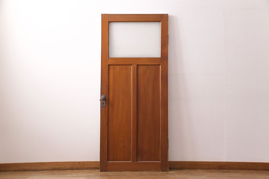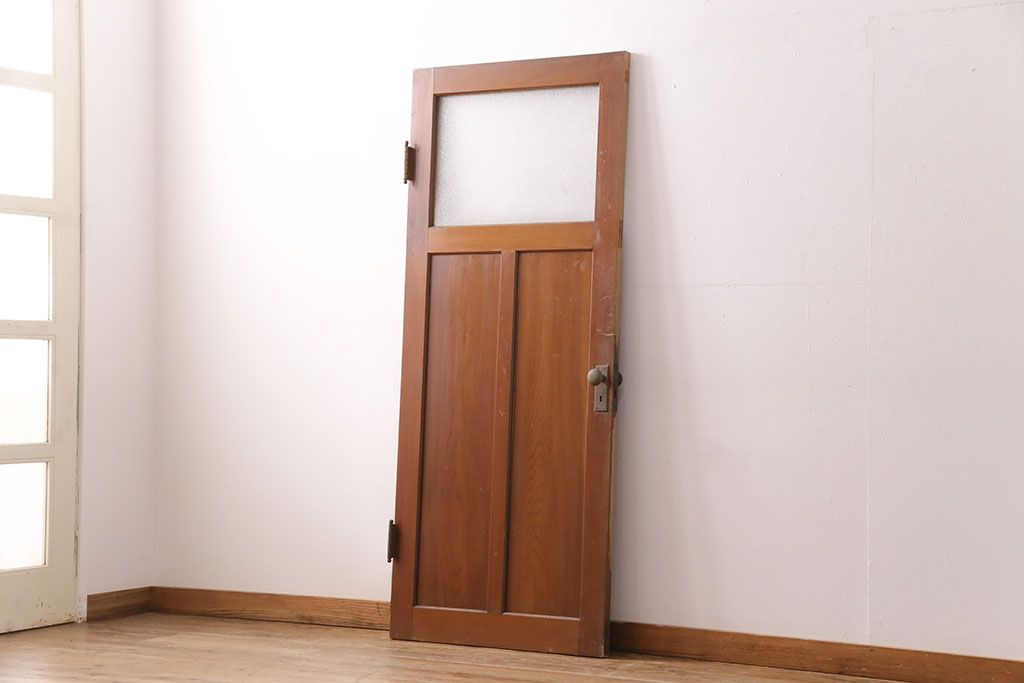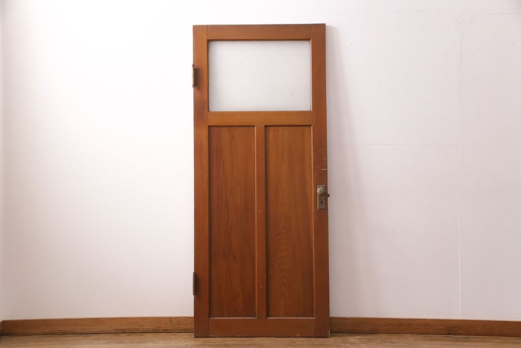 アンティーク建具 ヒノキ材 昭和レトロな空間づくりにおすすめの木製ドア(ガラス扉、建具)(R-049206)