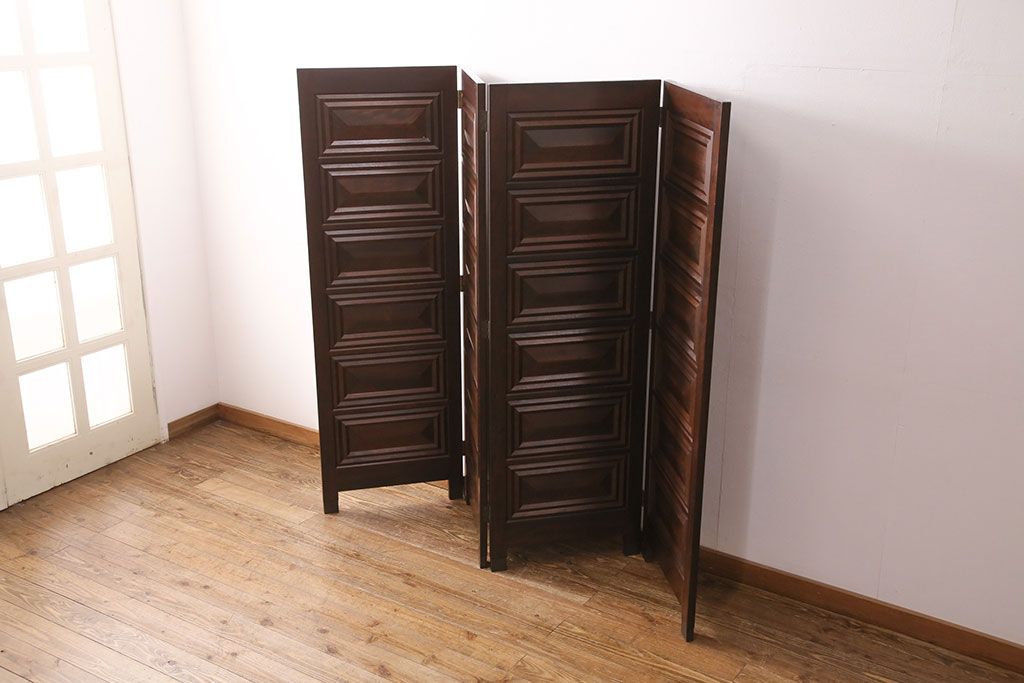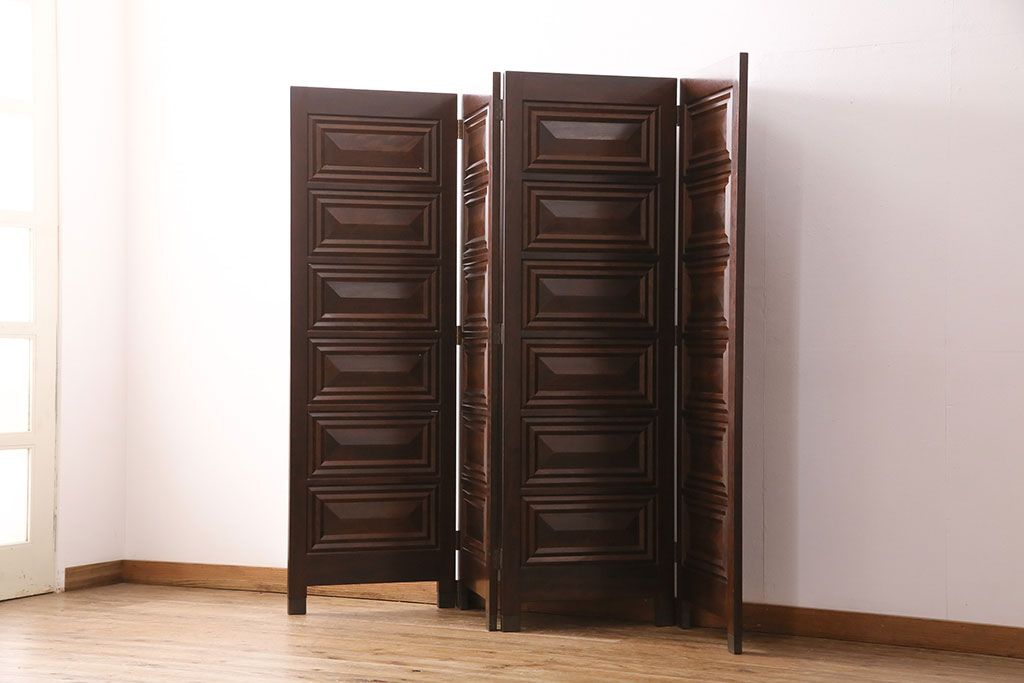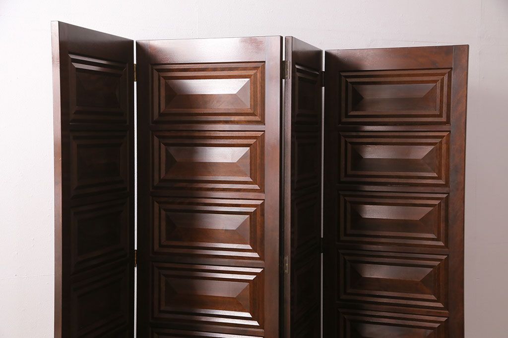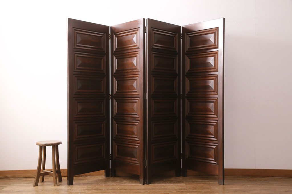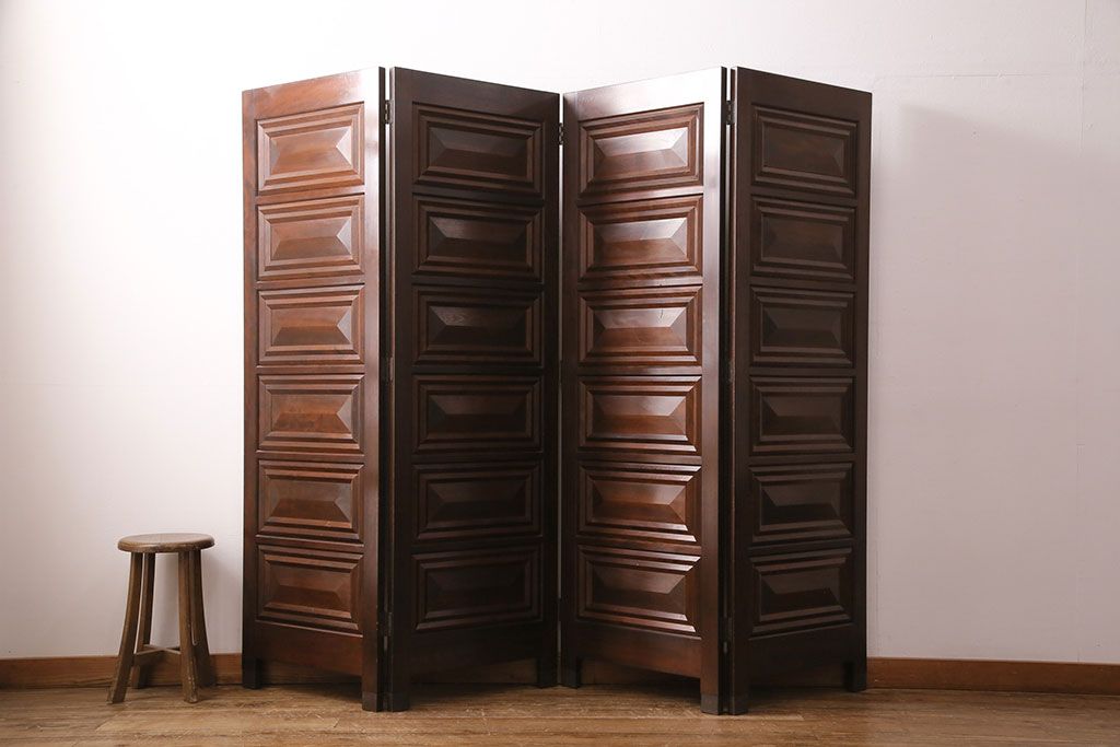 衝立・パーテーション > 中古 松本民芸家具 激レア!クラシカルなデザインが高級感を演出するA型衝立(定価約83万円)(四連パーテーション、つい立て)(R-049318)