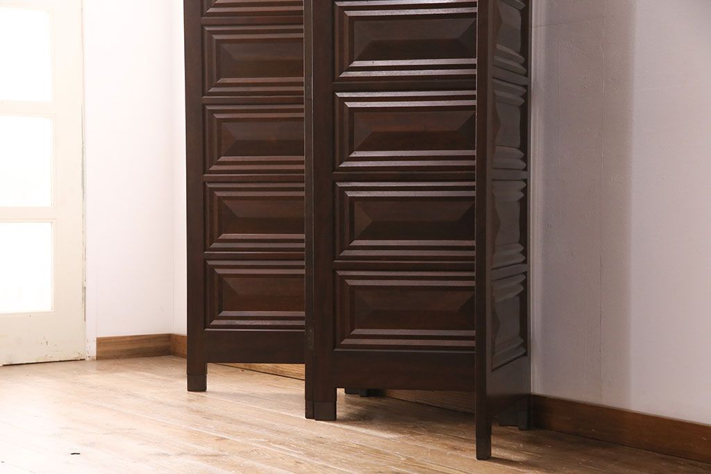 中古 松本民芸家具 激レア!クラシカルなデザインが高級感を演出するA型衝立(定価約83万円)(四連パーテーション、つい立て)(R-049318)です。