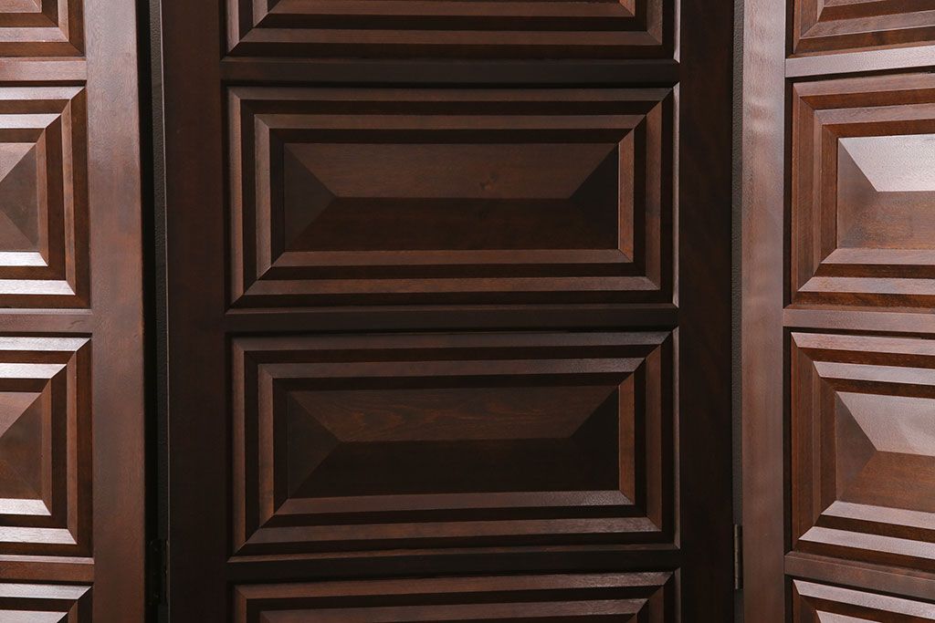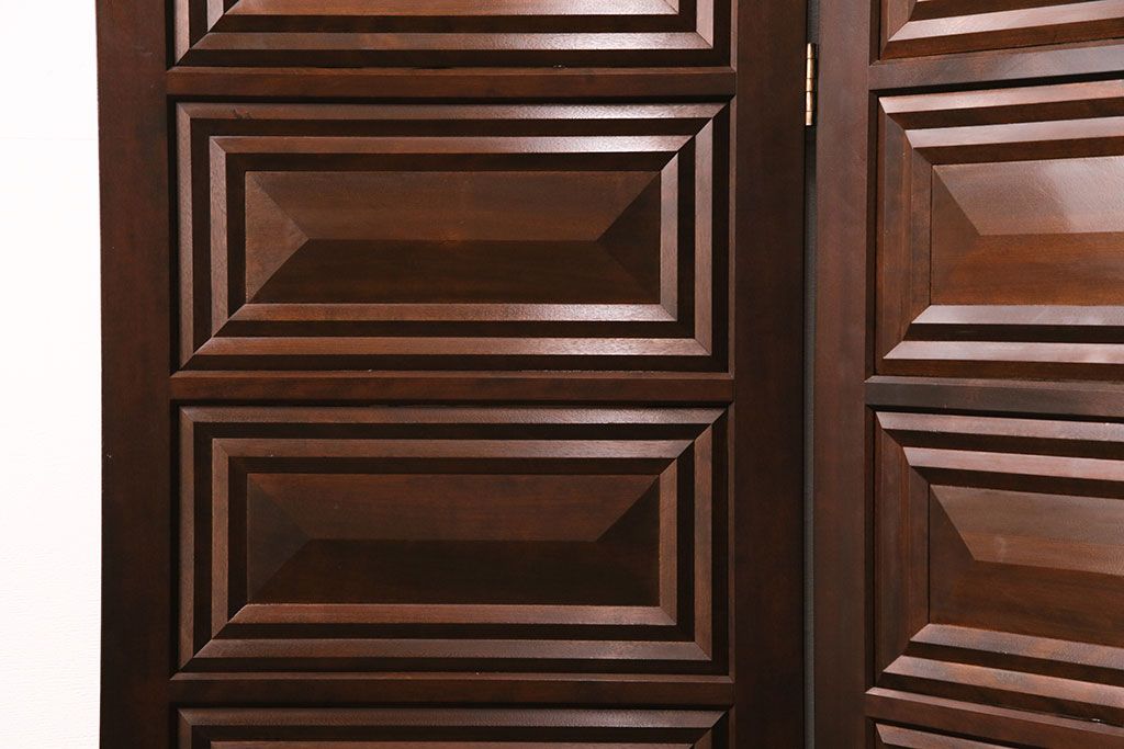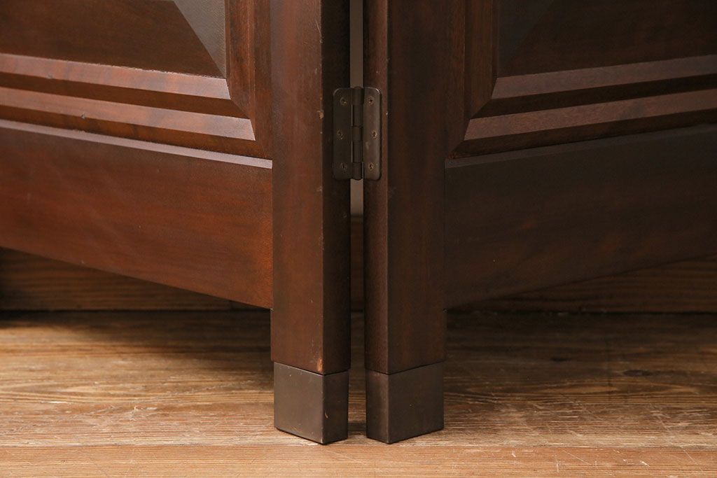 衝立・パーテーション> 折りたたみパーテーション > 中古 松本民芸家具 激レア!クラシカルなデザインが高級感を演出するA型衝立(定価約83万円)(四連パーテーション、つい立て)(R-049318)