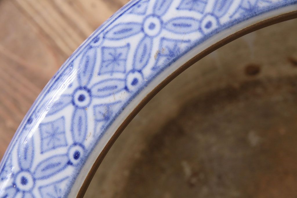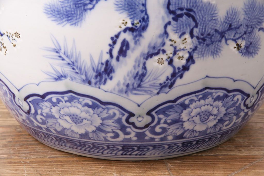 アンティーク雑貨 松竹梅の図 縁起の良い図柄が魅力!和の風情を感じる瀬戸火鉢(鉢カバー)(R-049362)です。