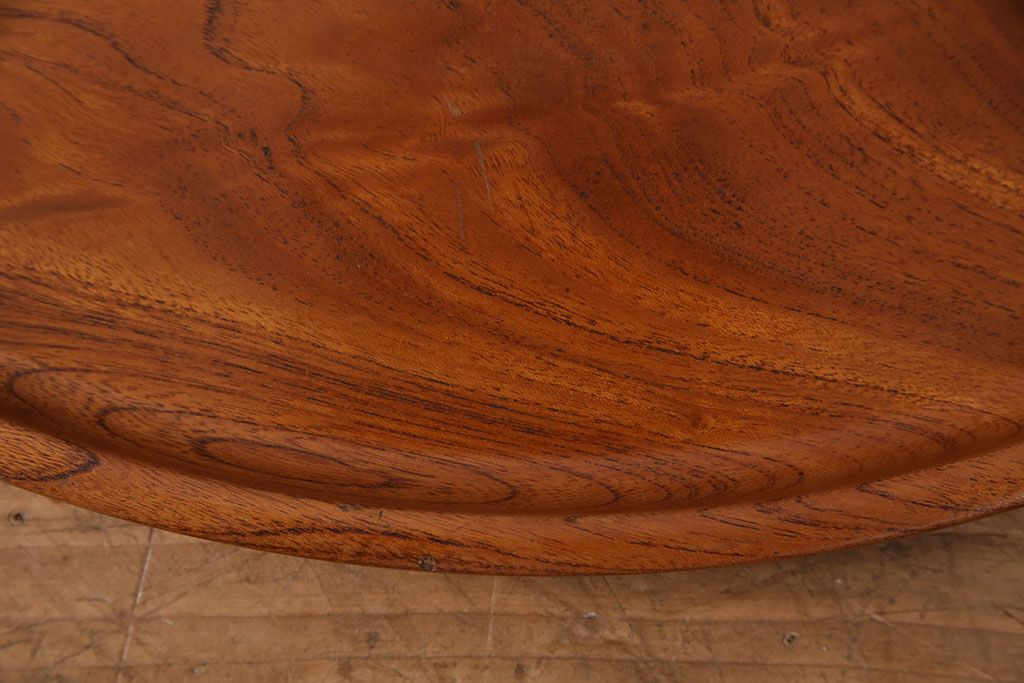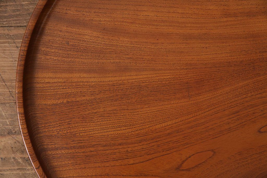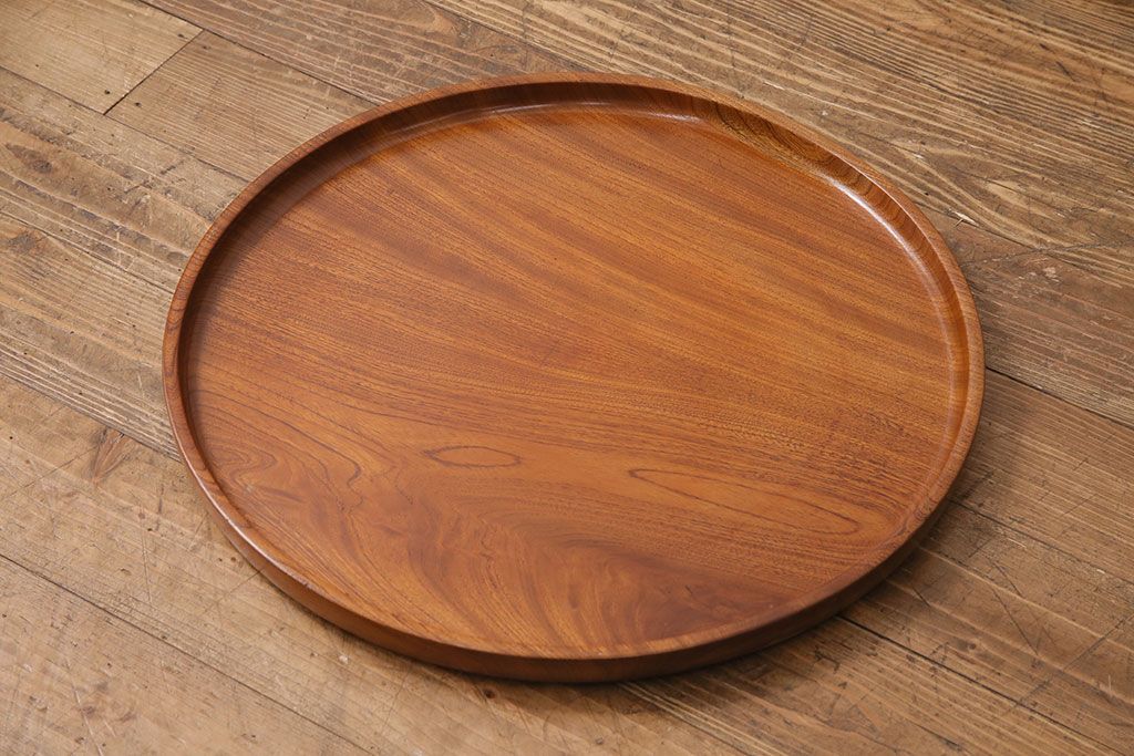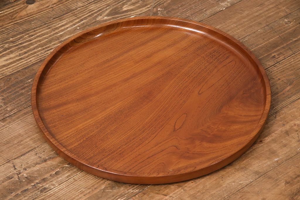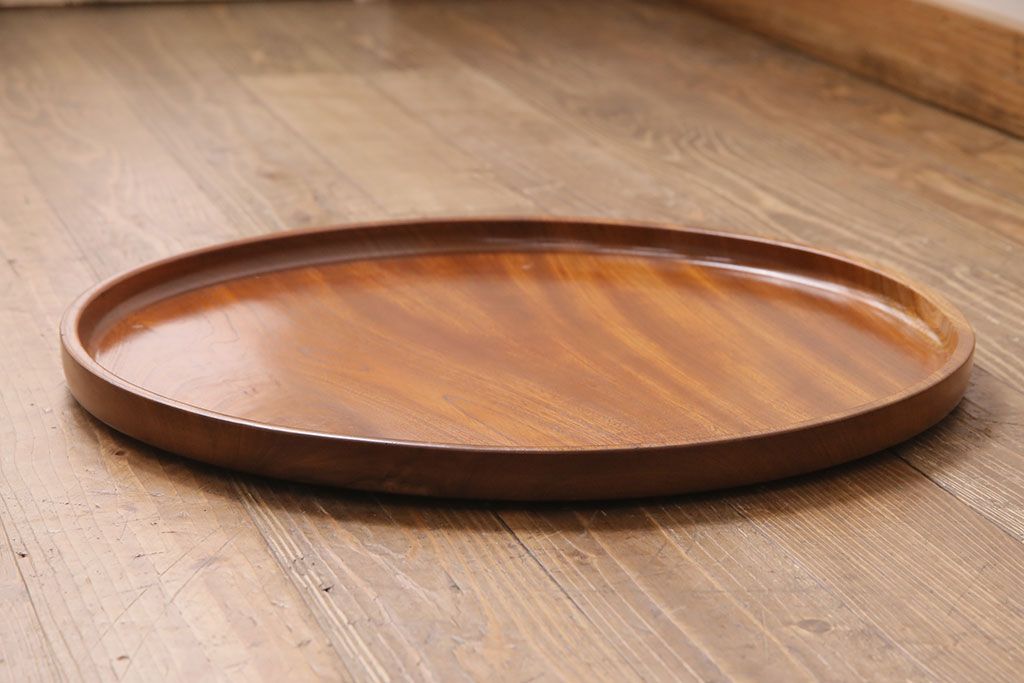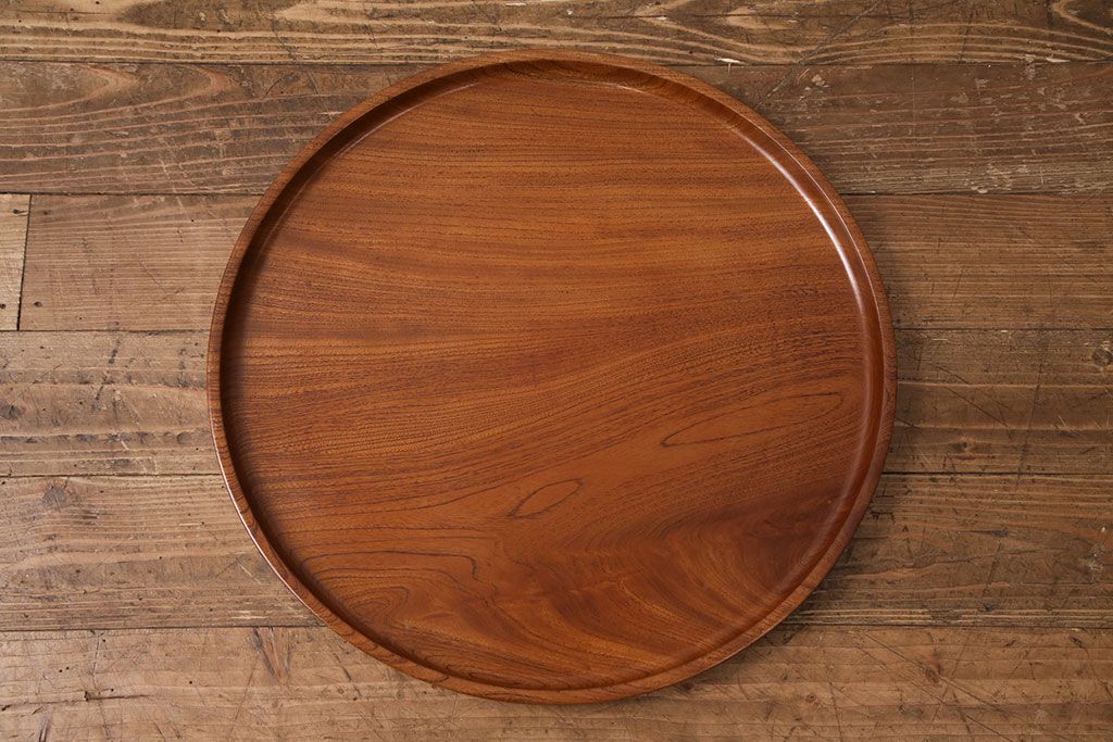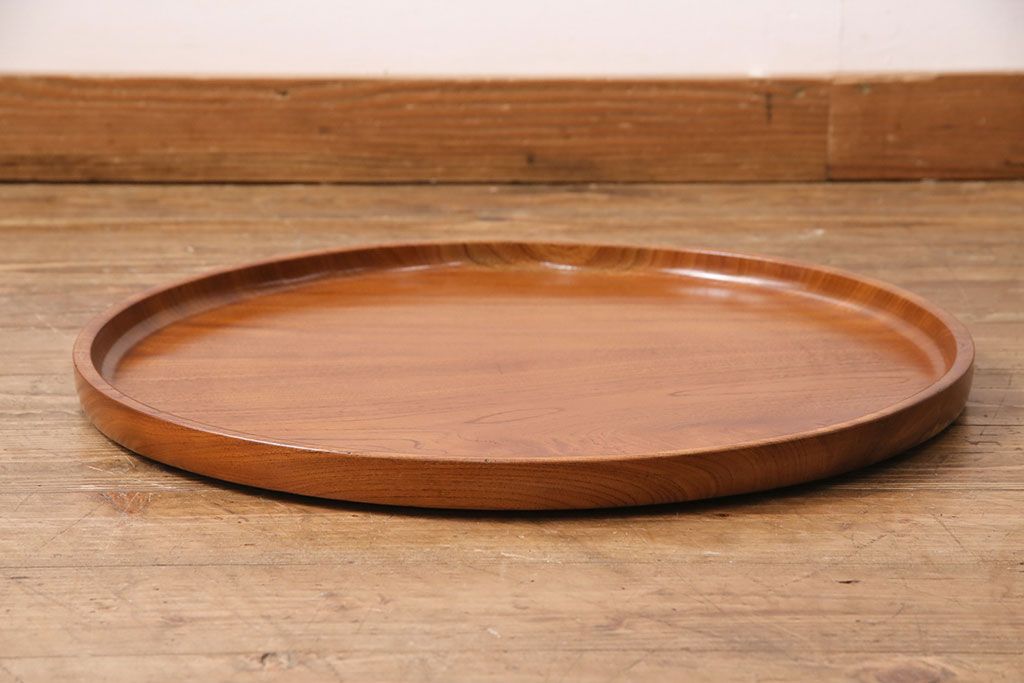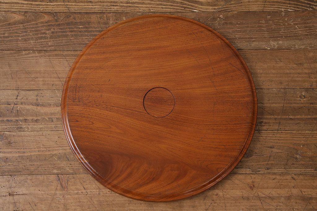 昭和後期頃につくられた総ケヤキ材製の丸盆です。