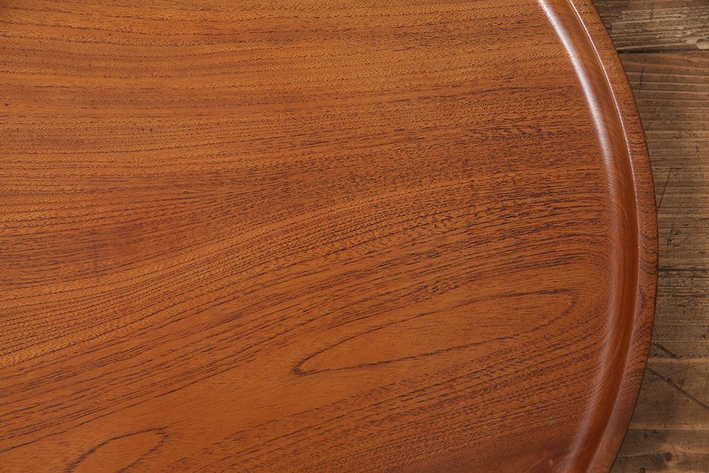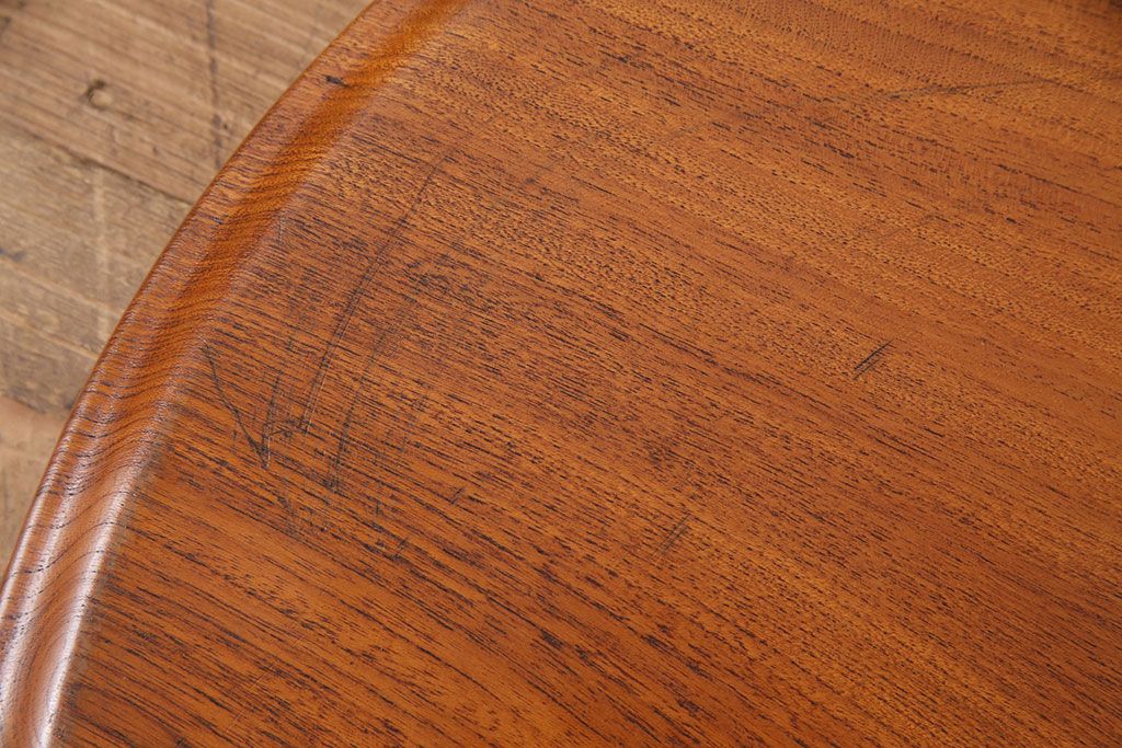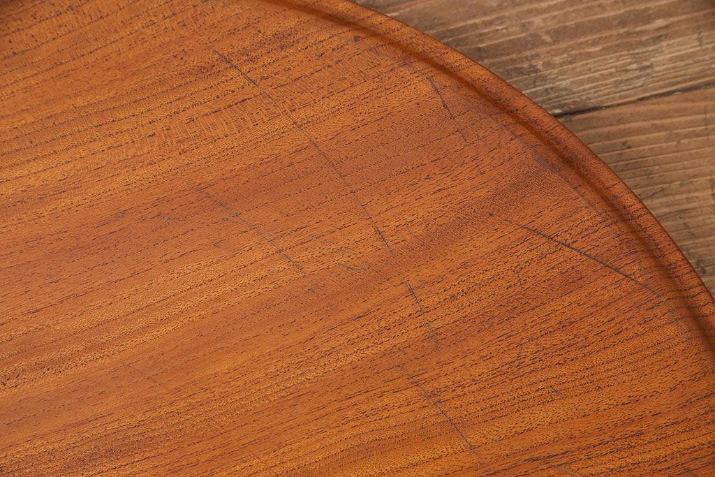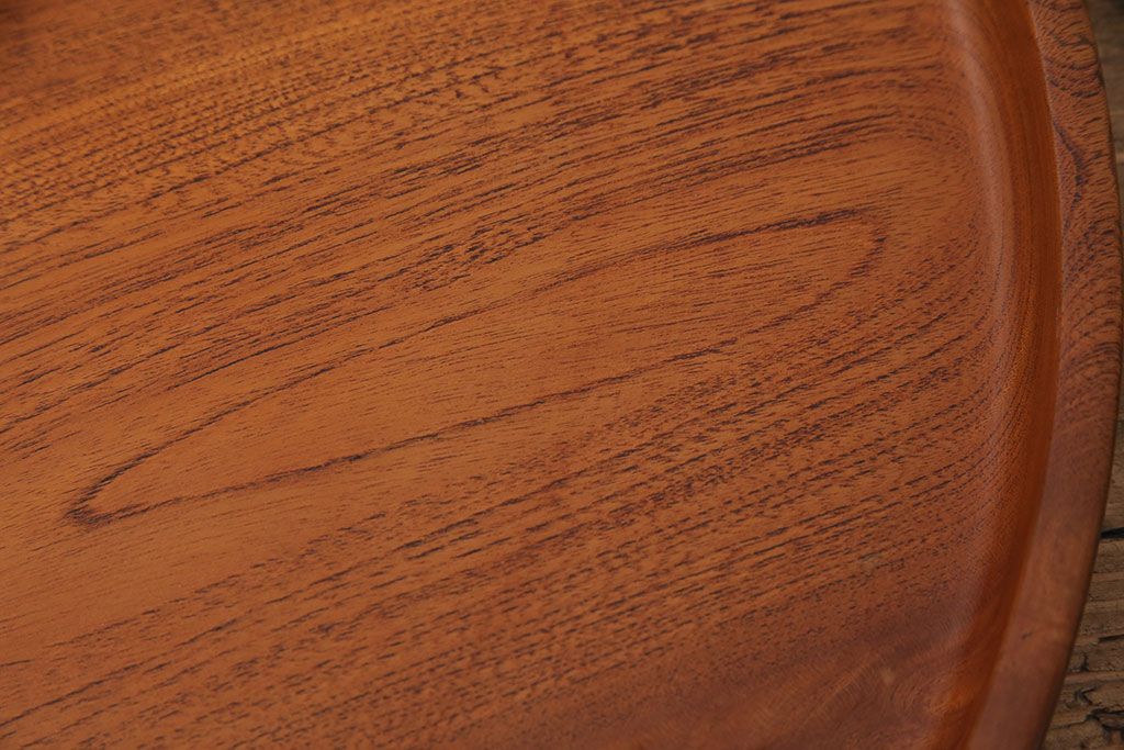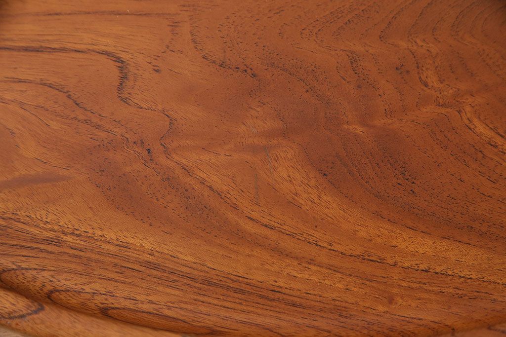 ヴィンテージ雑貨 昭和後期 総ケヤキ材 明るい木色と優しい杢目が味わい深い丸盆(トレー、お盆、ビンテージ)(R-049373)