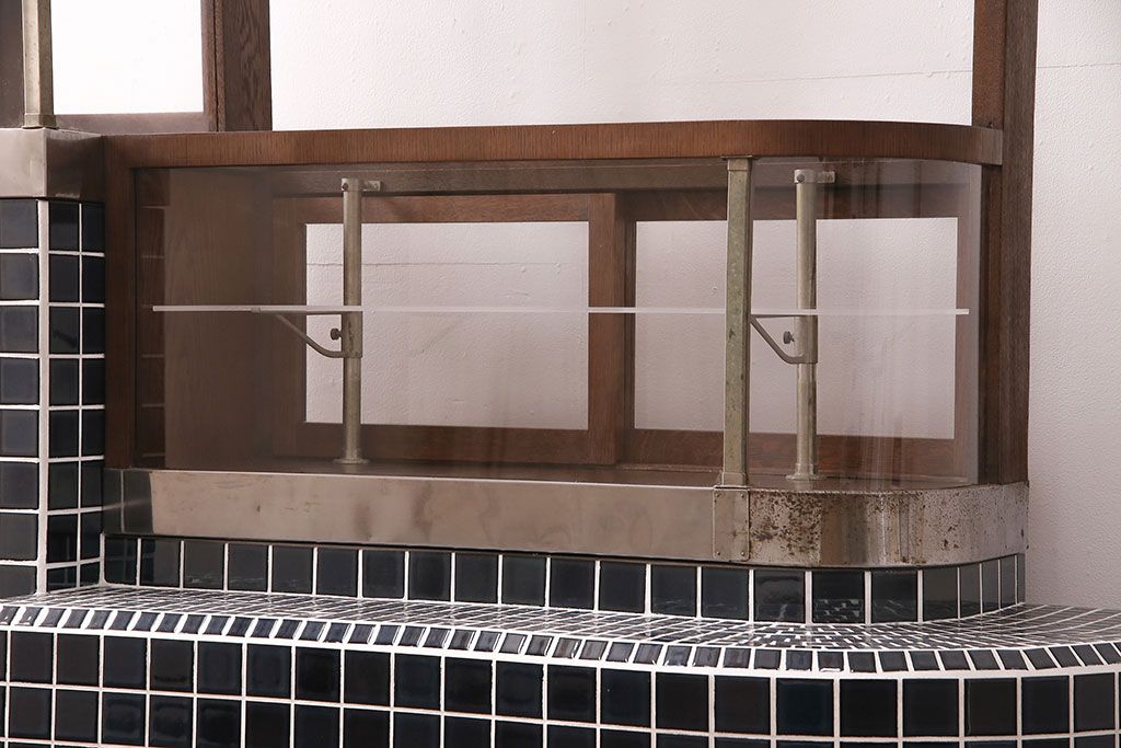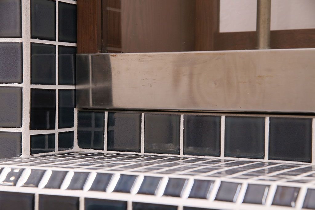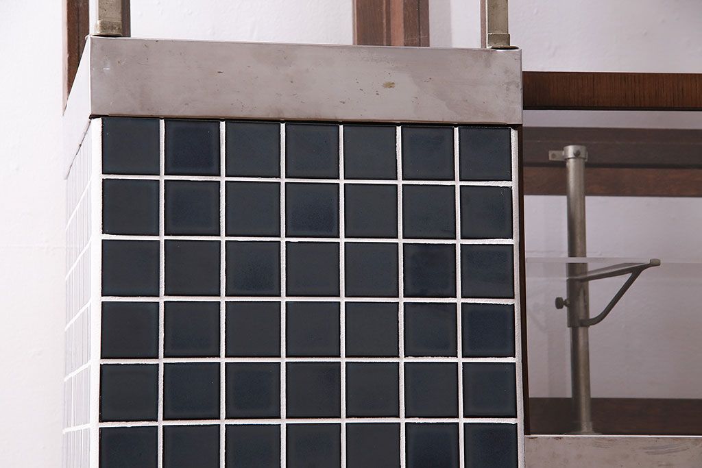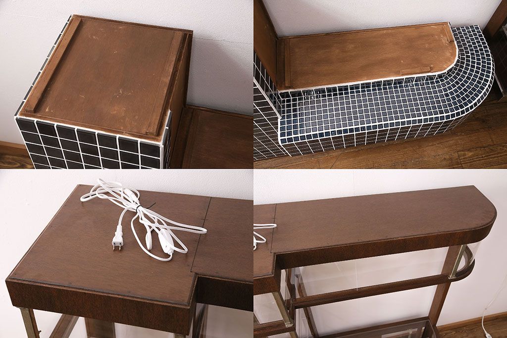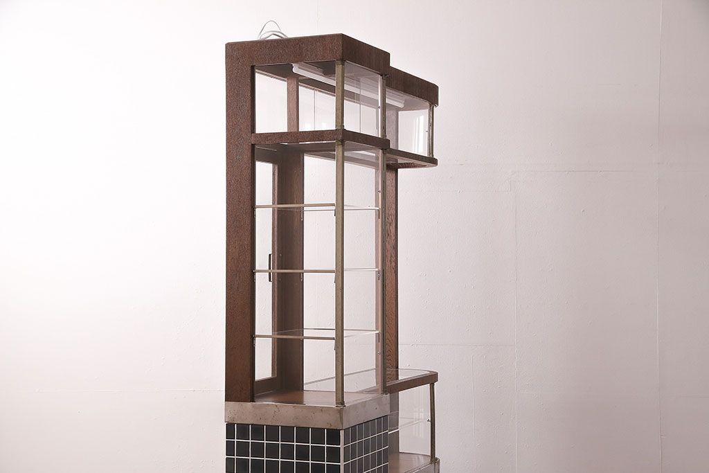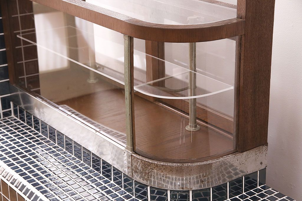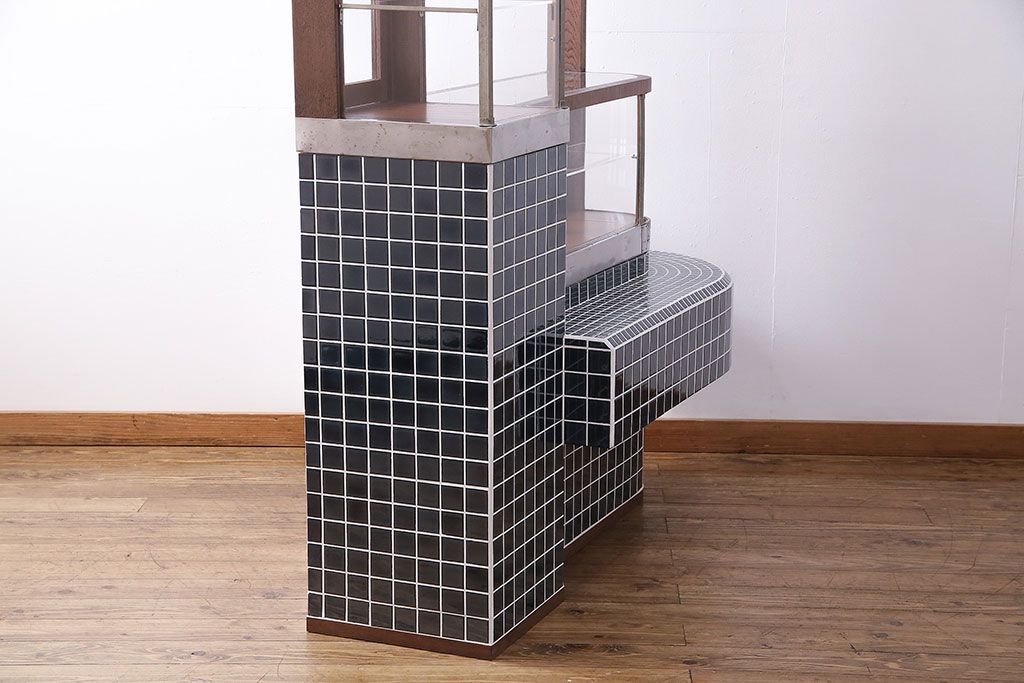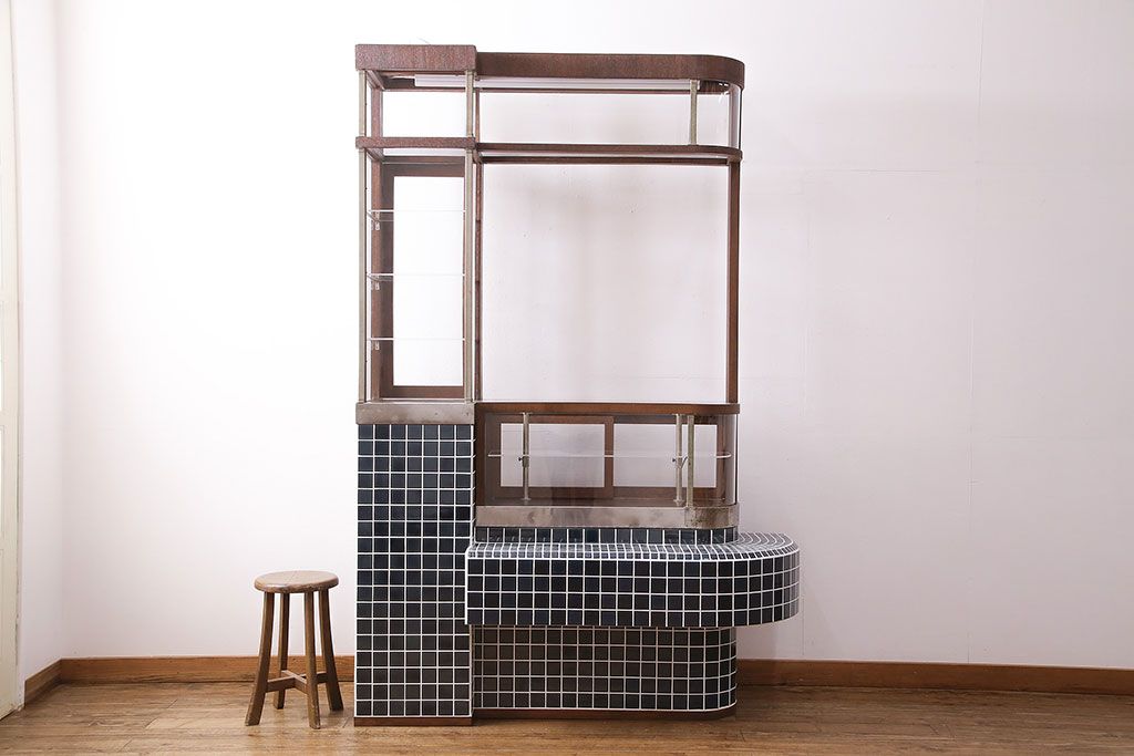 ガラスケース・ショーケース > 煙草屋さんのガラスケースをリペア&カスタム!タイル張りのカウンター付き土台を新たに製作。ガラスはアクリル板へ差し替え。上部に照明を取り付け。(ショーケース、陳列棚、たばこ屋、タバコ屋)