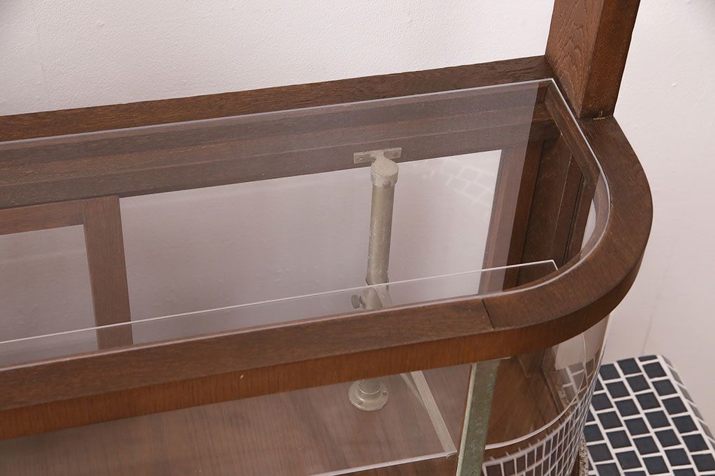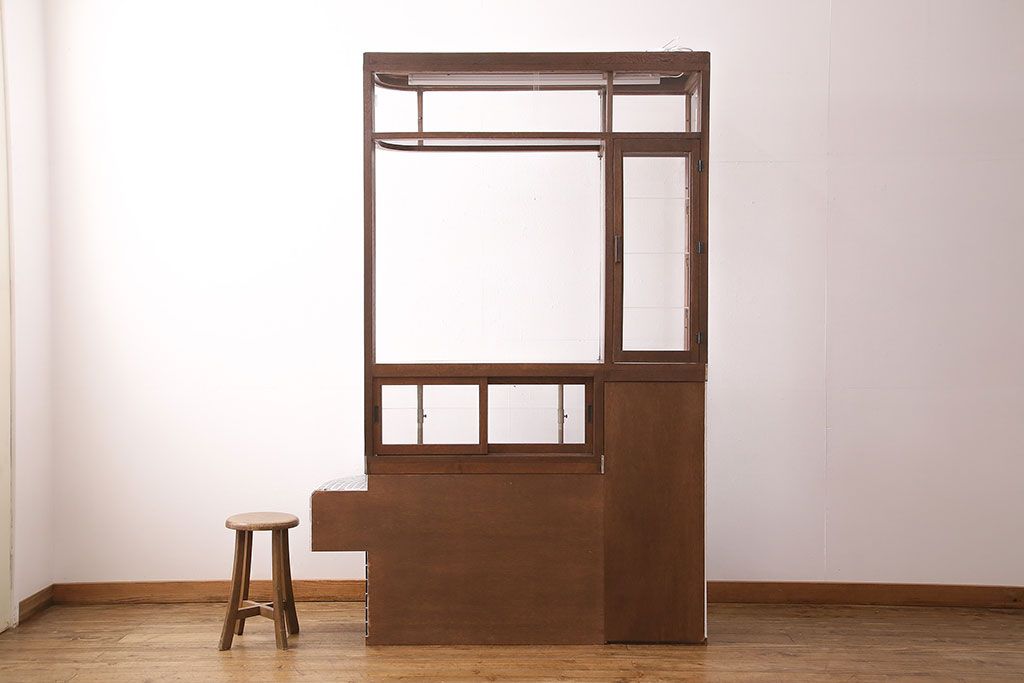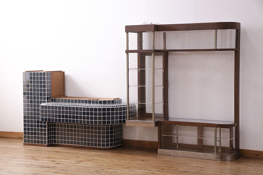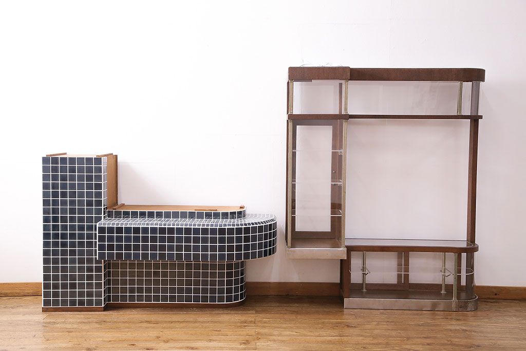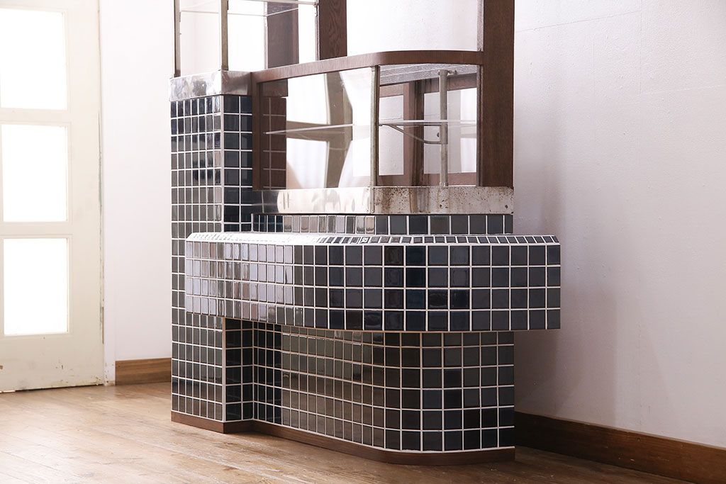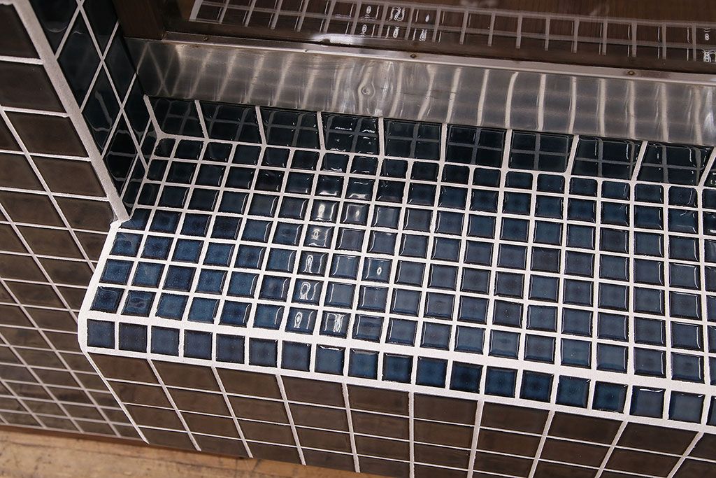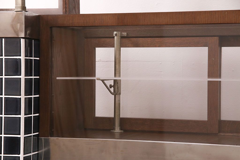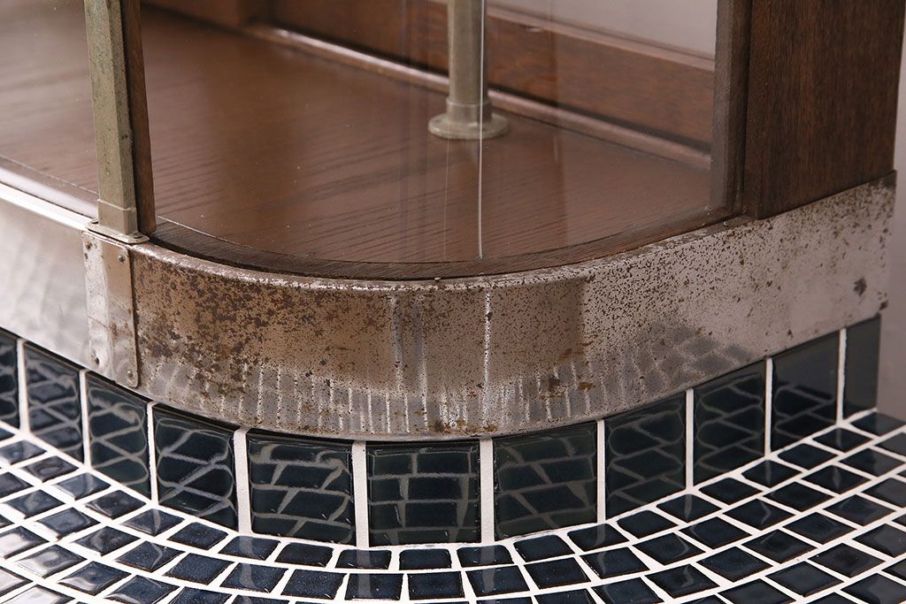 ガラスケース・ショーケース > 煙草屋さんのガラスケースをリペア&カスタム!タイル張りのカウンター付き土台を新たに製作。ガラスはアクリル板へ差し替え。上部に照明を取り付け。(ショーケース、陳列棚、たばこ屋、タバコ屋)
