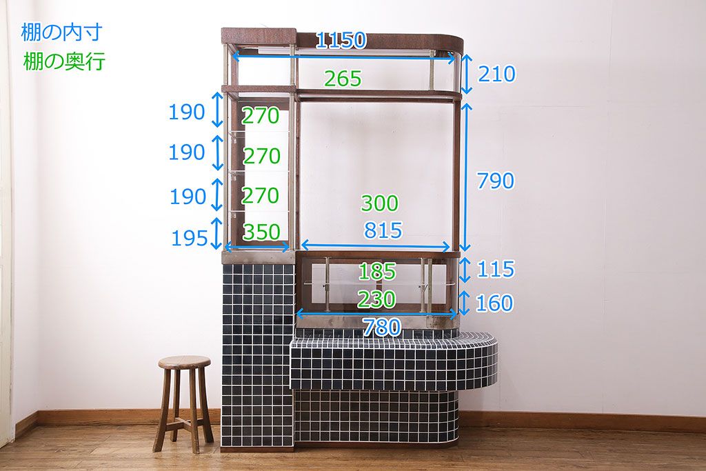 棚の内寸は3枚目の画像に記載しておりますのでそちらをご参考ください。
