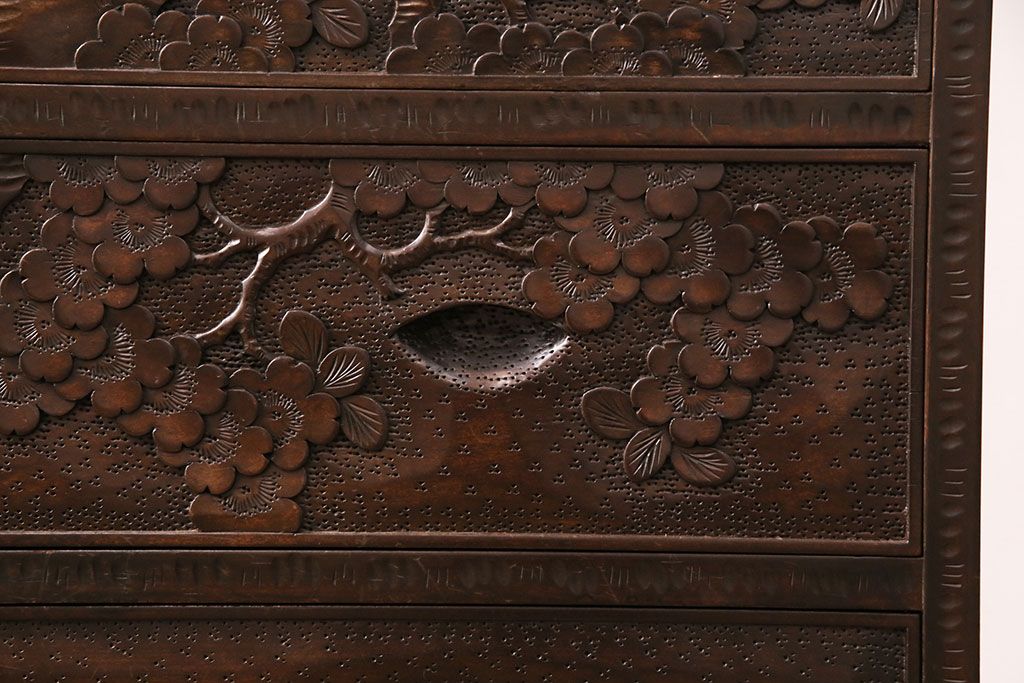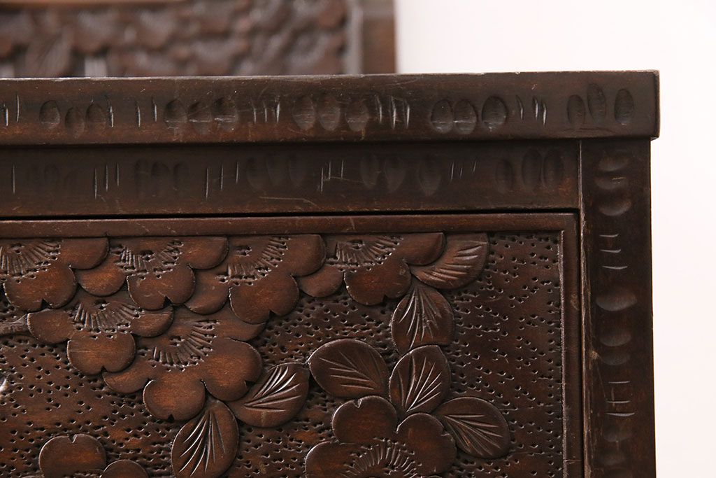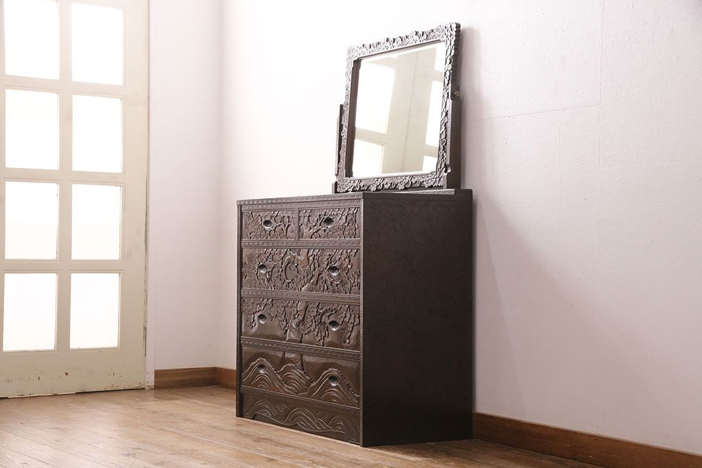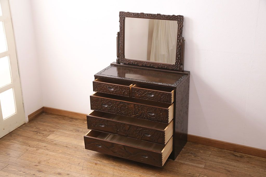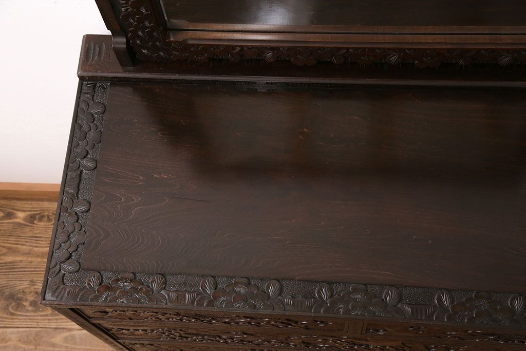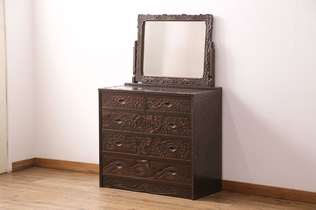 中古 伝統工芸 軽井沢彫り 咲き誇る桜の彫刻が美しいドレッシングチェスト(ドレッサー、鏡台、引き出し)(R-049377)です。