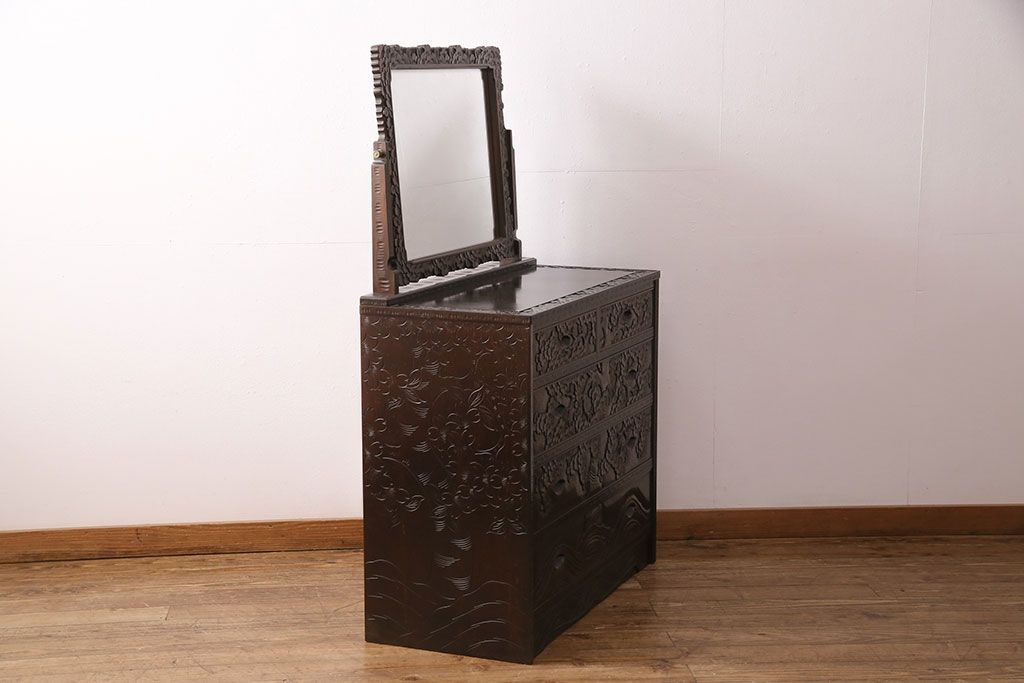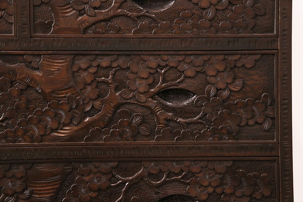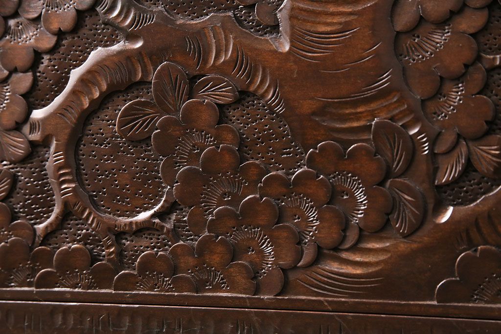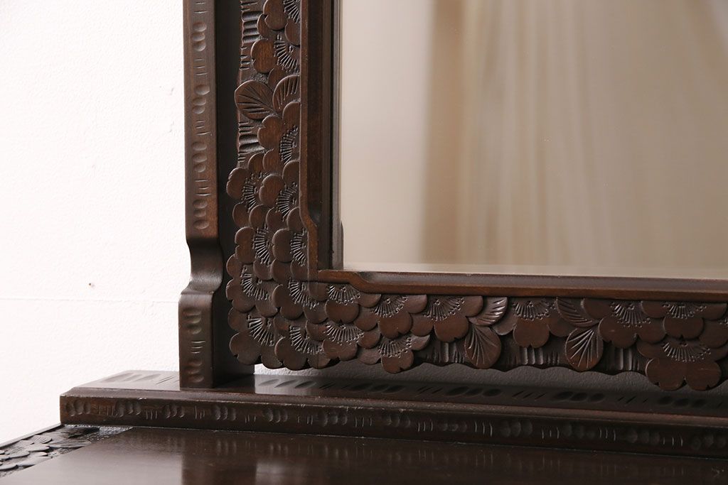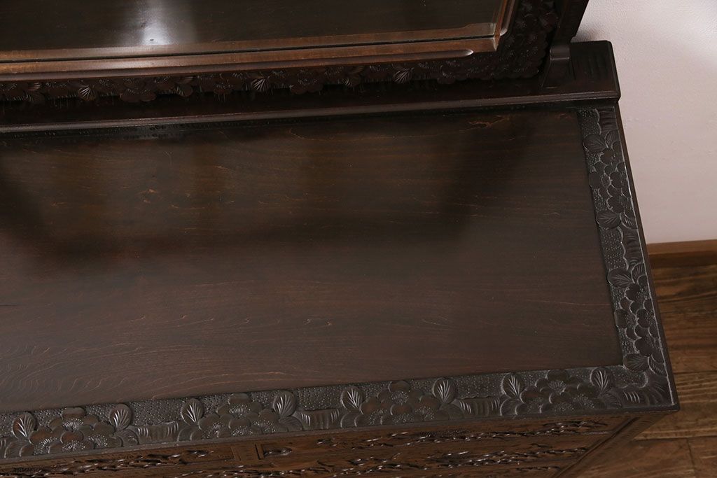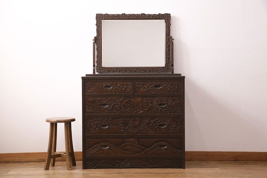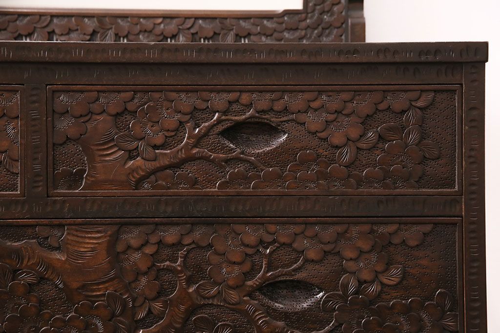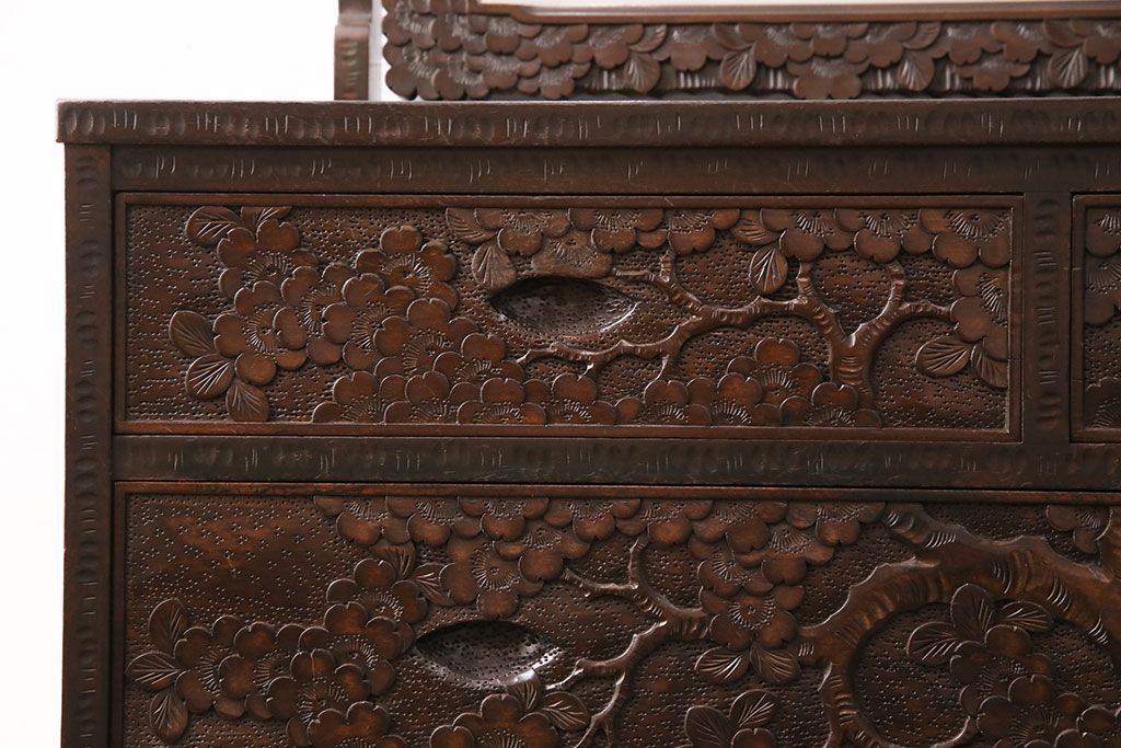 中古 伝統工芸 軽井沢彫り 咲き誇る桜の彫刻が美しいドレッシングチェスト(ドレッサー、鏡台、引き出し)(R-049377)