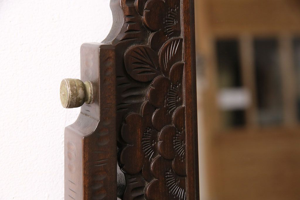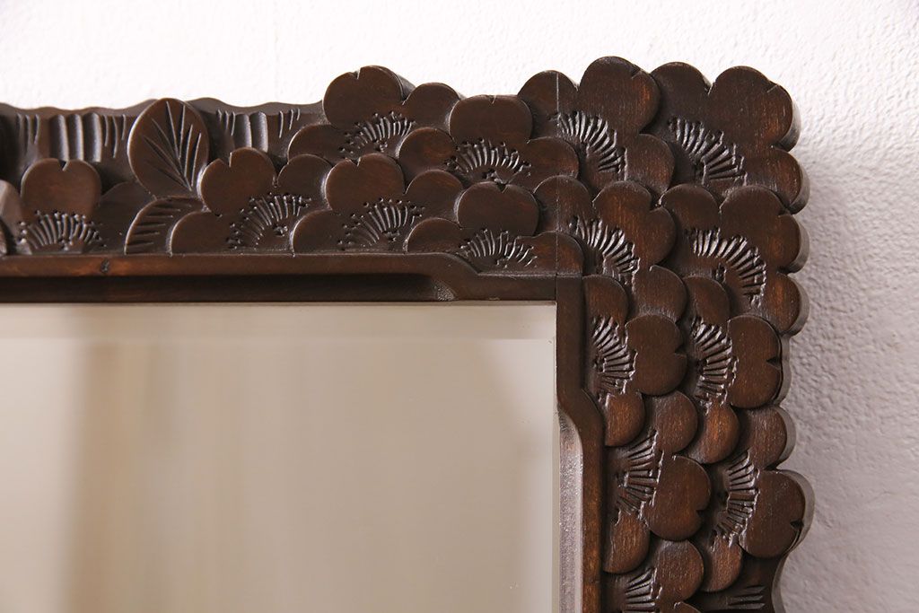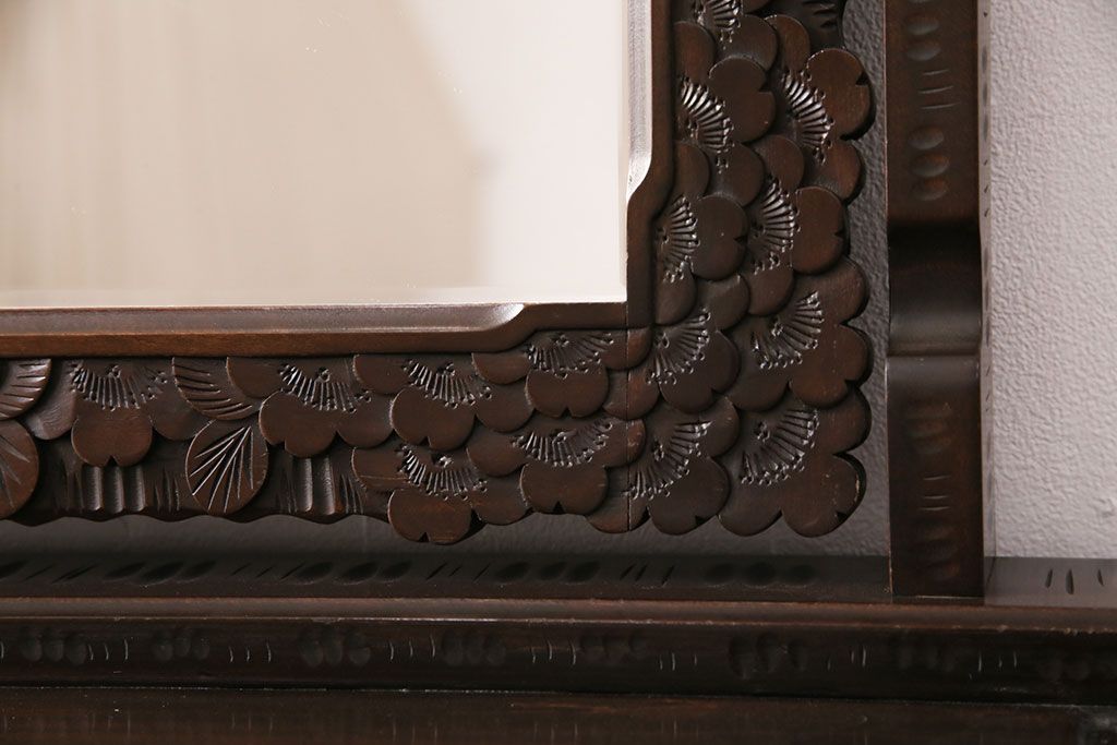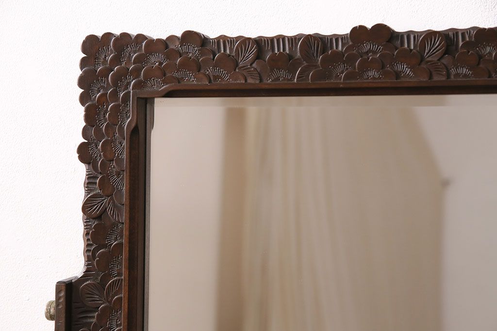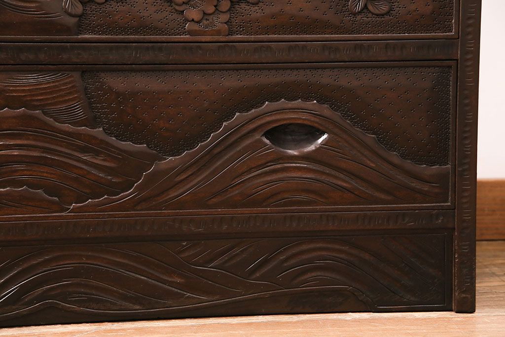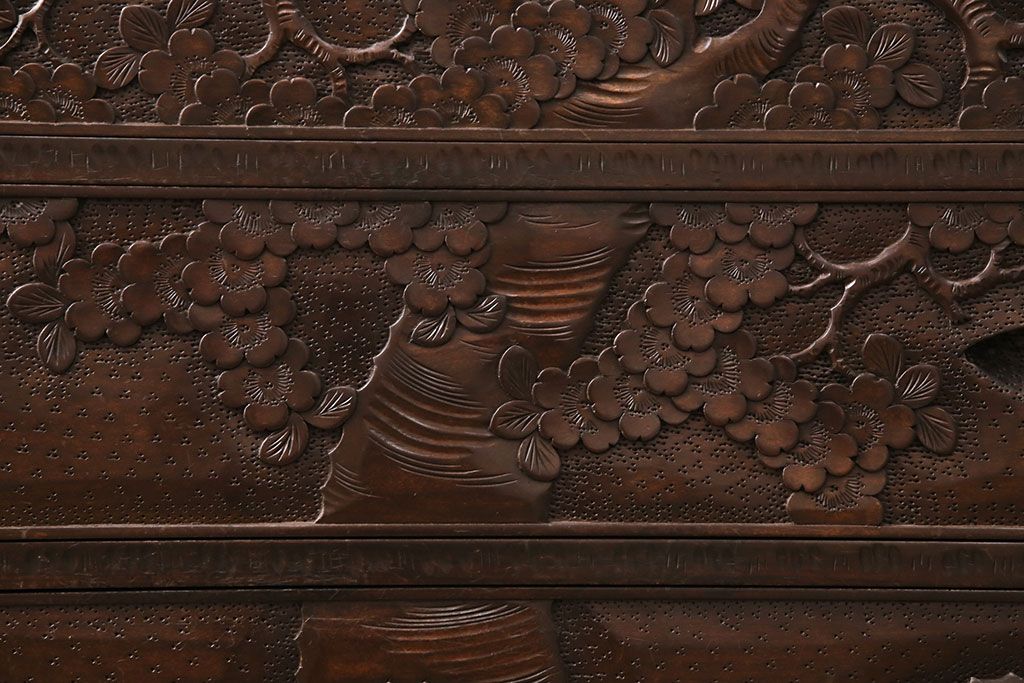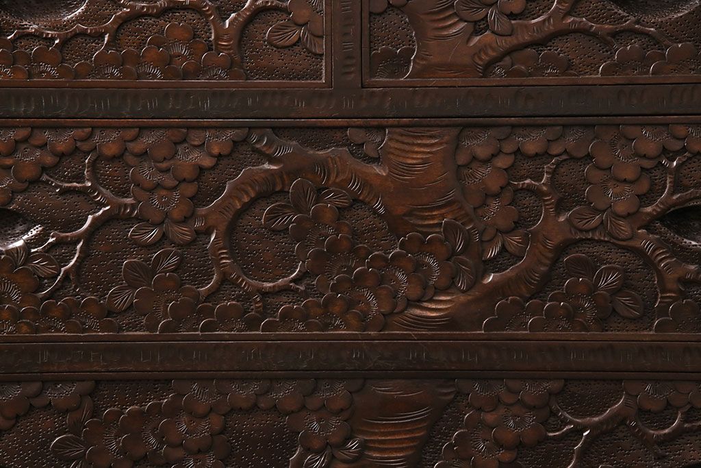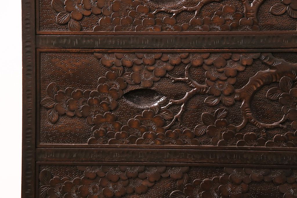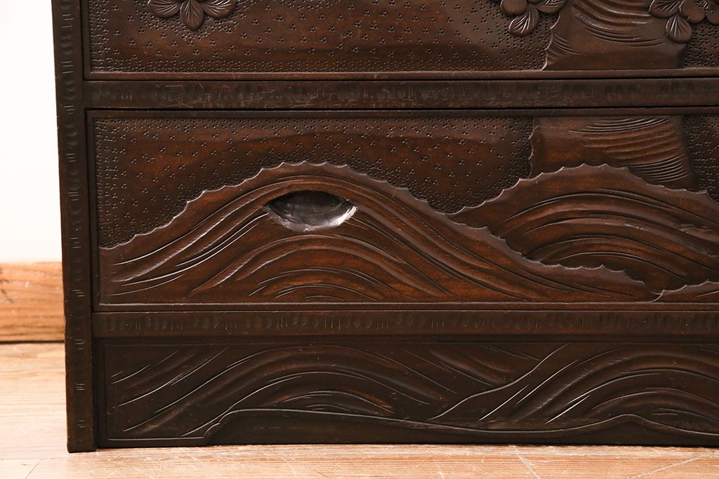 中古 伝統工芸 軽井沢彫り 咲き誇る桜の彫刻が美しいドレッシングチェスト(ドレッサー、鏡台、引き出し)(R-049377)