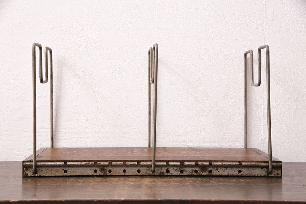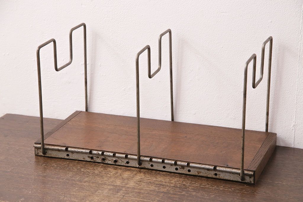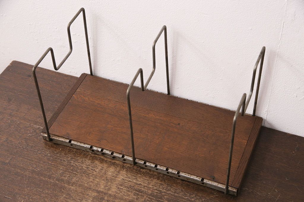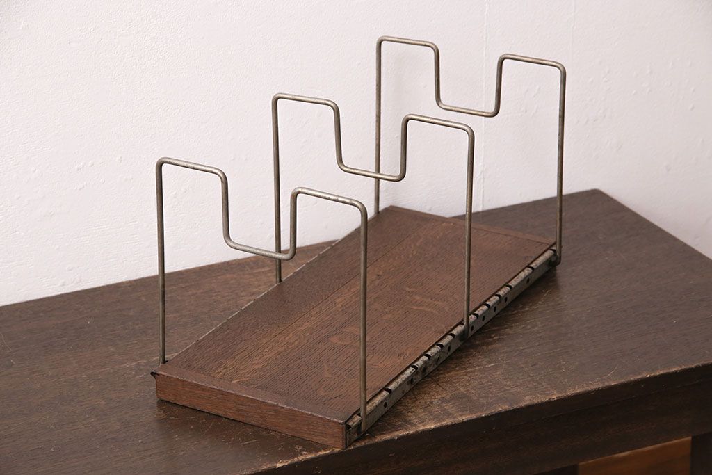 和製アンティーク 昭和中期 ナラ材 アイアンの質感がかっこいい!レトロな雰囲気漂う本立て(ブックスタンド)(R-049379)