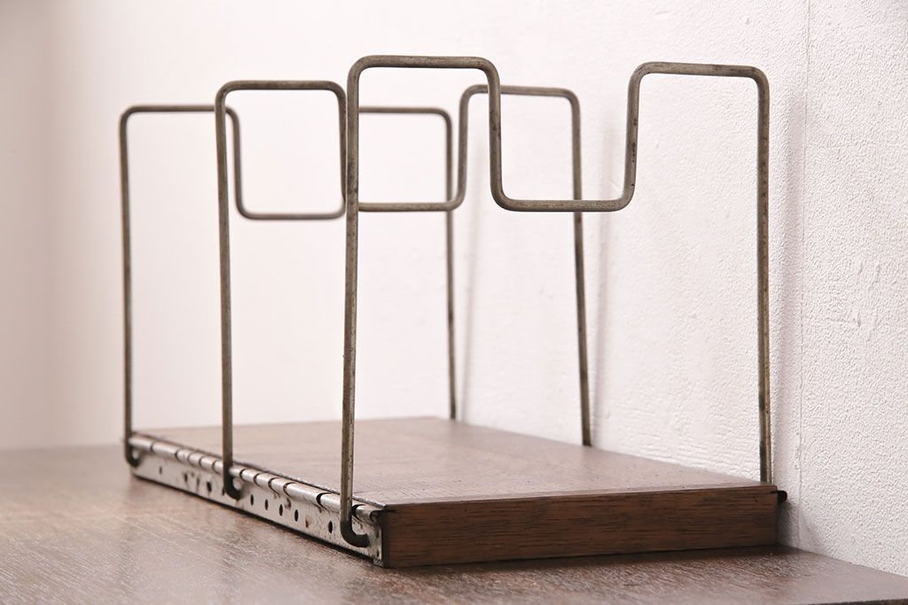 小物収納・トランク > 和製アンティーク 昭和中期 ナラ材 アイアンの質感がかっこいい!レトロな雰囲気漂う本立て(ブックスタンド)(R-049379)