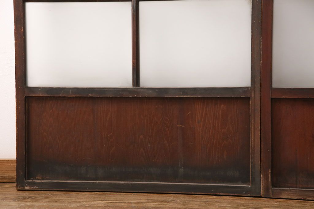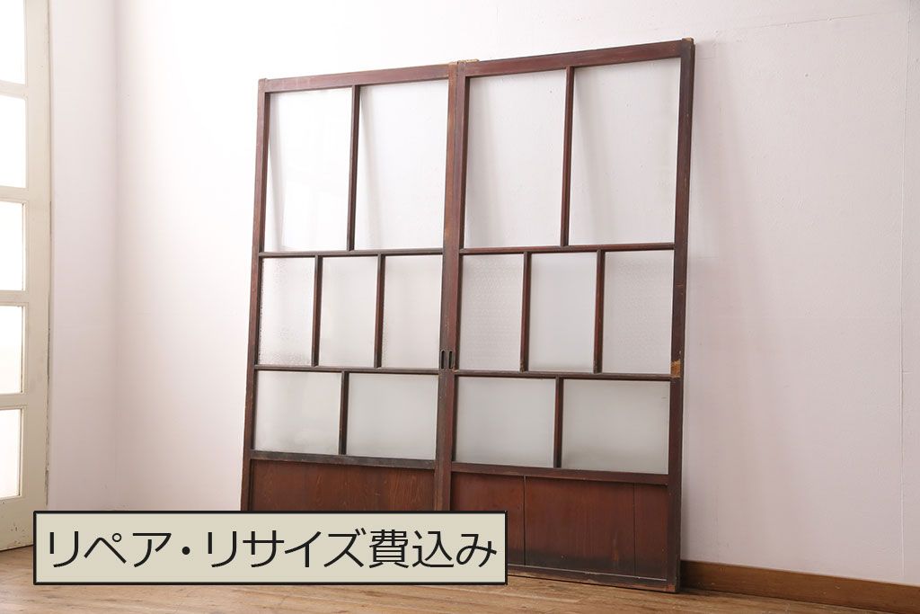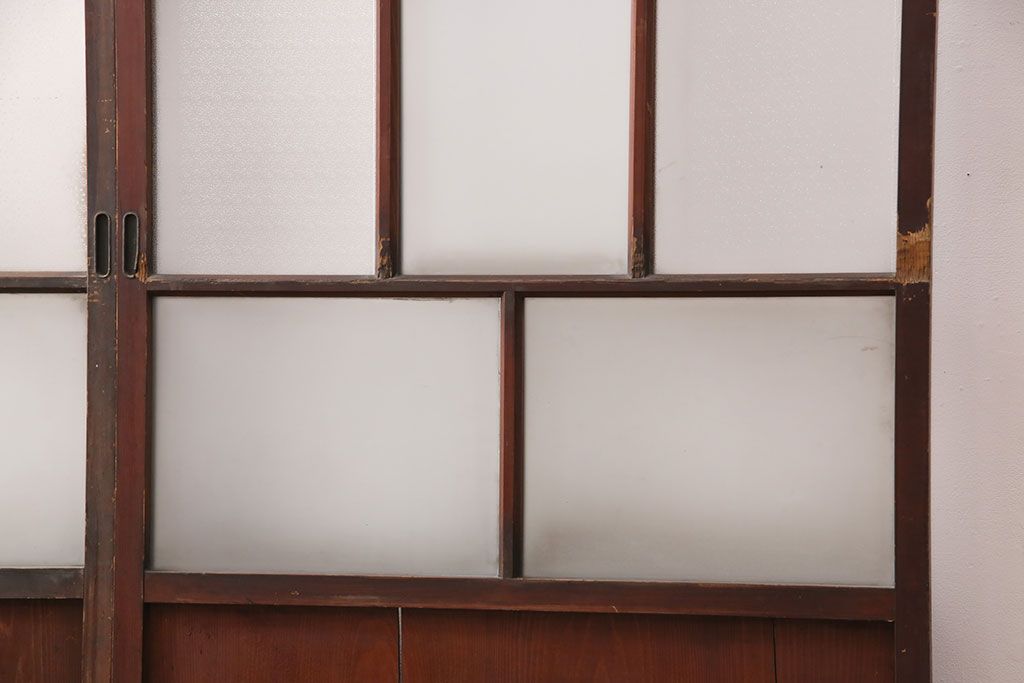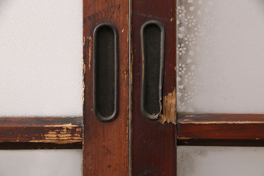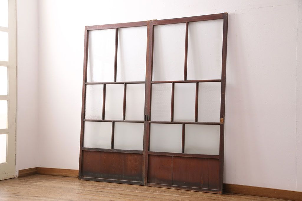 昭和レトロ すりガラス・ダイヤガラス・クリアガラス 花柄のガラスがレトロな雰囲気を高めるガラス戸2枚セット(引き戸、建具)(R-049225)