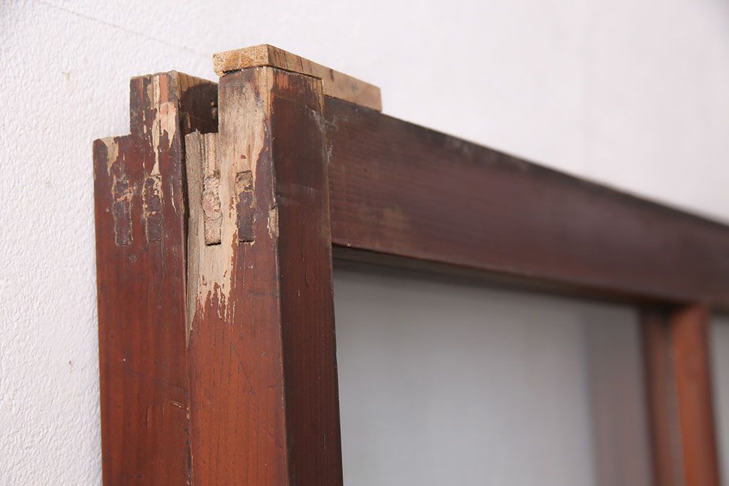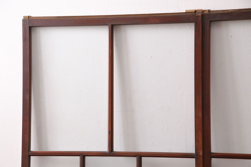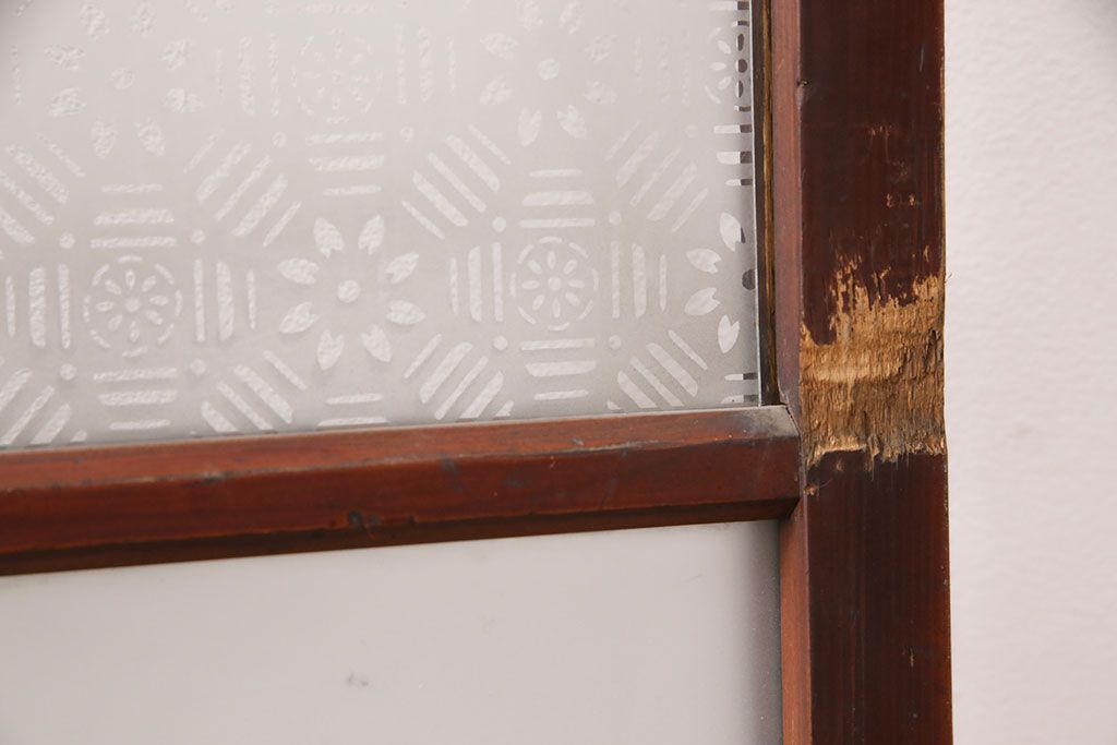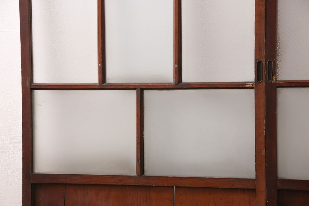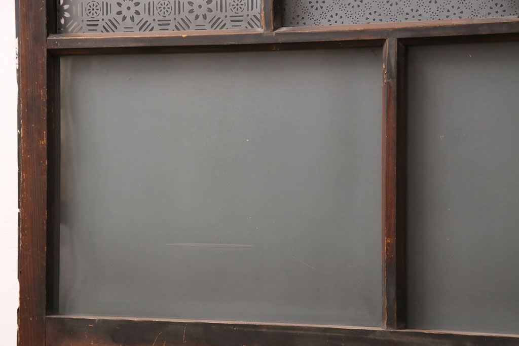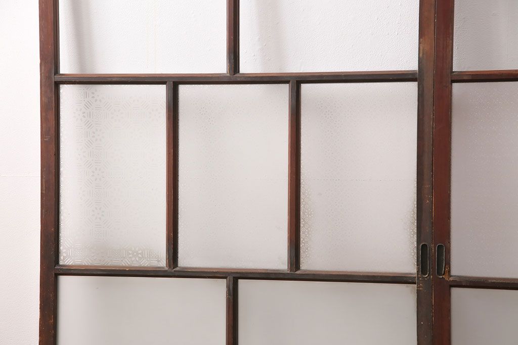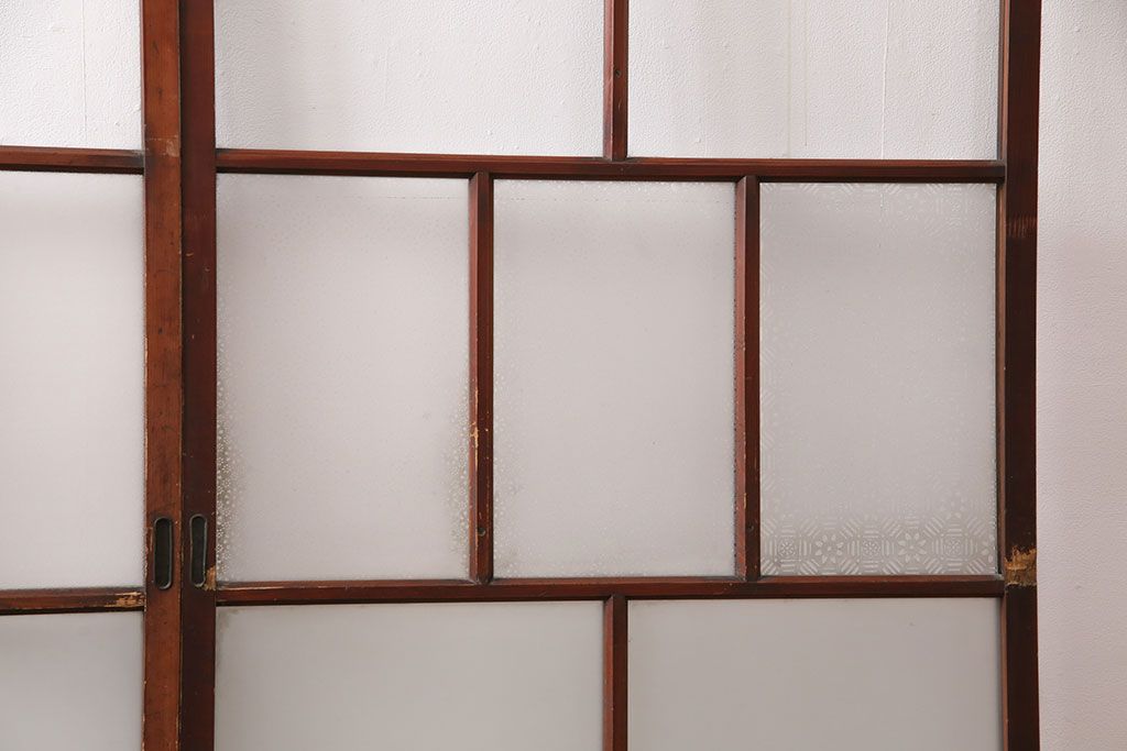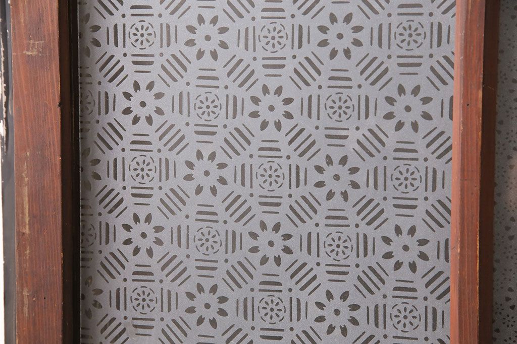 ドア・建具> ガラス戸 > 昭和レトロ すりガラス・ダイヤガラス・クリアガラス 花柄のガラスがレトロな雰囲気を高めるガラス戸2枚セット(引き戸、建具)(R-049225)