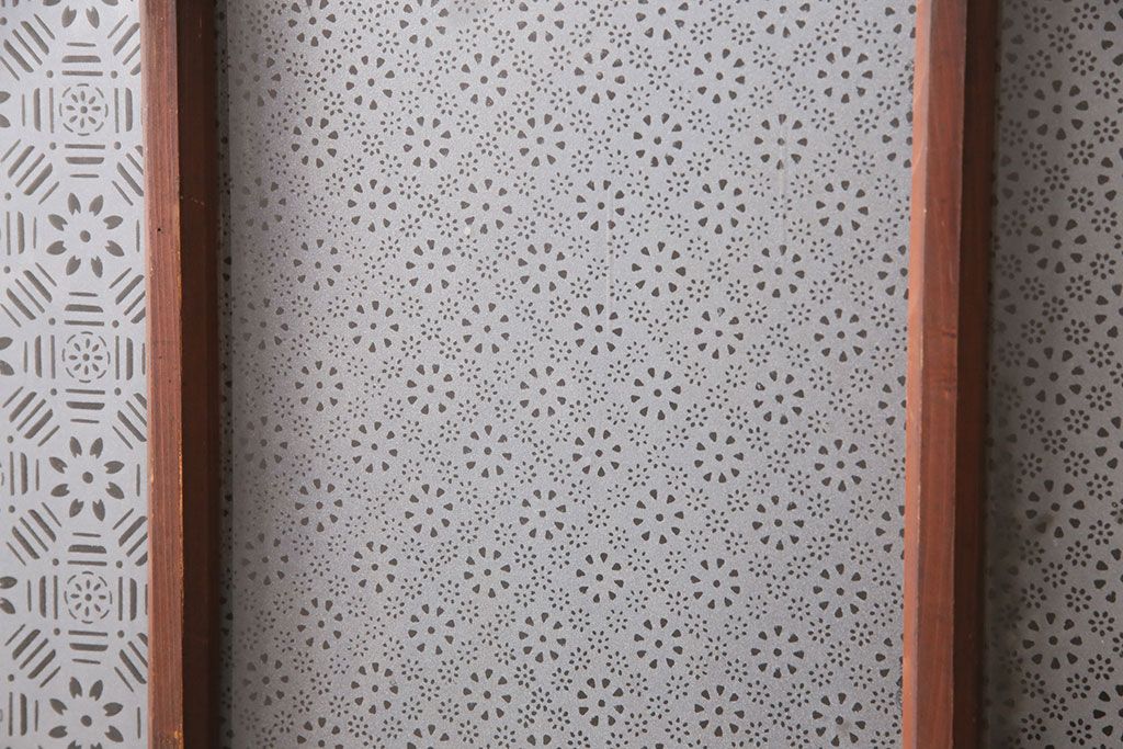 ドア・建具> 引き戸 > 昭和レトロ すりガラス・ダイヤガラス・クリアガラス 花柄のガラスがレトロな雰囲気を高めるガラス戸2枚セット(引き戸、建具)(R-049225)