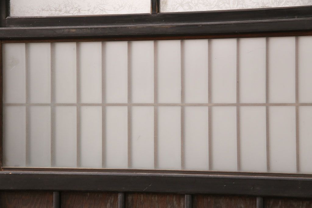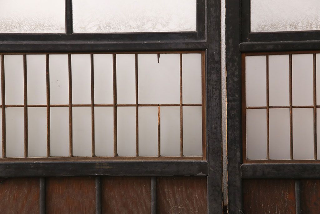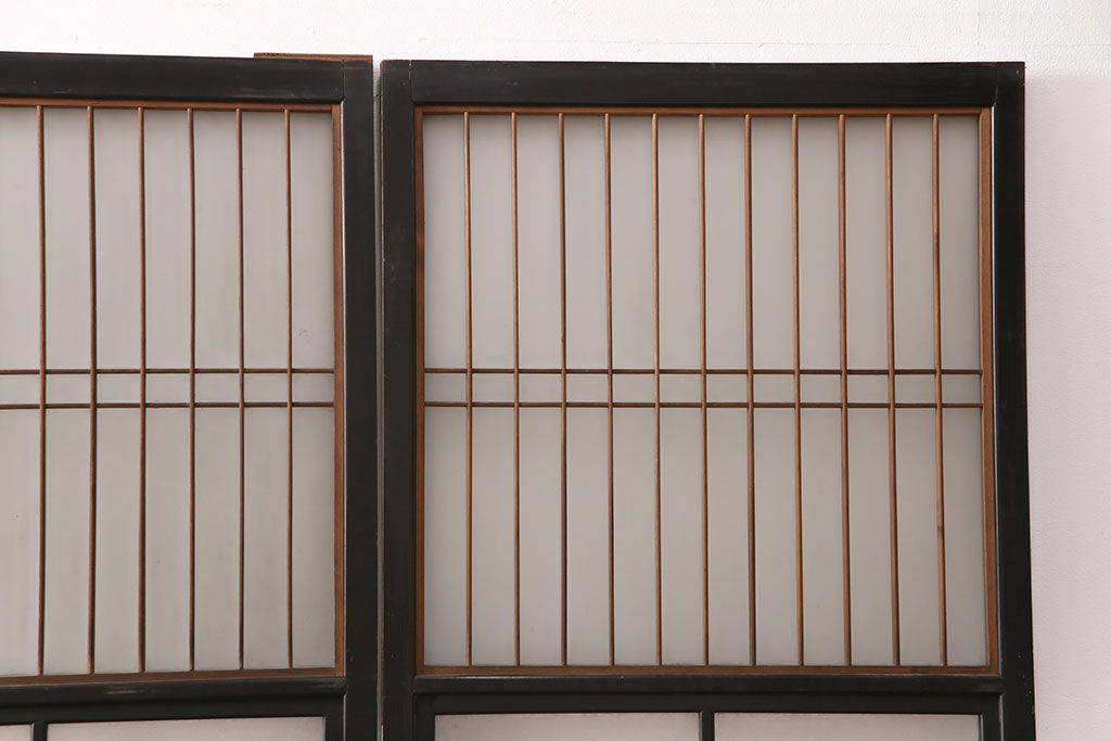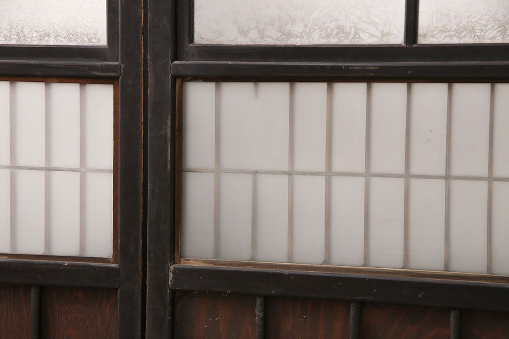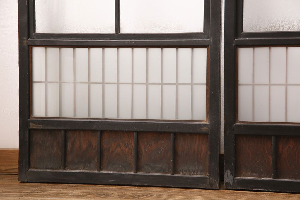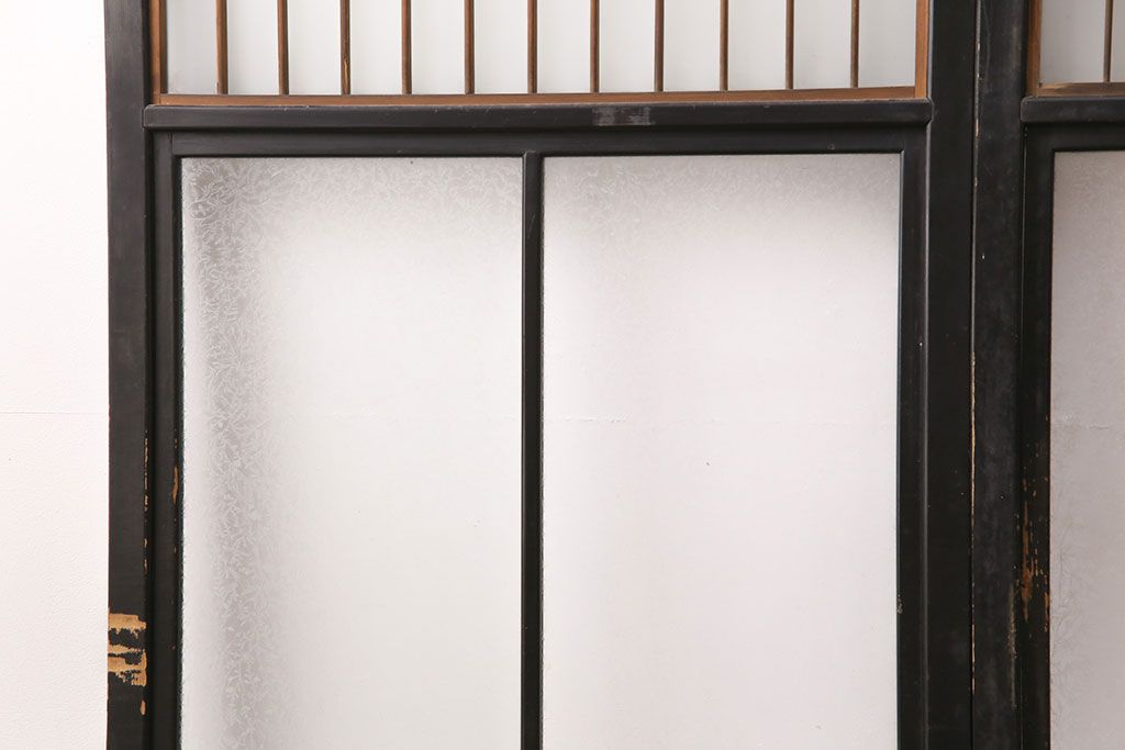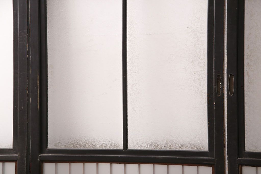 ドア・建具> 引き戸 > 和製アンティーク 昭和初期 結霜ガラス・すりガラス 黒い框がレトロな雰囲気を高めるスリムなガラス戸4枚セット(引き戸、建具)(R-049228)