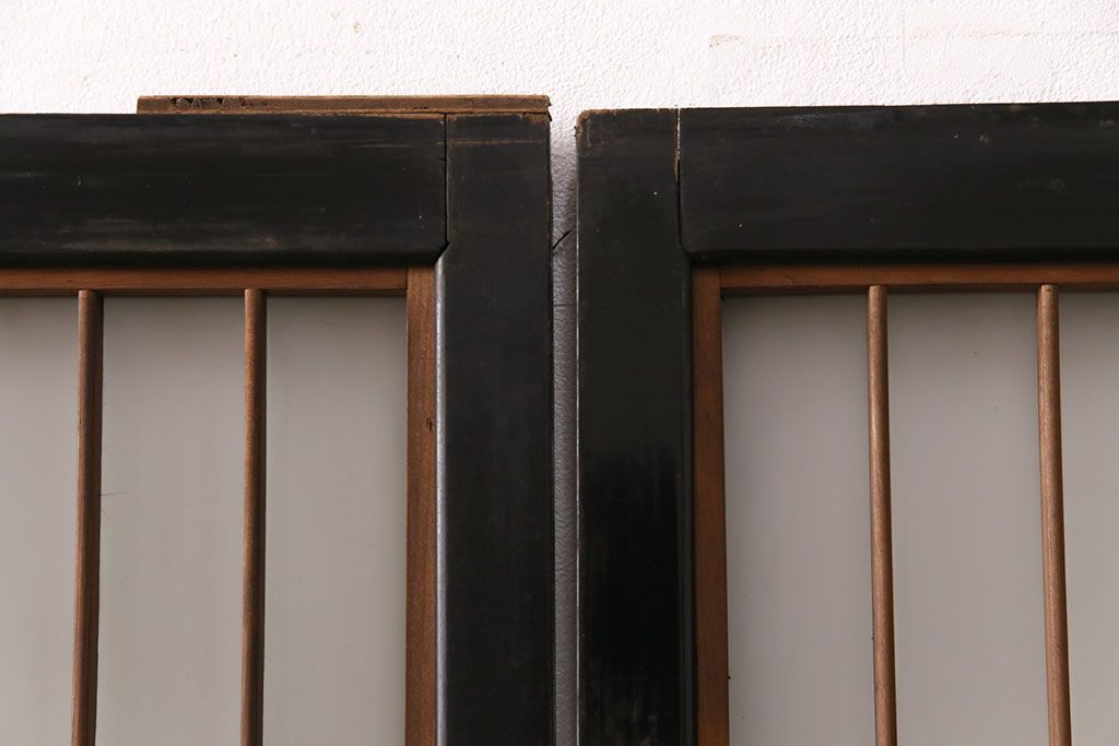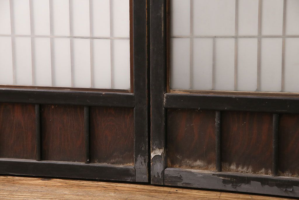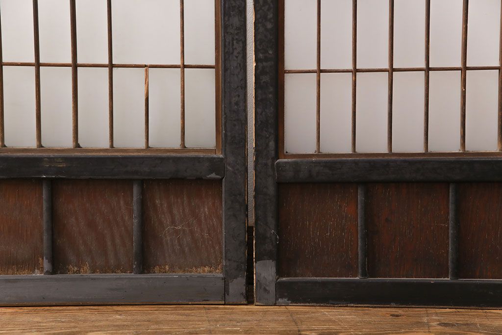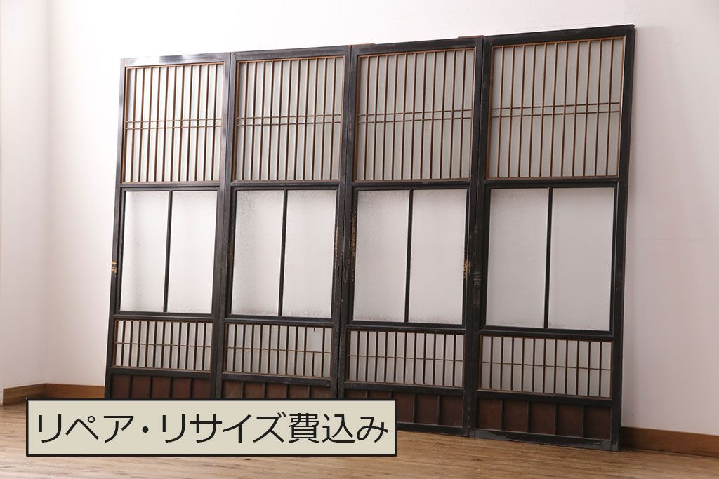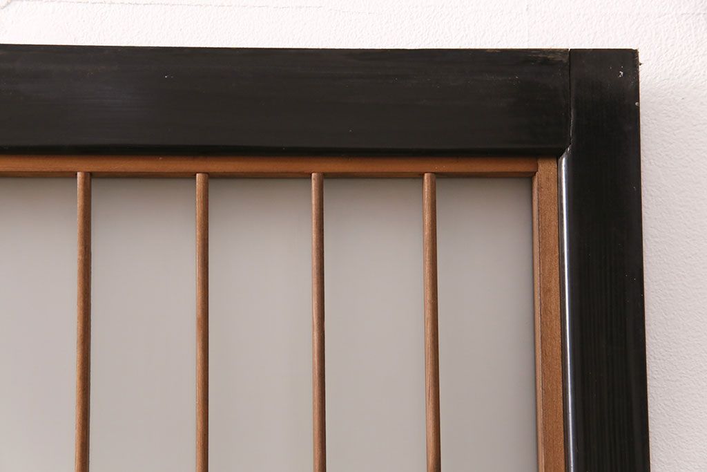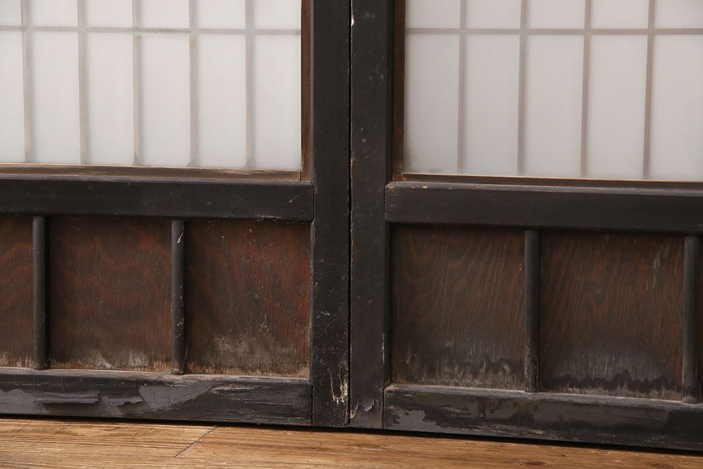ドア・建具> 引き戸 > 和製アンティーク 昭和初期 結霜ガラス・すりガラス 黒い框がレトロな雰囲気を高めるスリムなガラス戸4枚セット(引き戸、建具)(R-049228)