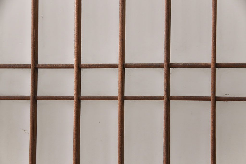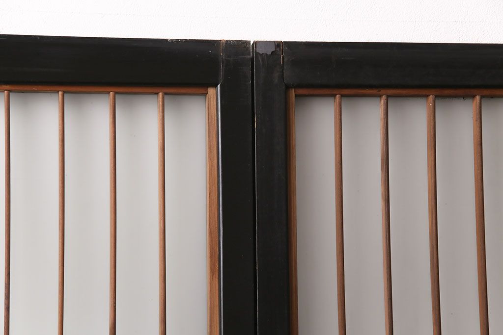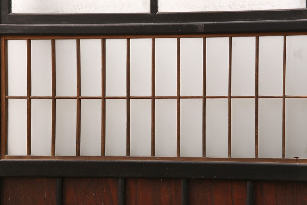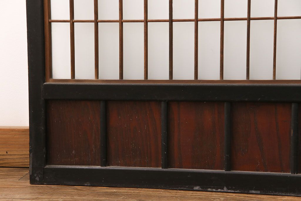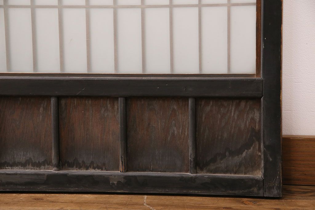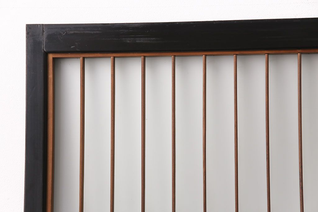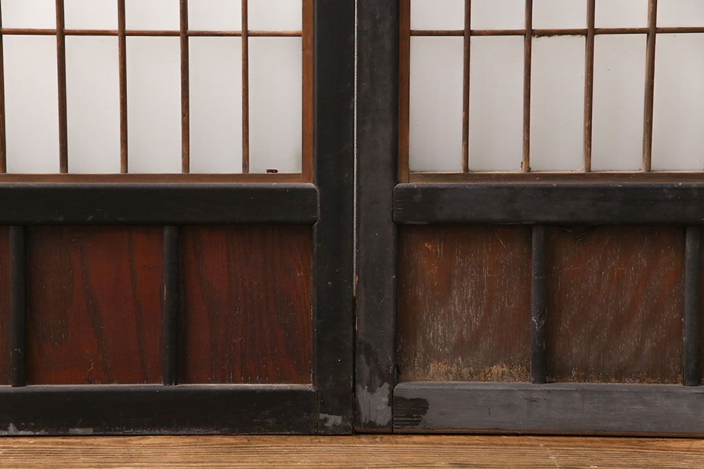 ドア・建具> 引き戸 > 和製アンティーク 昭和初期 結霜ガラス・すりガラス 黒い框がレトロな雰囲気を高めるスリムなガラス戸4枚セット(引き戸、建具)(R-049228)