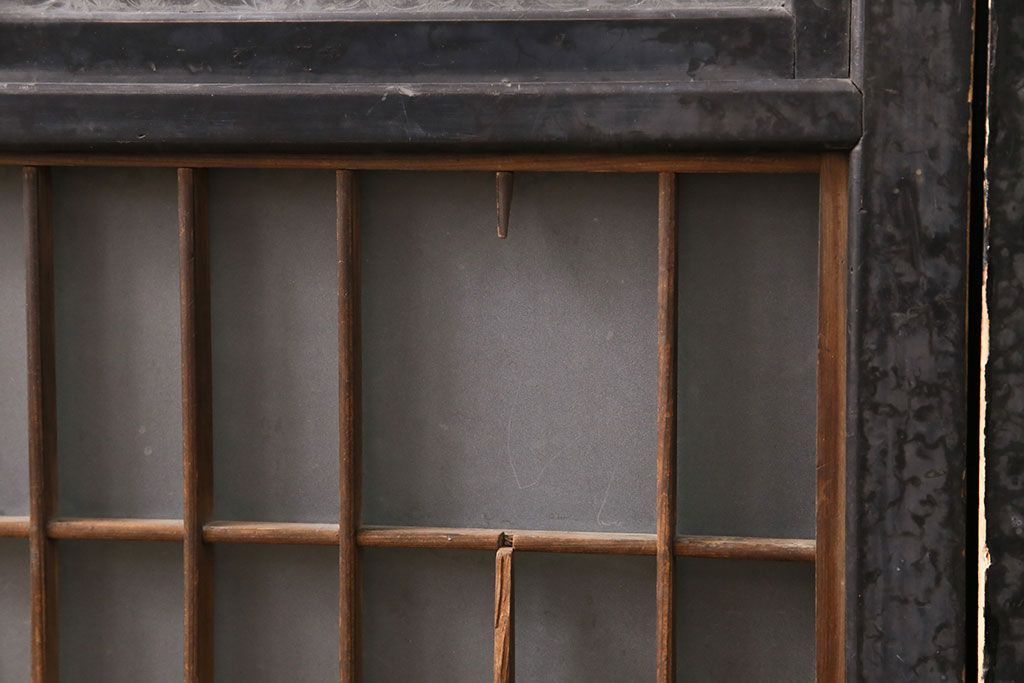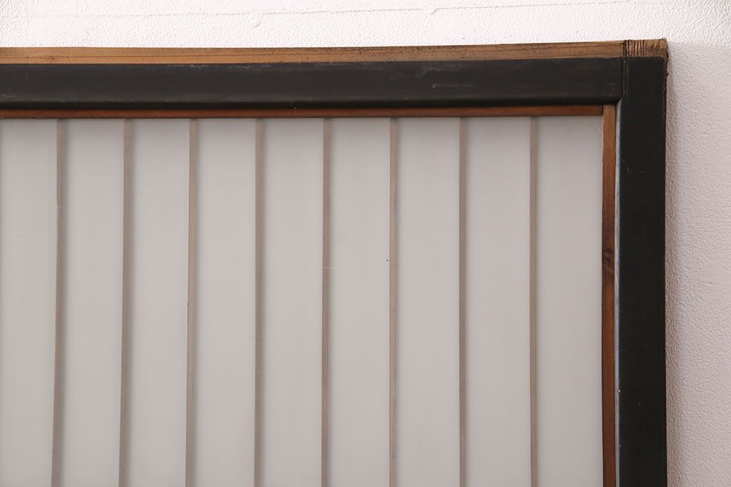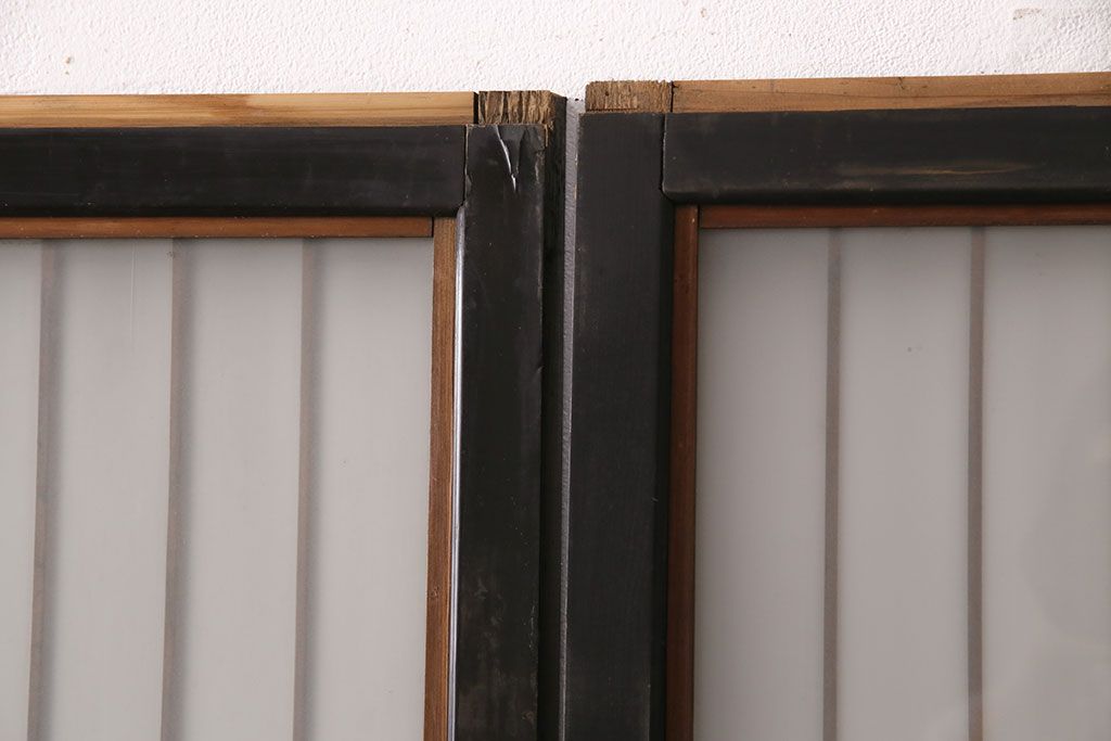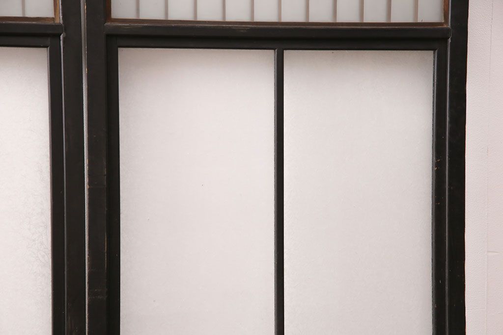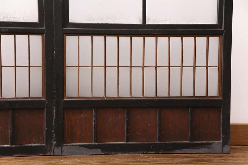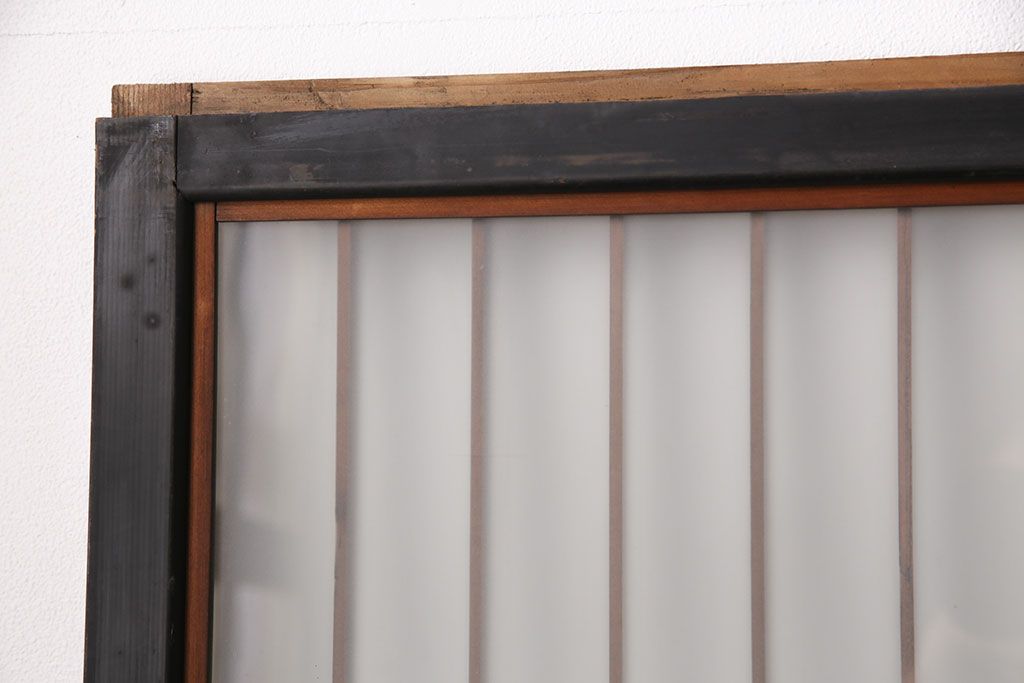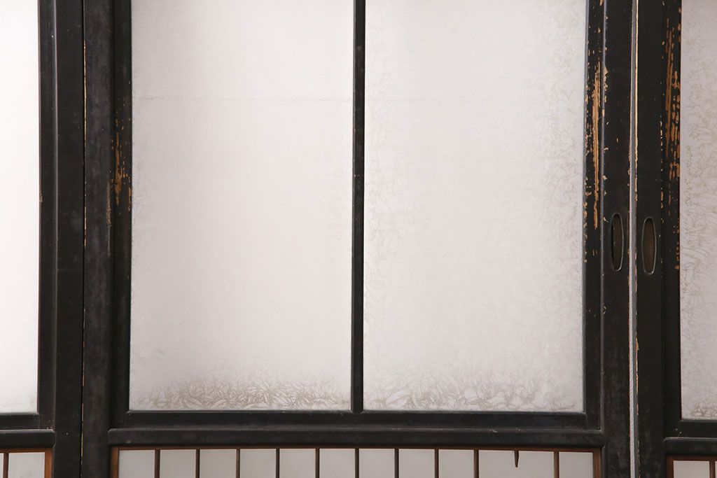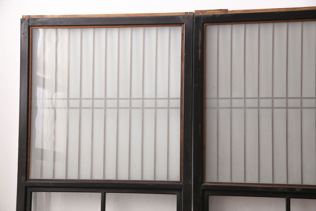 和製アンティーク 昭和初期 結霜ガラス・すりガラス 黒い框がレトロな雰囲気を高めるスリムなガラス戸4枚セット(引き戸、建具)(R-049228)