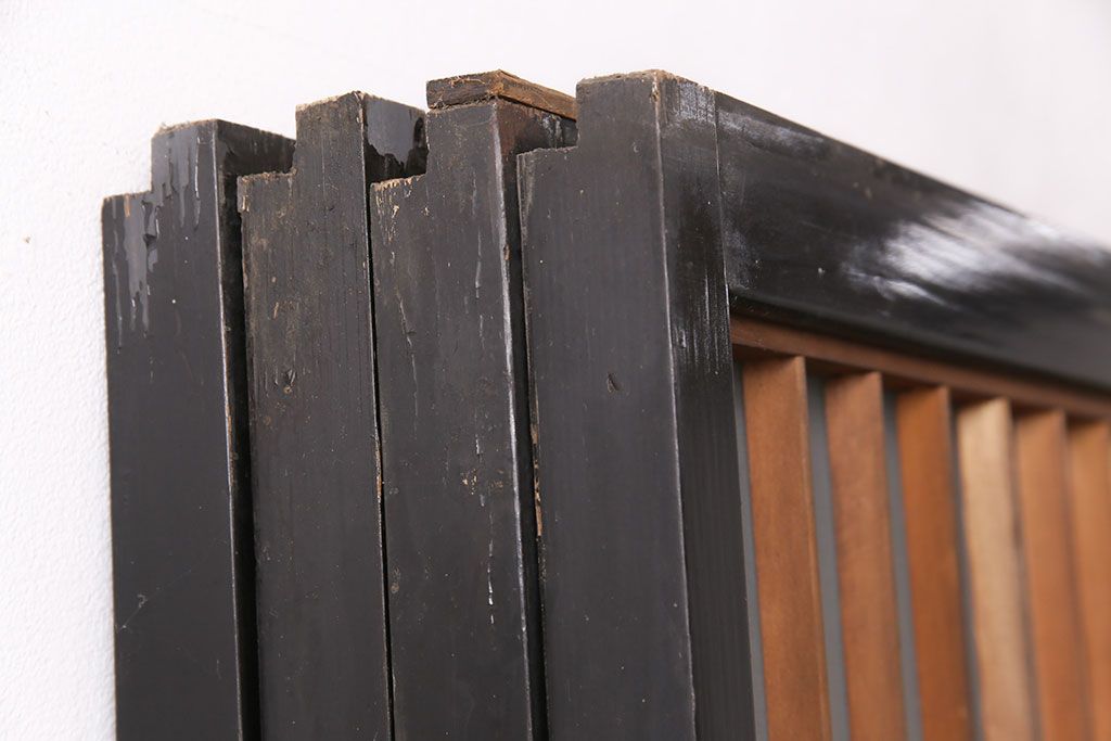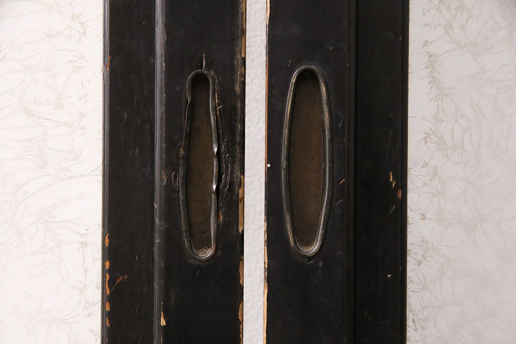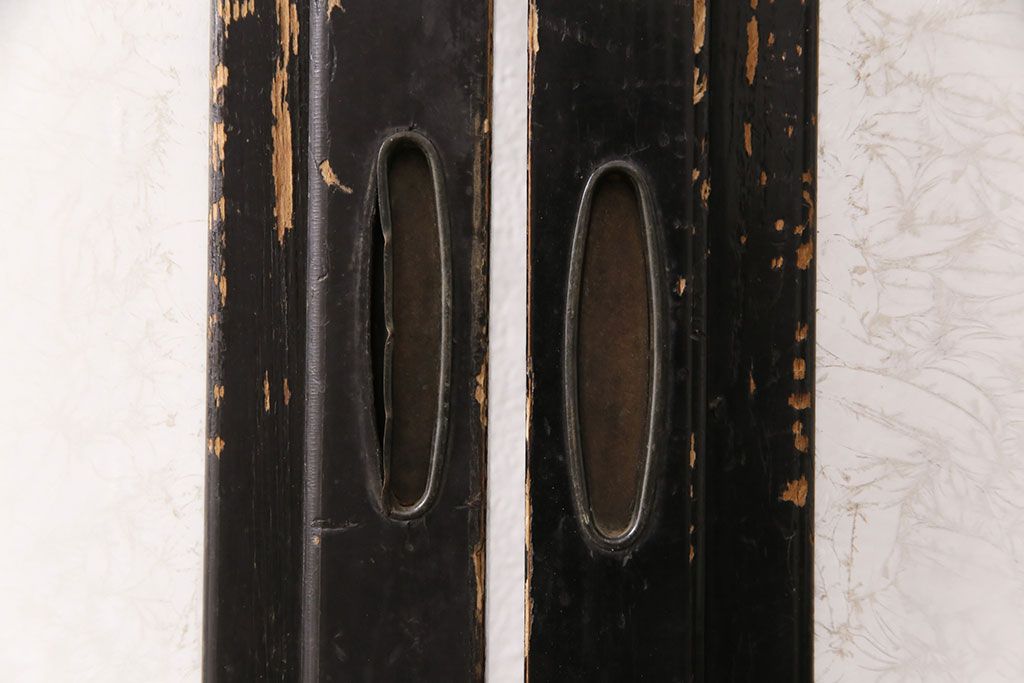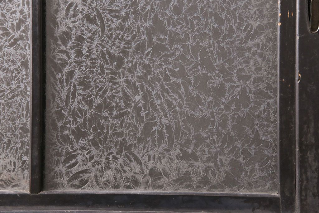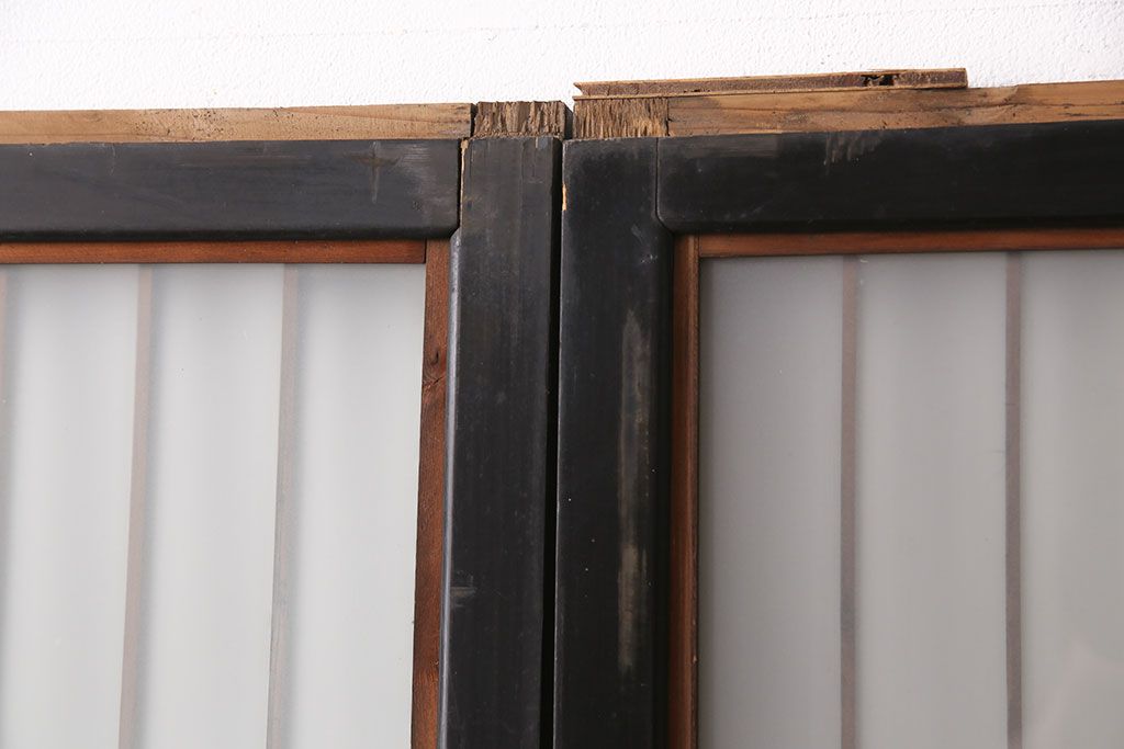ドア・建具> ガラス戸 > 和製アンティーク 昭和初期 結霜ガラス・すりガラス 黒い框がレトロな雰囲気を高めるスリムなガラス戸4枚セット(引き戸、建具)(R-049228)