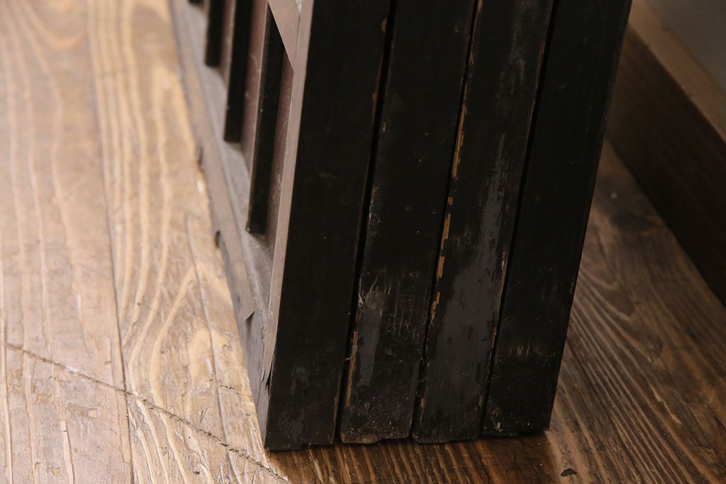 和製アンティーク 昭和初期 結霜ガラス・すりガラス 黒い框がレトロな雰囲気を高めるスリムなガラス戸4枚セット(引き戸、建具)(R-049228)です。