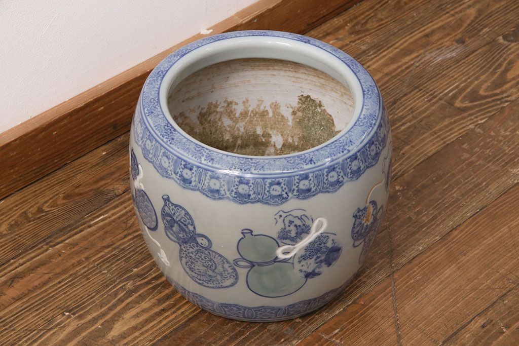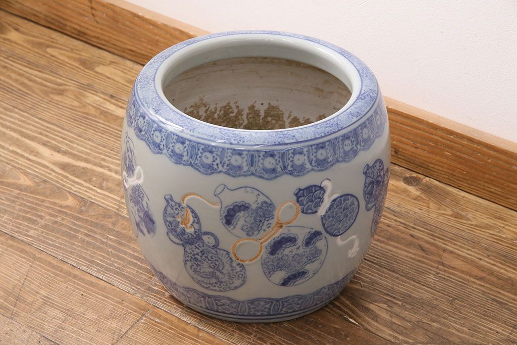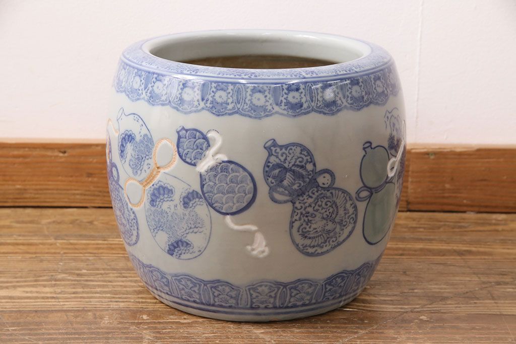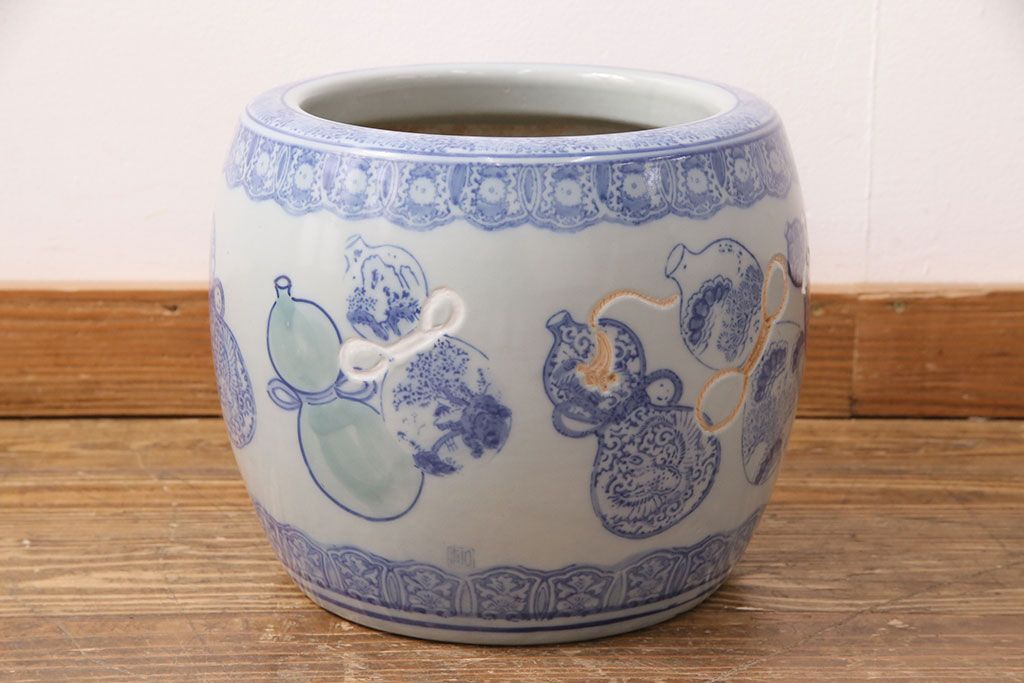 火鉢> 瀬戸火鉢 > アンティーク雑貨 昭和中期 縁起物のインテリアとしておすすめ!瓢箪文様の瀬戸火鉢(鉢カバー)(R-049360)