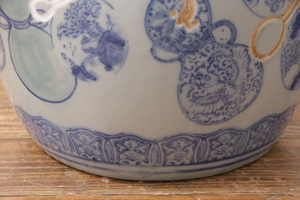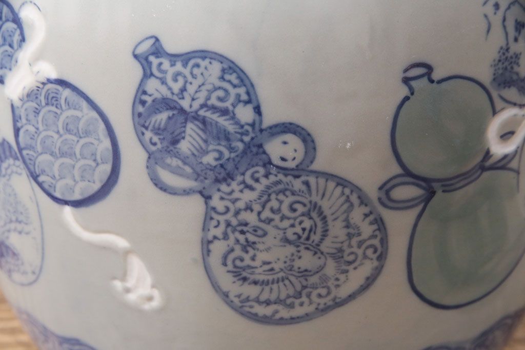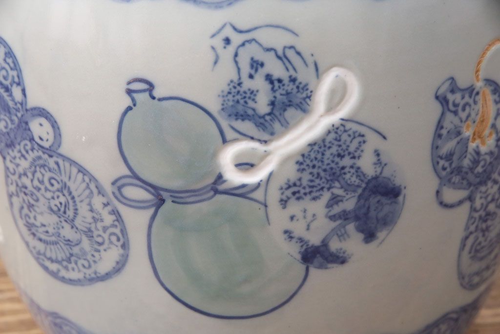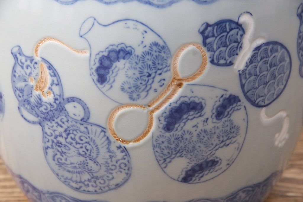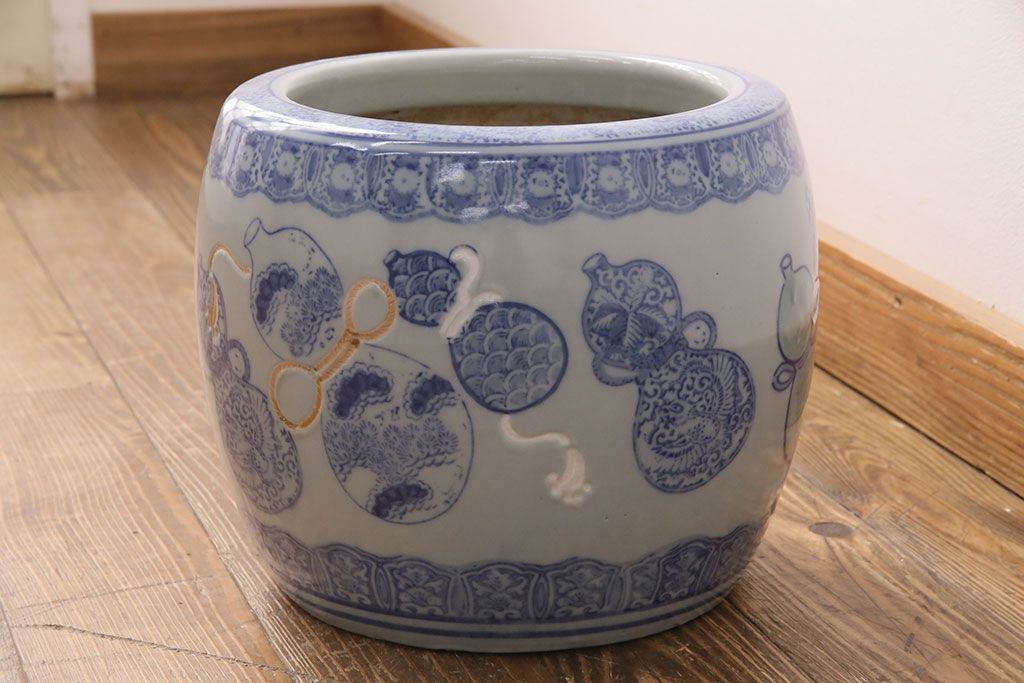 火鉢> 瀬戸火鉢 > アンティーク雑貨 昭和中期 縁起物のインテリアとしておすすめ!瓢箪文様の瀬戸火鉢(鉢カバー)(R-049360)