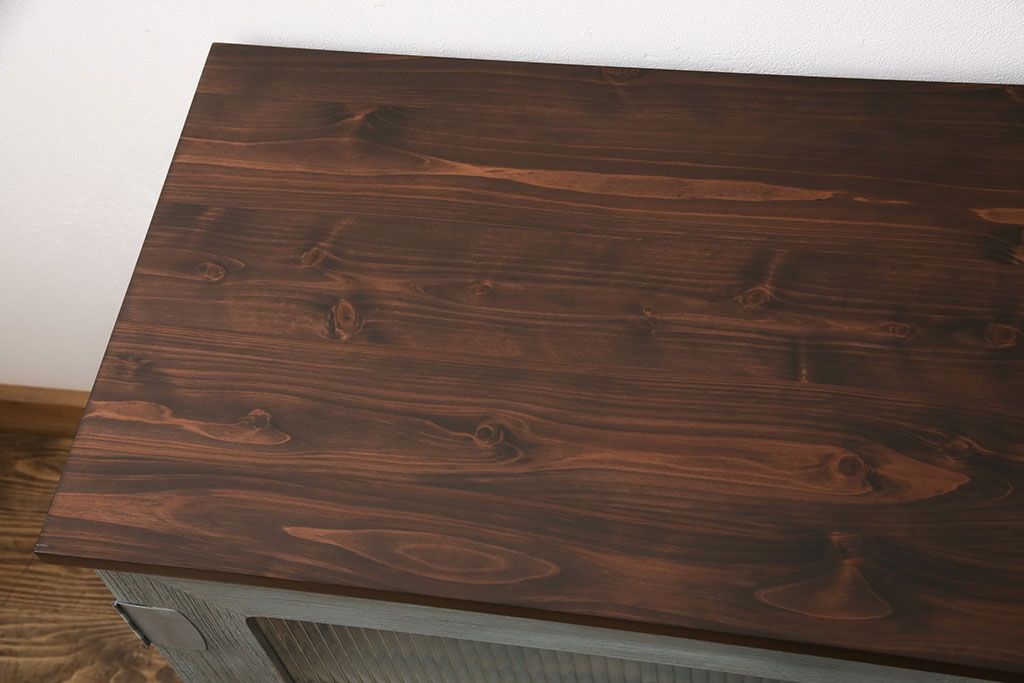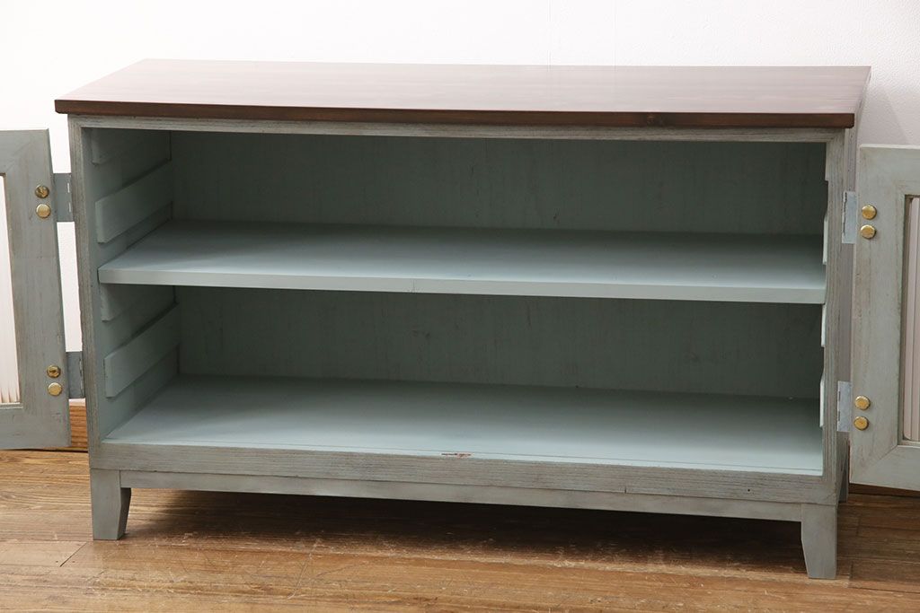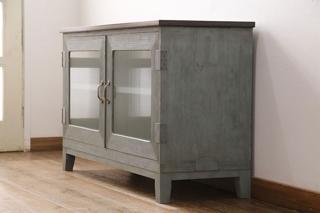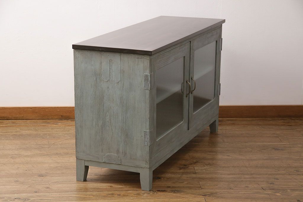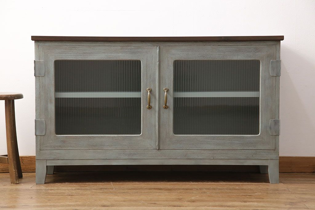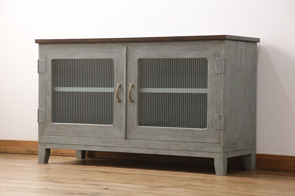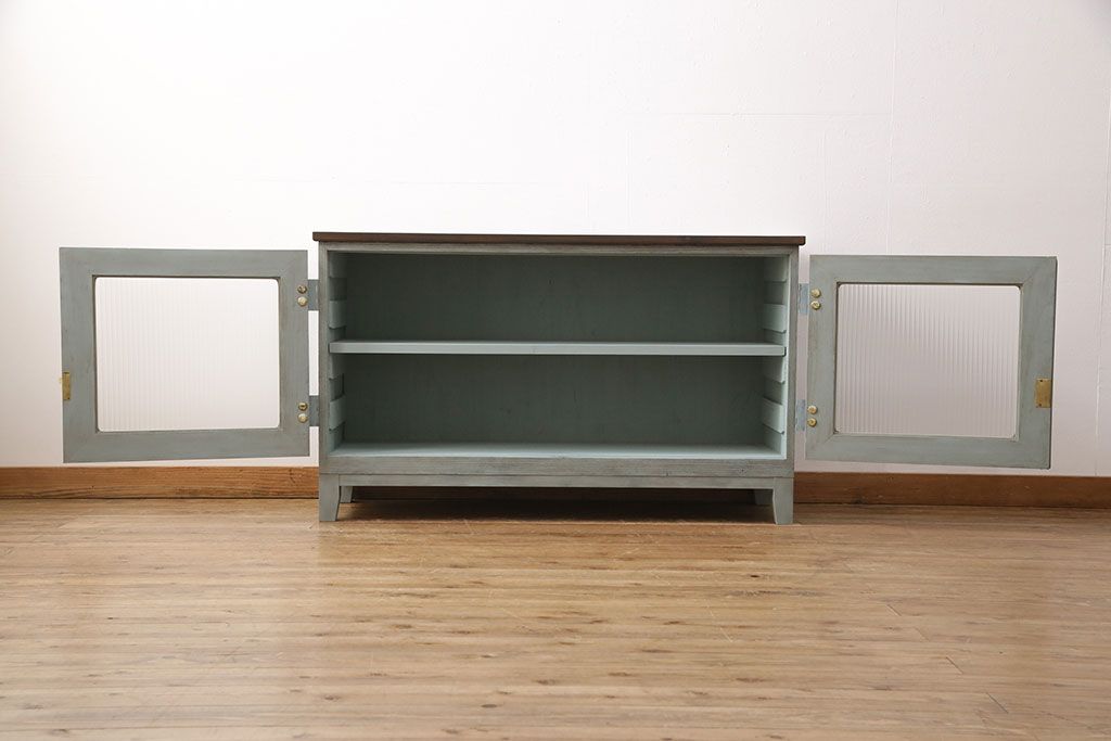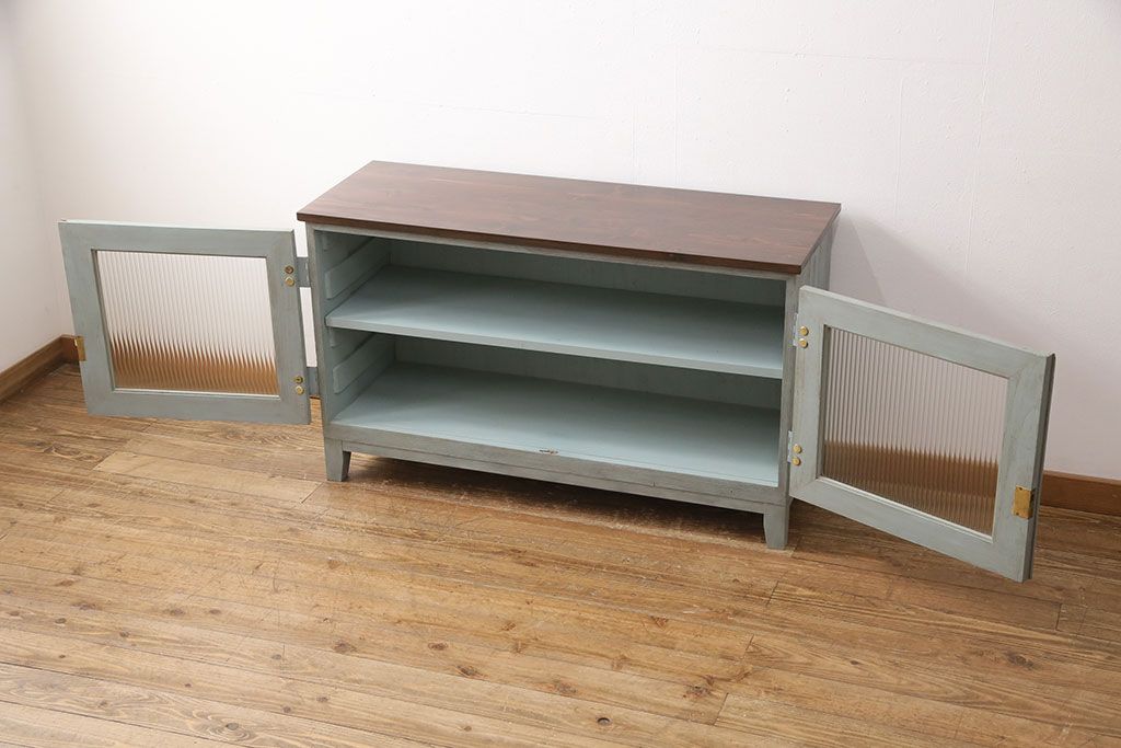 和製アンティーク ペイントカラーとモールガラスの組み合わせがお洒落なリビングボード(ローボード、テレビ台、収納棚)(R-049399)です。