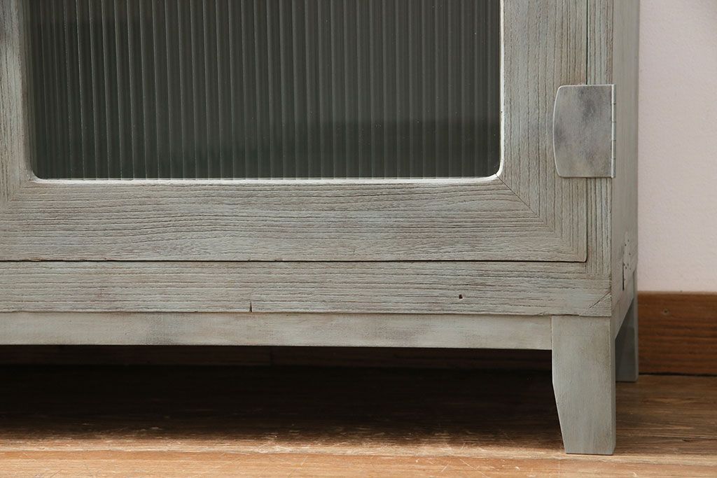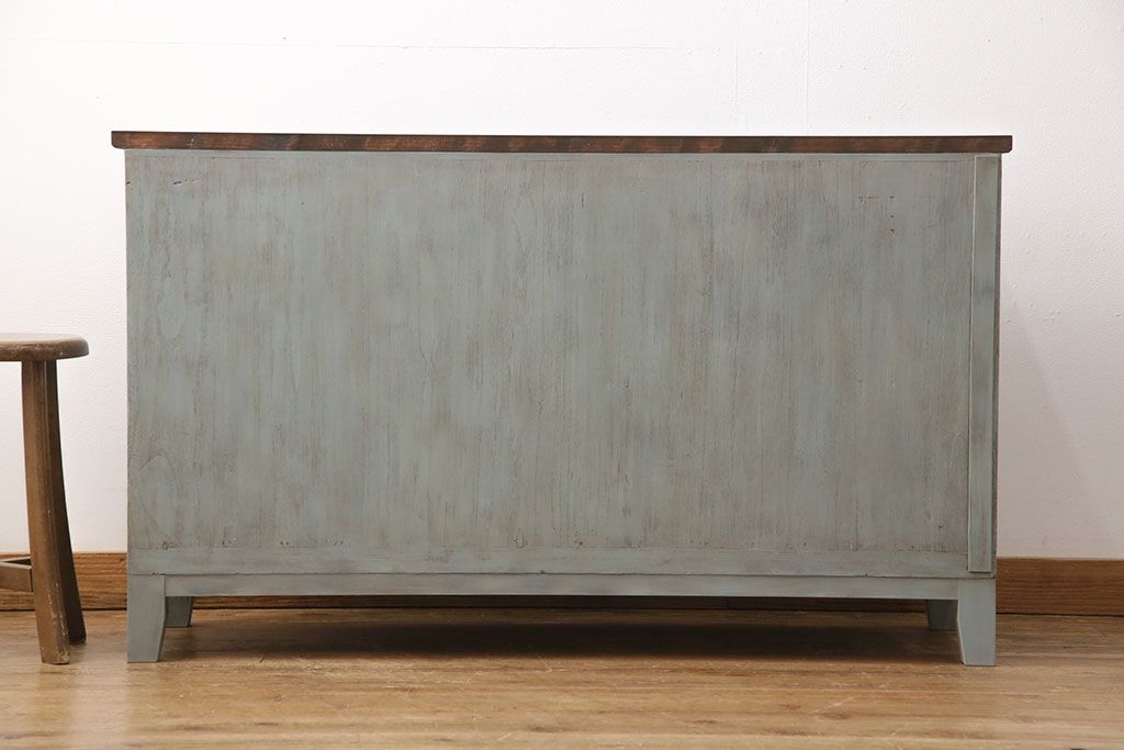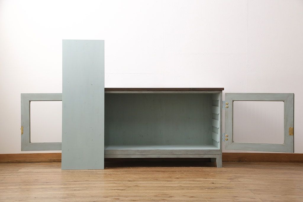 和製アンティーク ペイントカラーとモールガラスの組み合わせがお洒落なリビングボード(ローボード、テレビ台、収納棚)(R-049399)