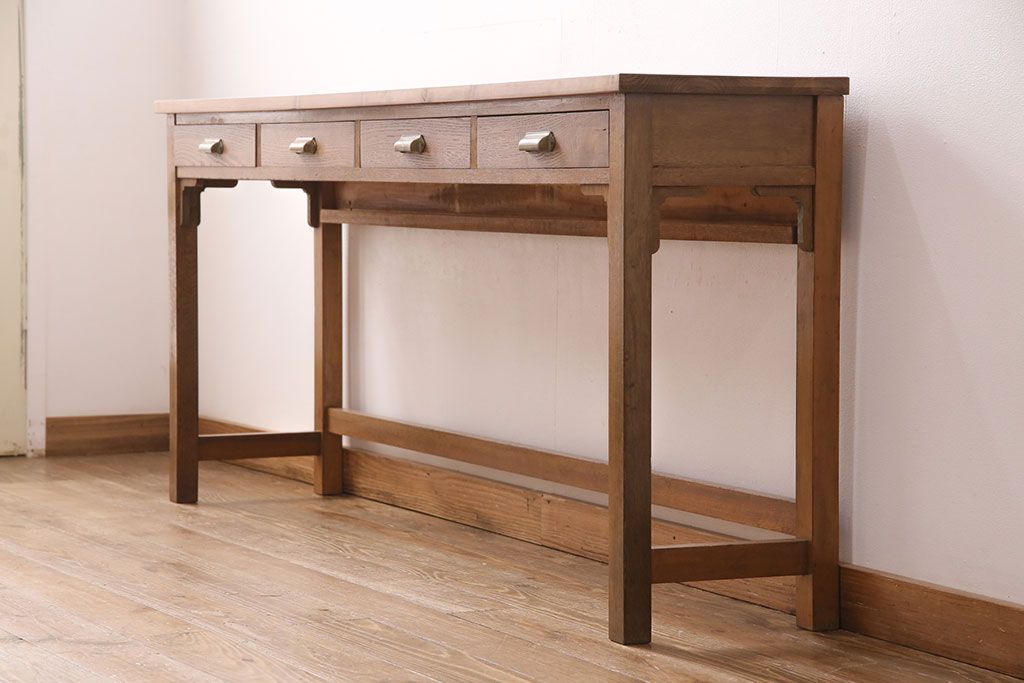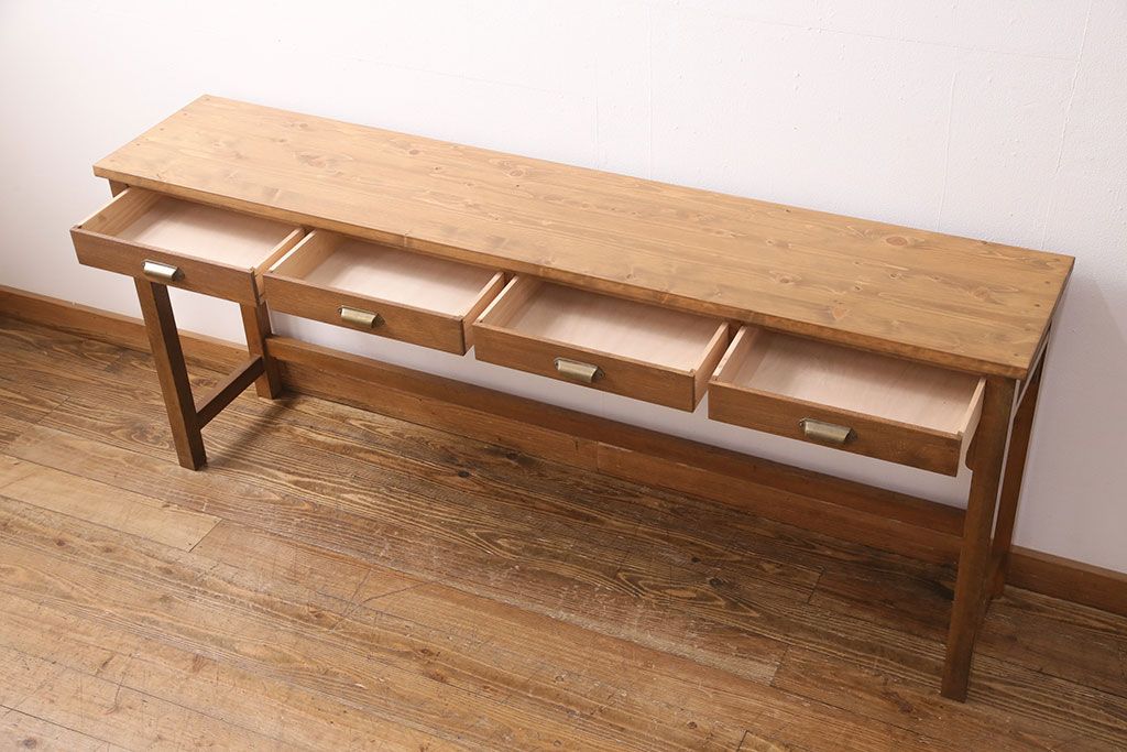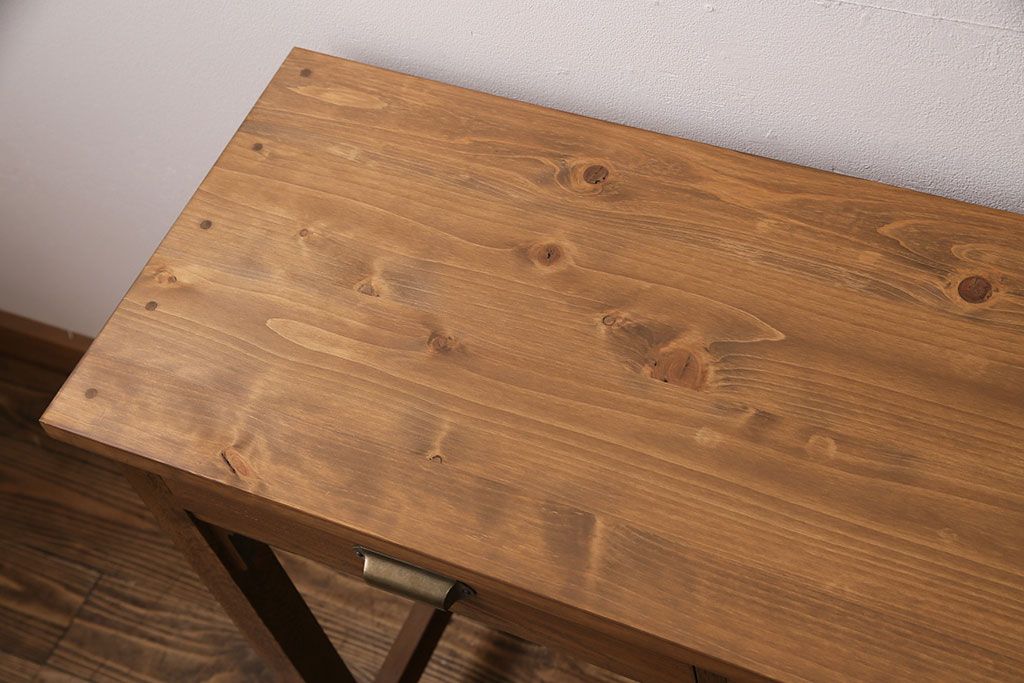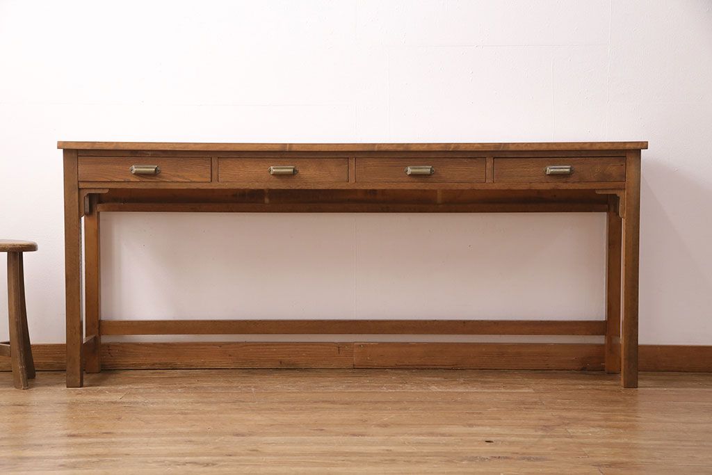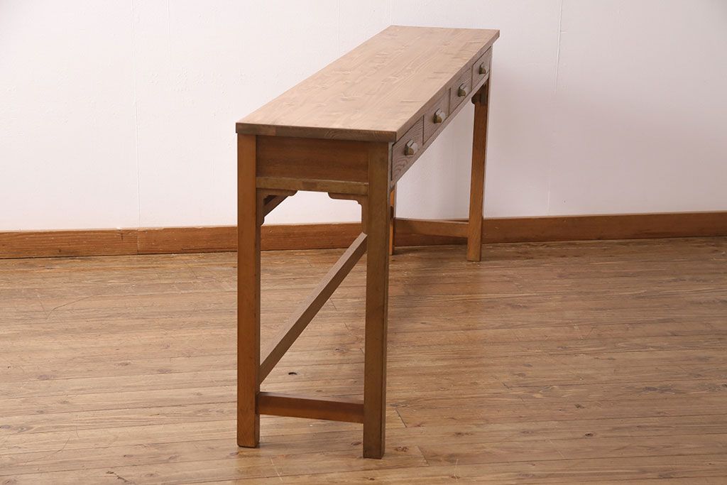 テーブル> コンソールテーブル > 和製アンティーク 天板・ヒノキ無垢材 木の味わいを存分に感じられるリメイク作業台(コンソールテーブル、カウンター、引き出し)(R-049412)
