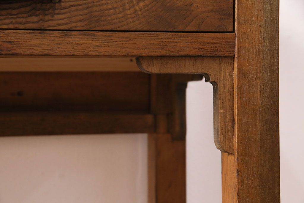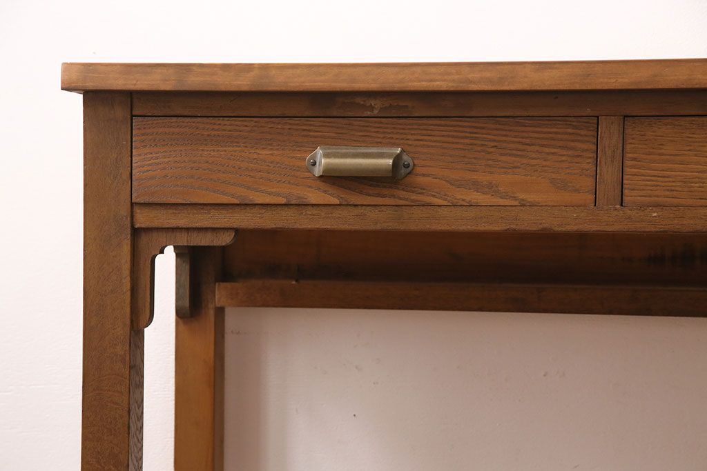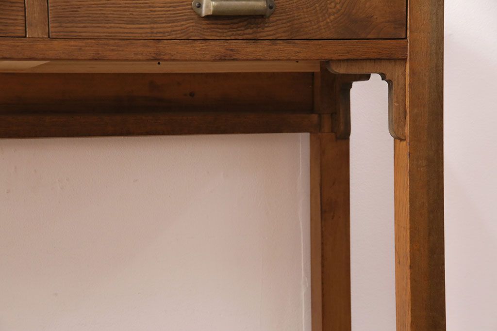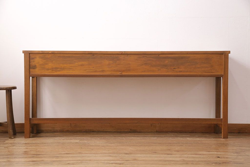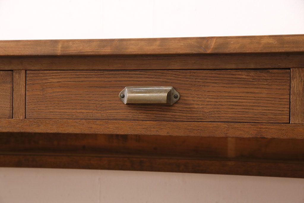テーブル> コンソールテーブル > 和製アンティーク 天板・ヒノキ無垢材 木の味わいを存分に感じられるリメイク作業台(コンソールテーブル、カウンター、引き出し)(R-049412)