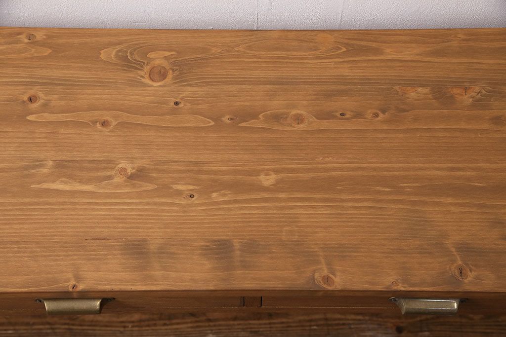 和製アンティーク 天板・ヒノキ無垢材 木の味わいを存分に感じられるリメイク作業台(コンソールテーブル、カウンター、引き出し)(R-049412)